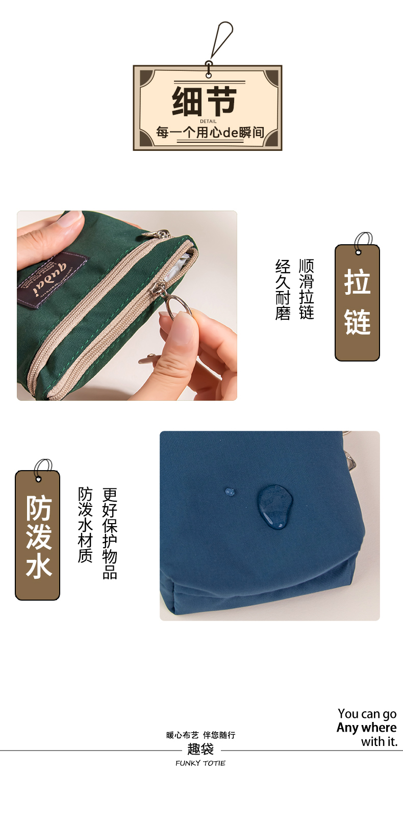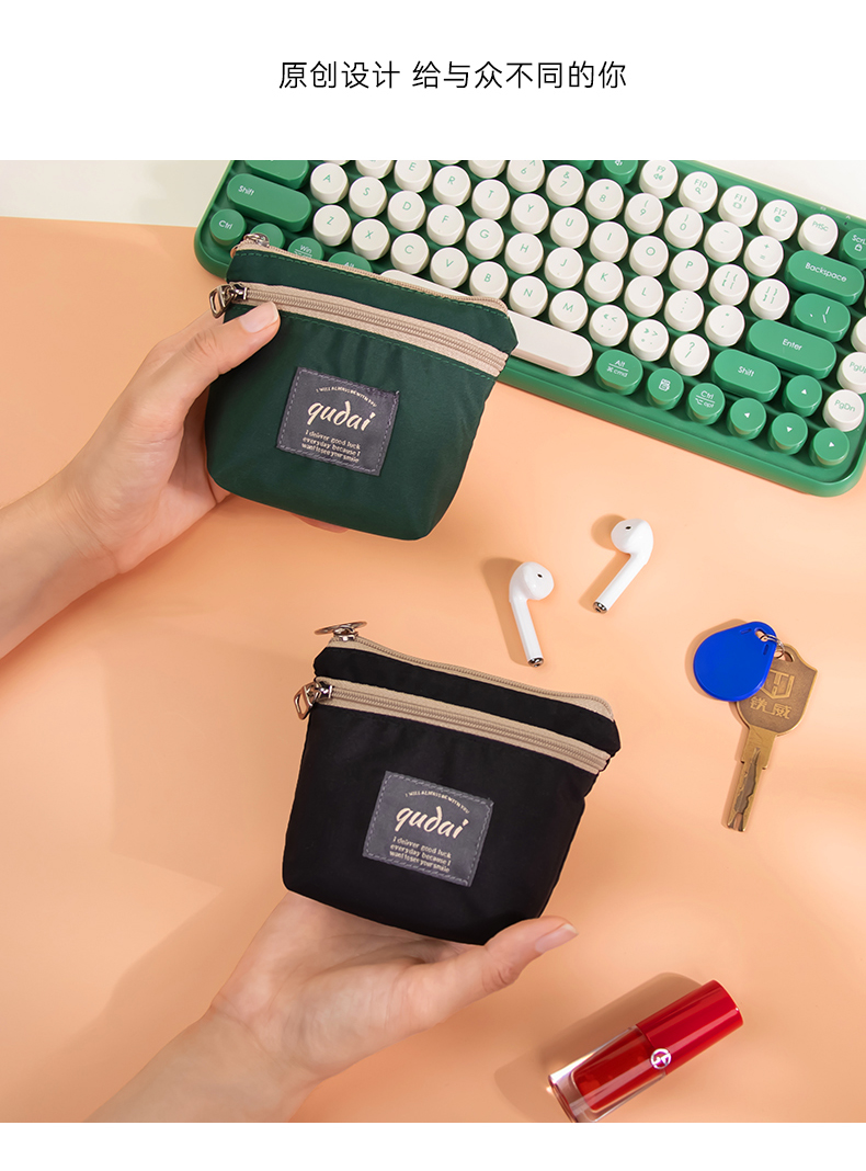 小钱包迷你防水男女通用布艺双层拉链钥匙耳机收纳小包包零钱卡包