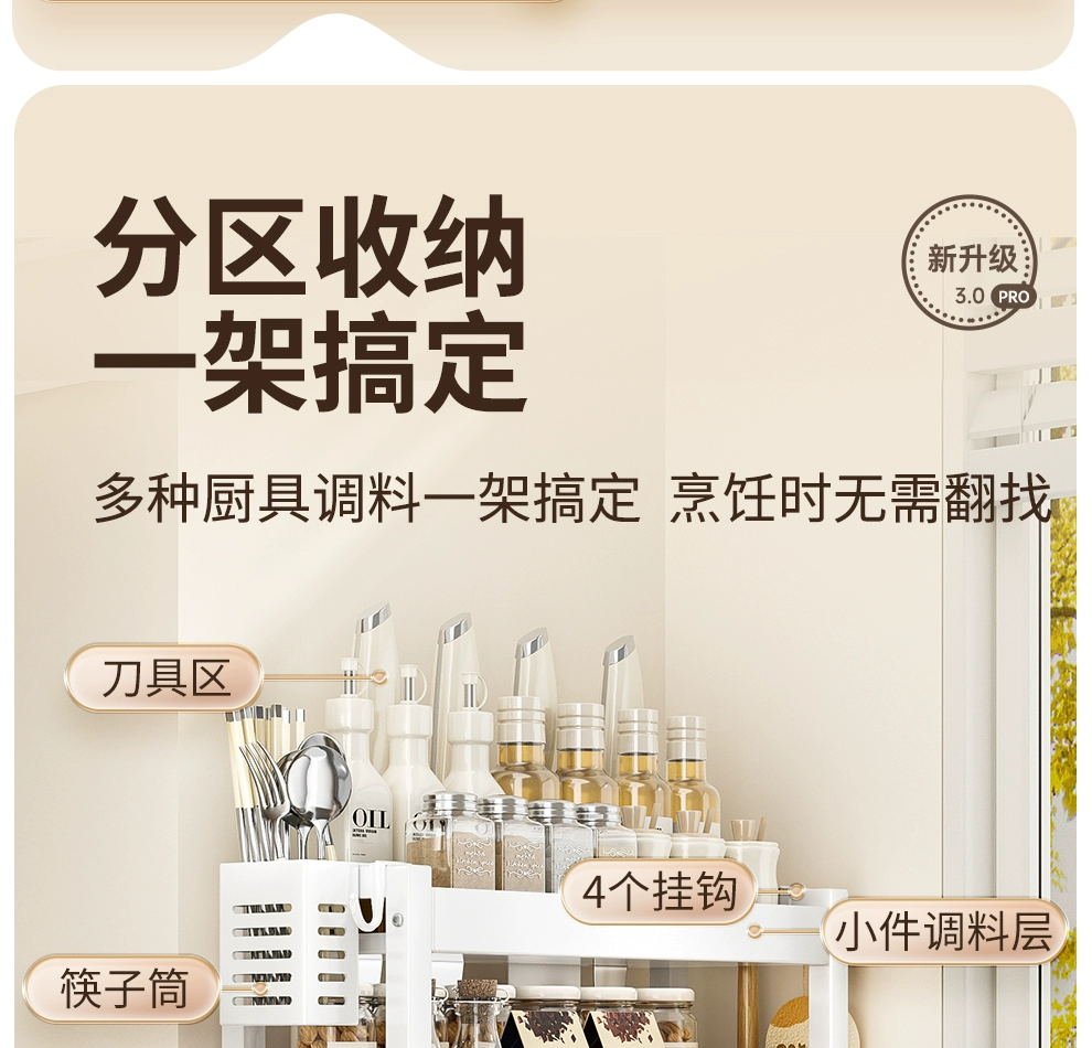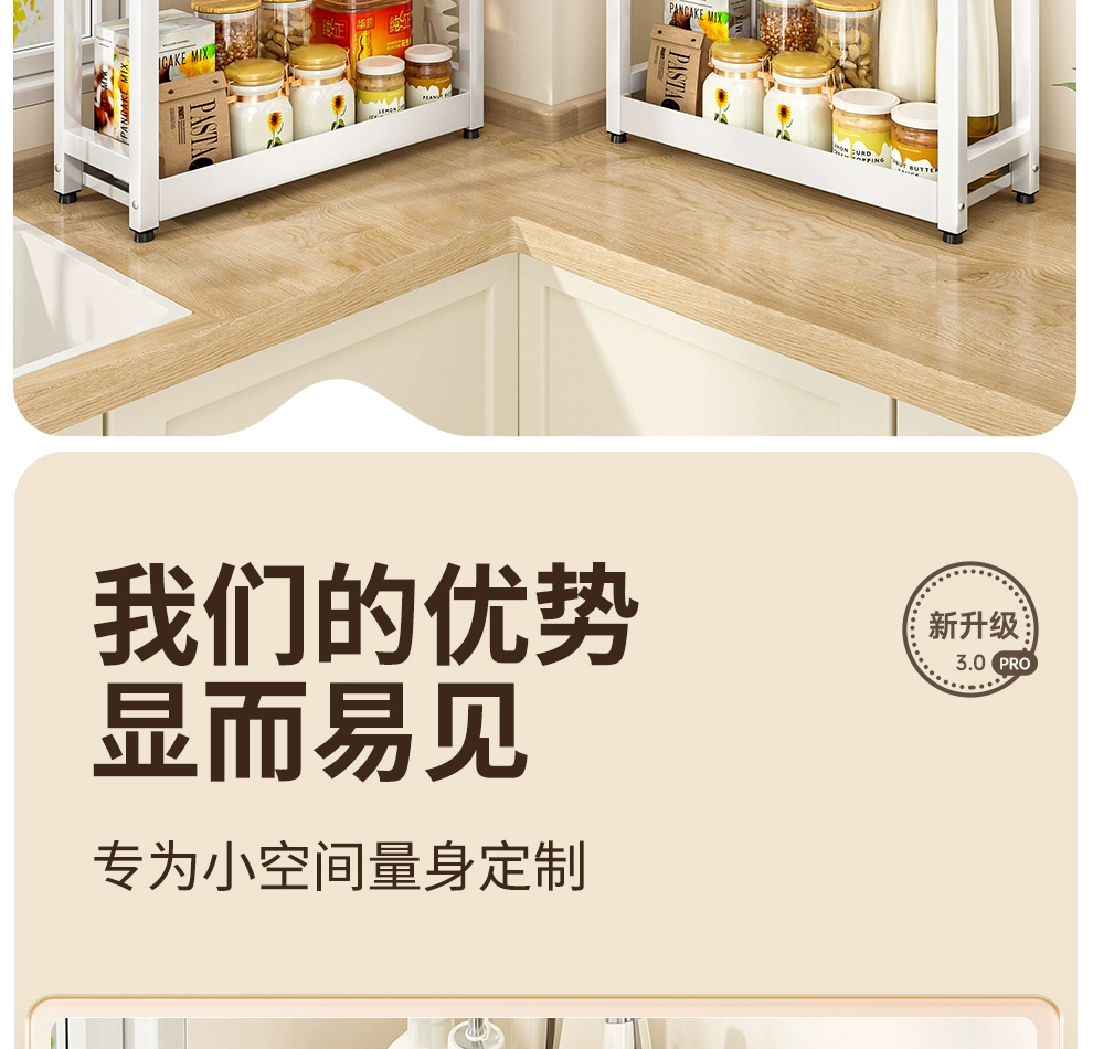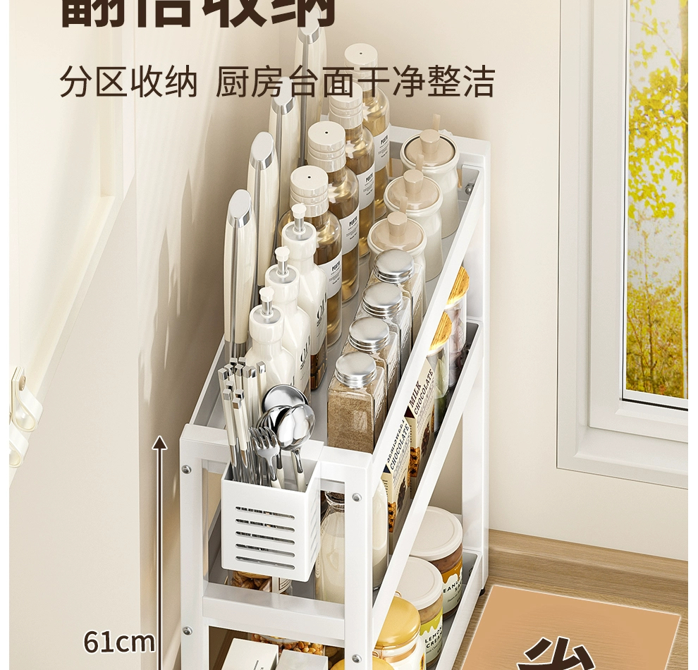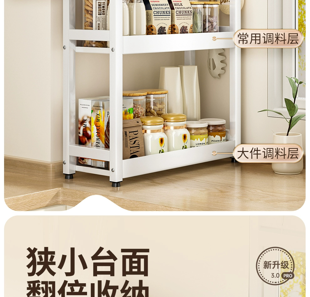 厨房窄边调料置物架台面双层调味瓶多功能收纳架超窄放调料品角架