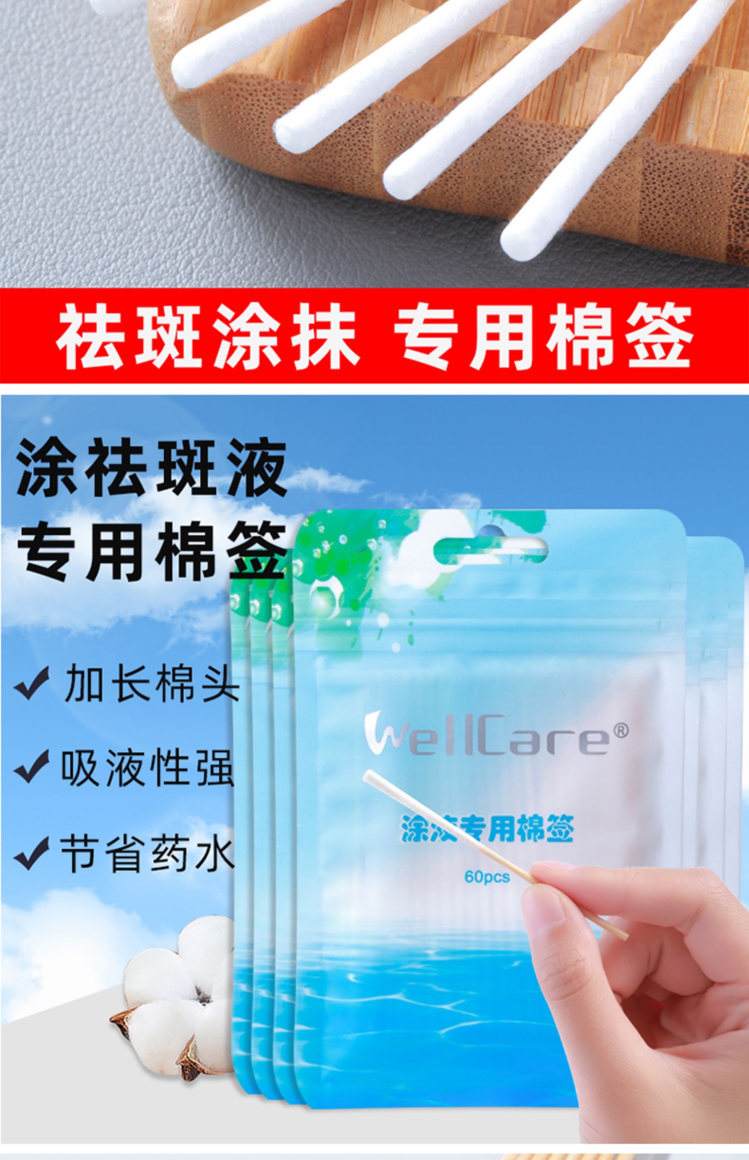 加长加厚款营养液精华保养液棉棒美容院修复液祛斑薄涂液专用棉签