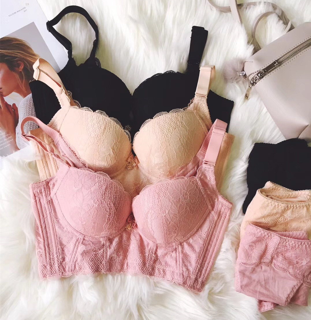 新款蕾丝美容院调整型内衣收副乳矫正聚拢女加厚小胸文胸成一套装