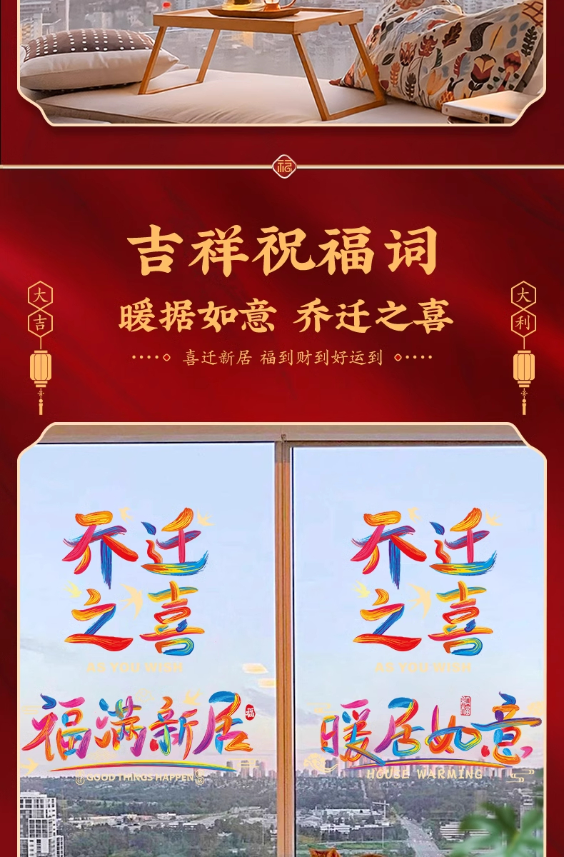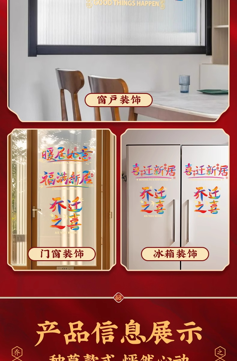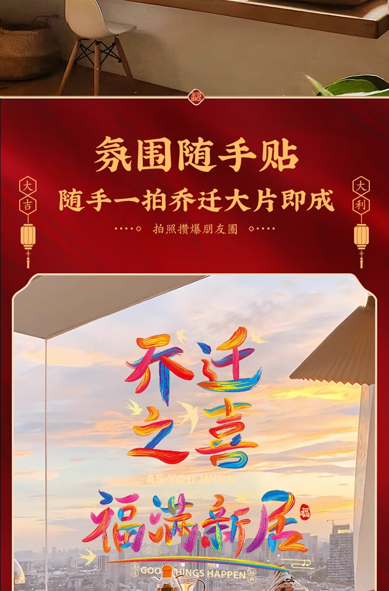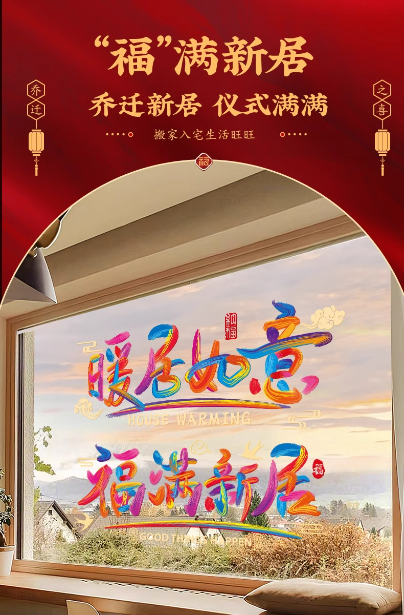 乔迁之喜装饰窗花静电贴玻璃门窗贴入户门贴新居搬家入宅仪式用品