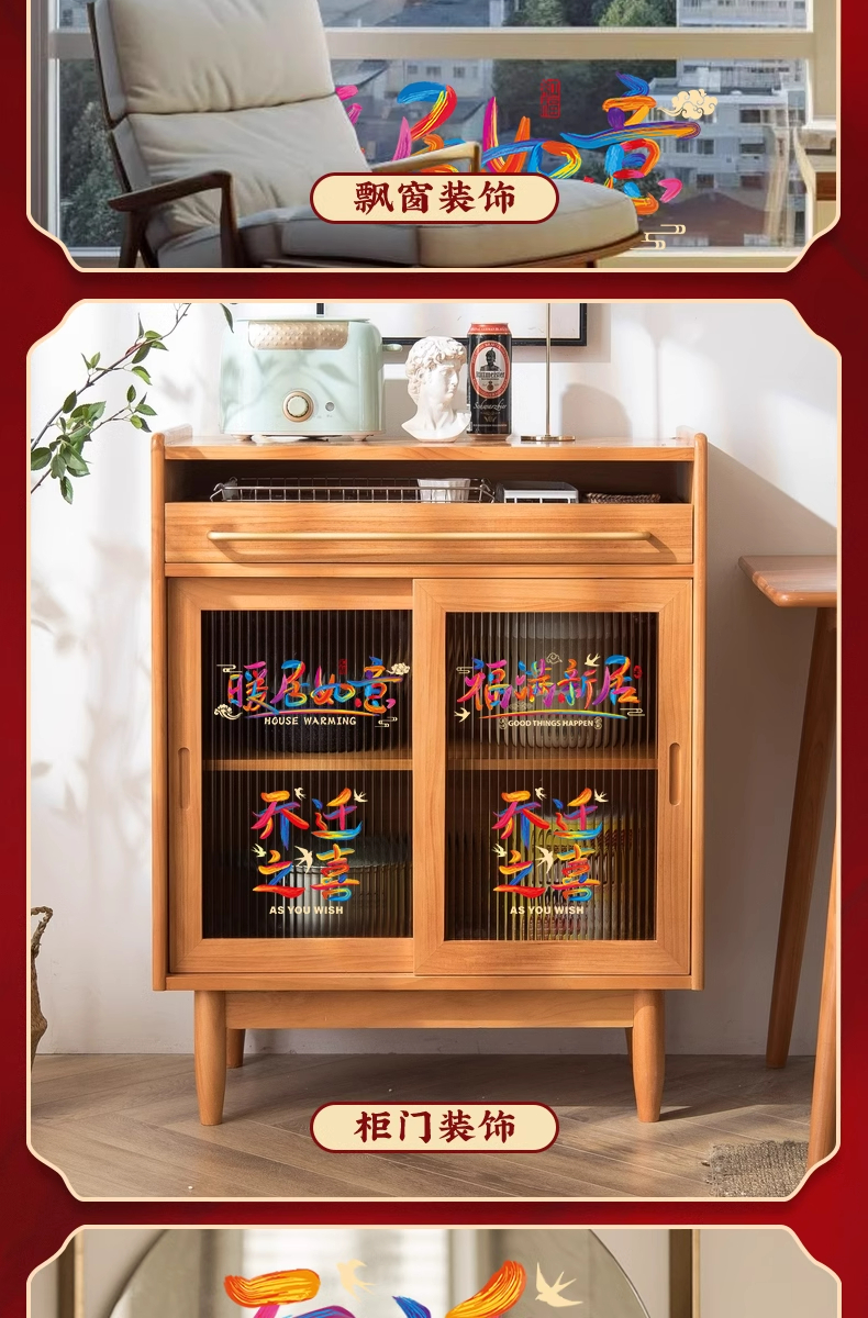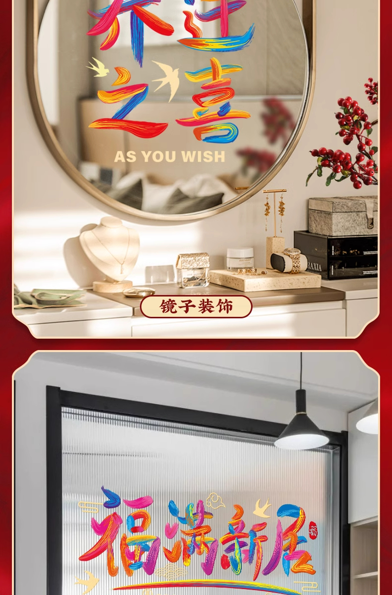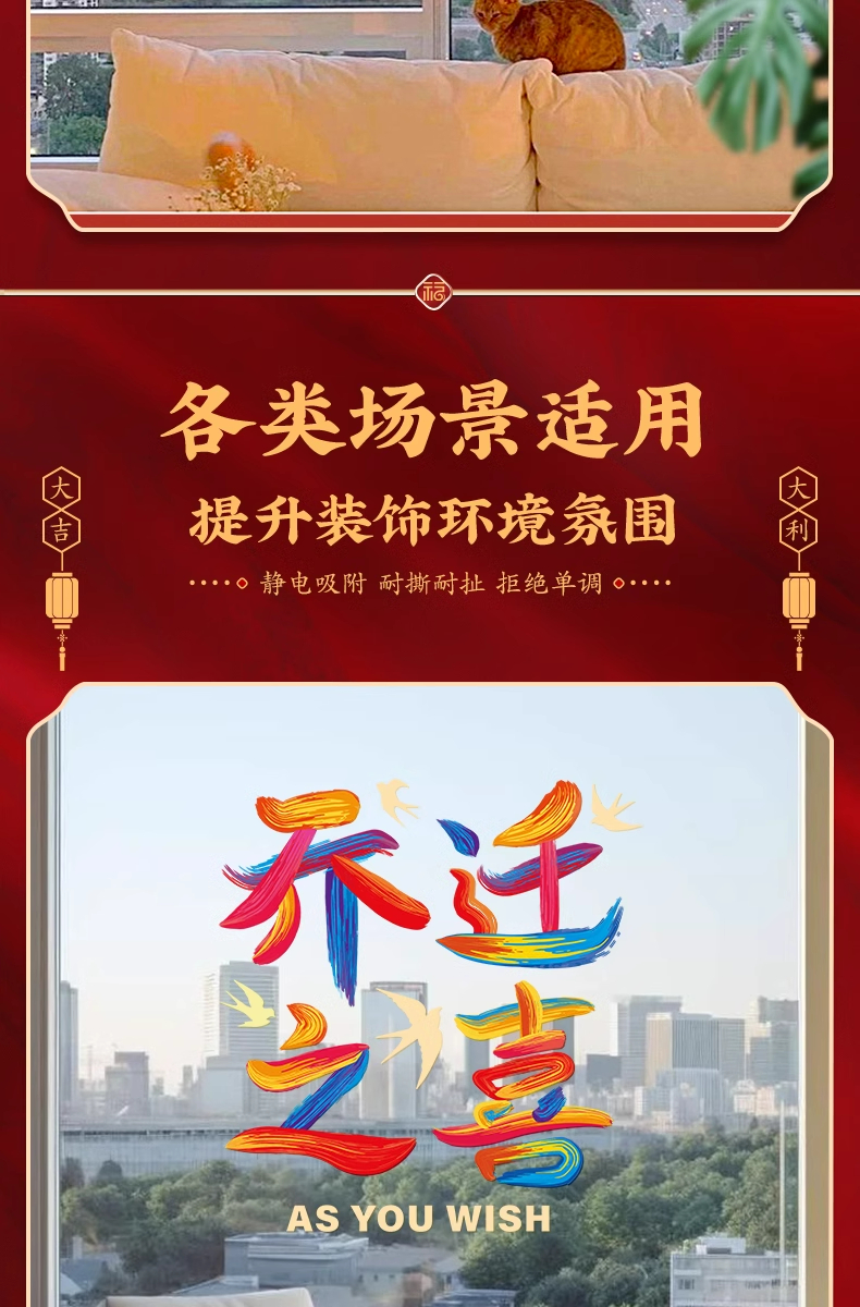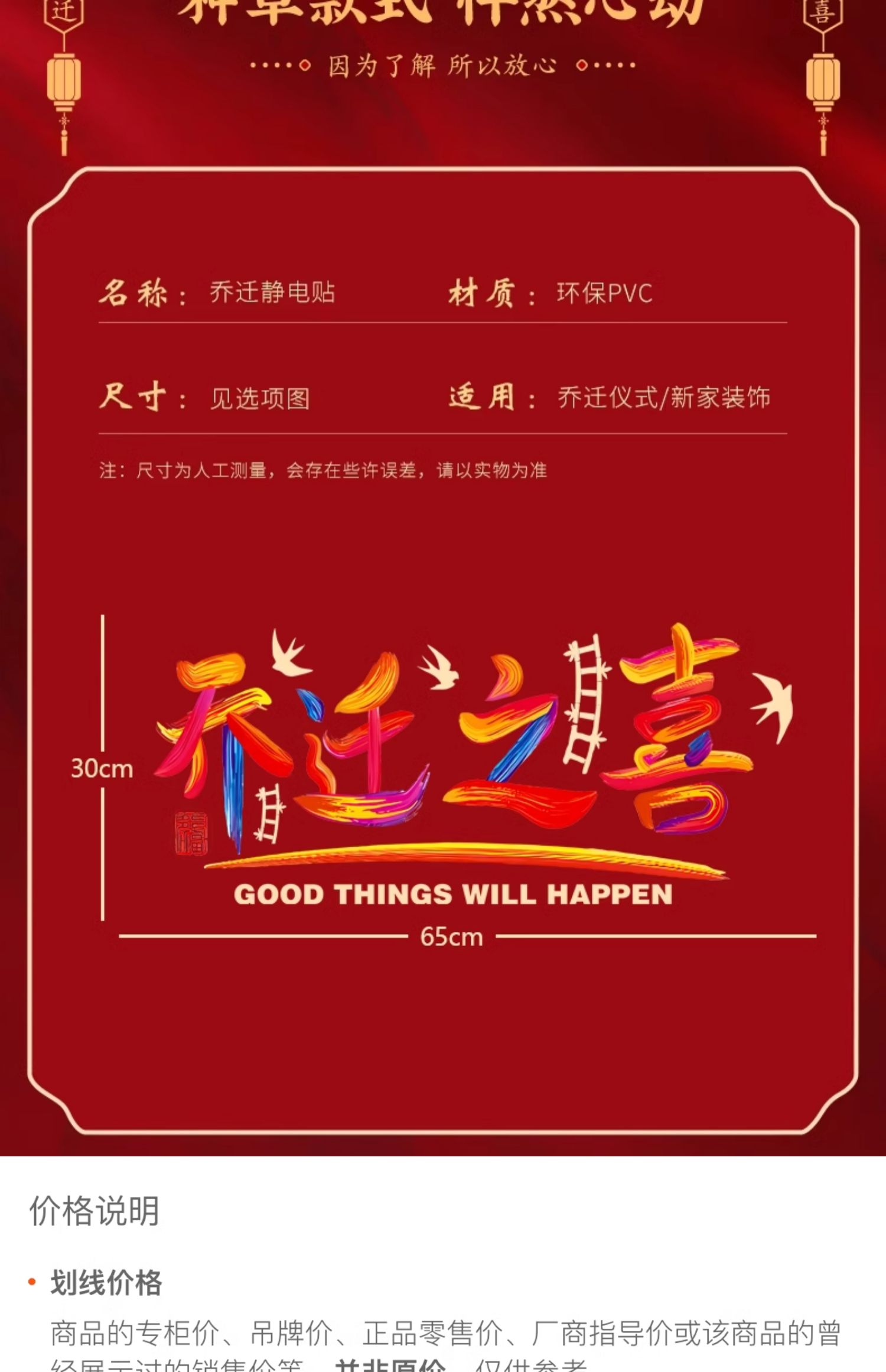 乔迁之喜装饰窗花静电贴玻璃门窗贴入户门贴新居搬家入宅仪式用品