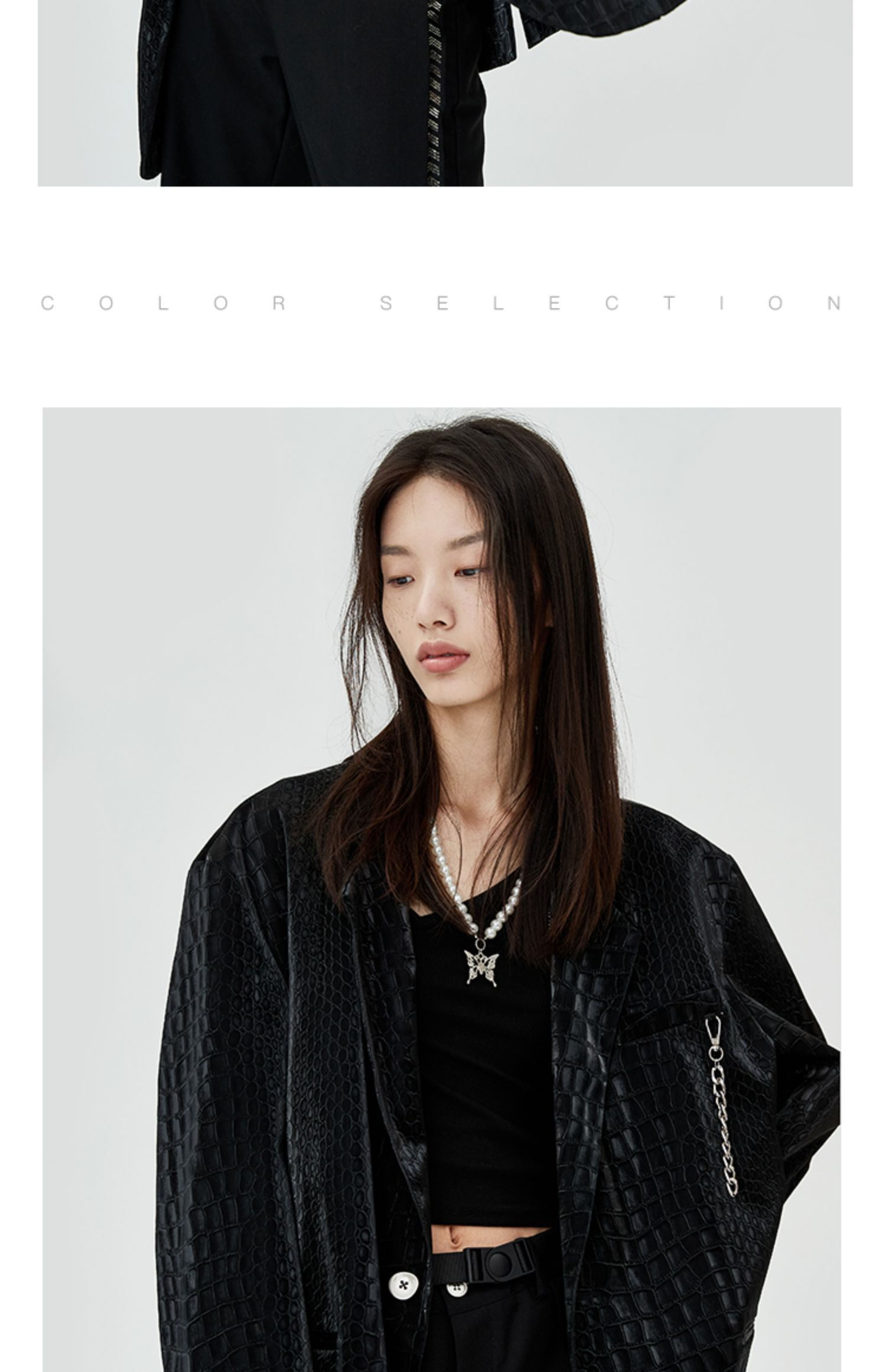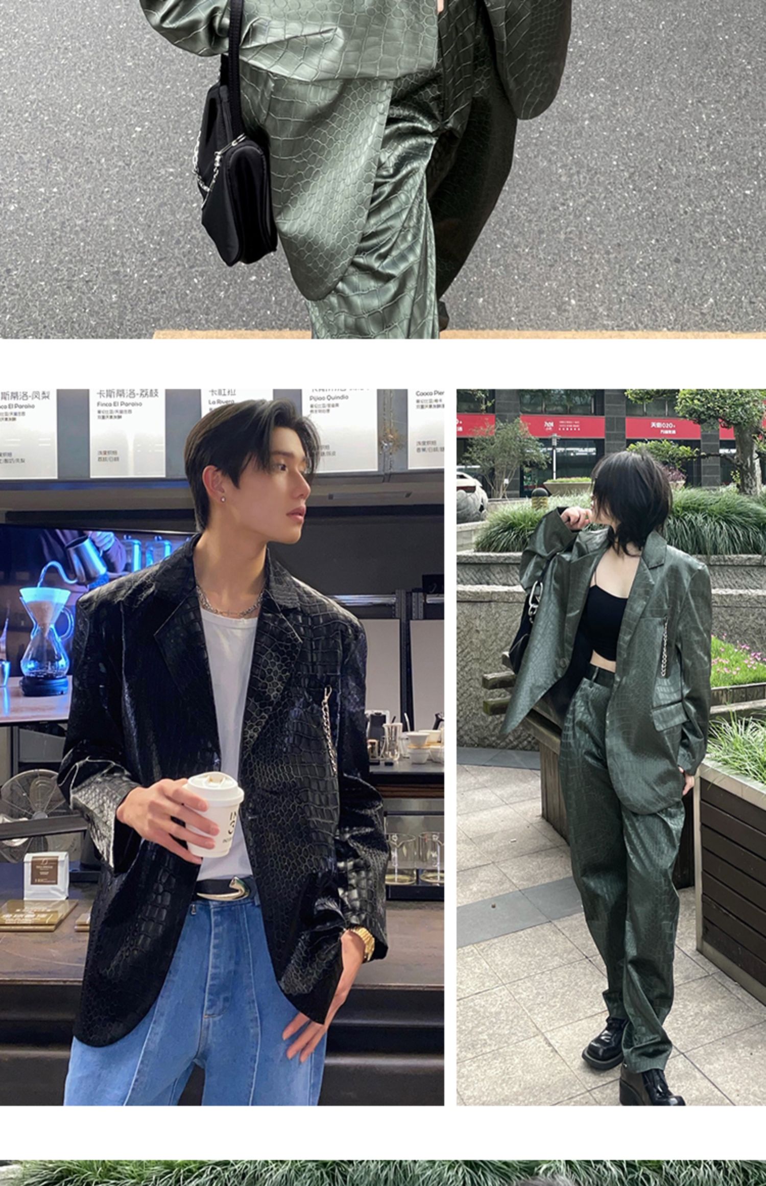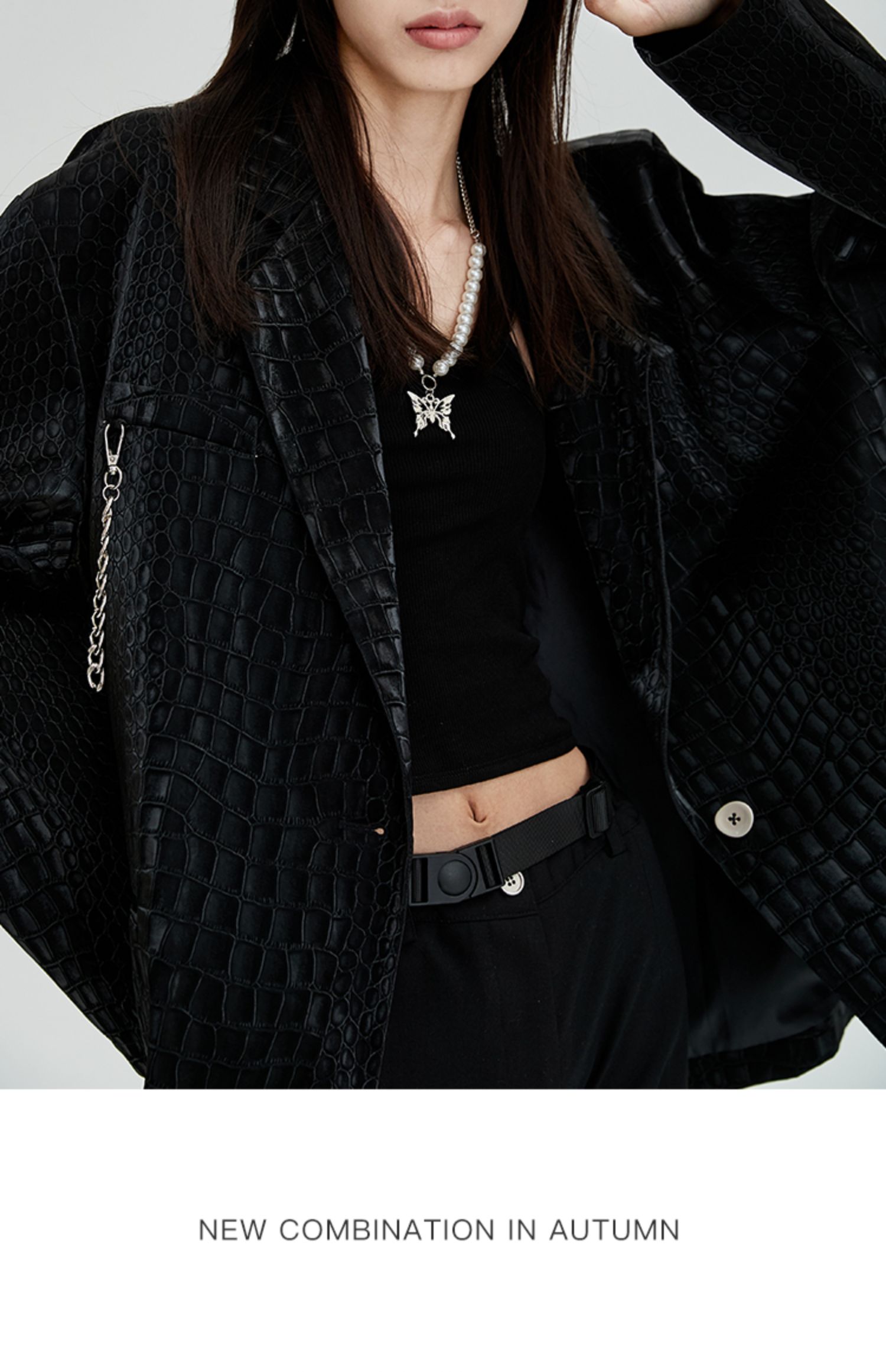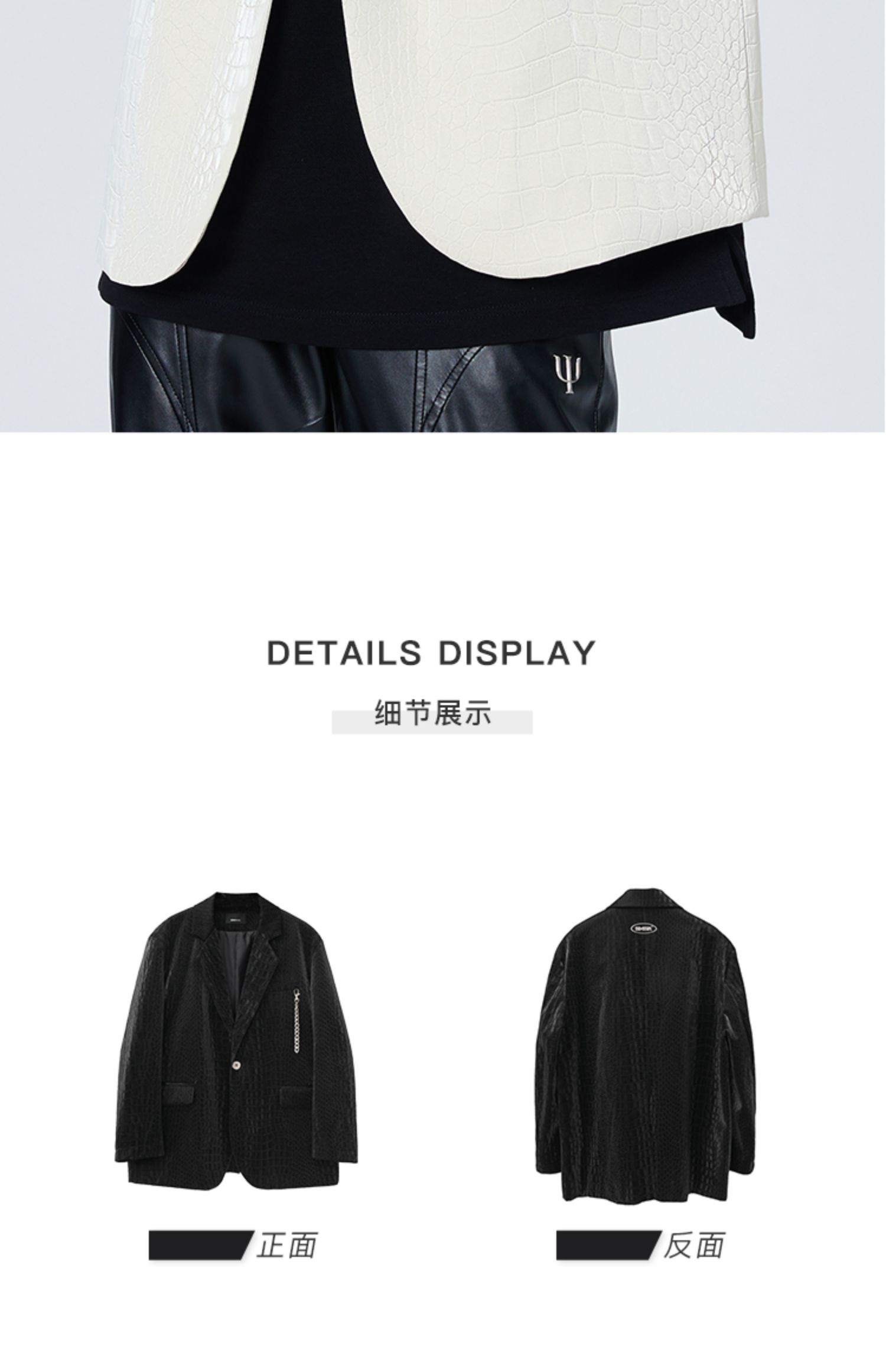 benmyshower国潮鳄鱼纹皮衣夹克潮牌宽松炸街廓形皮西装外套男女