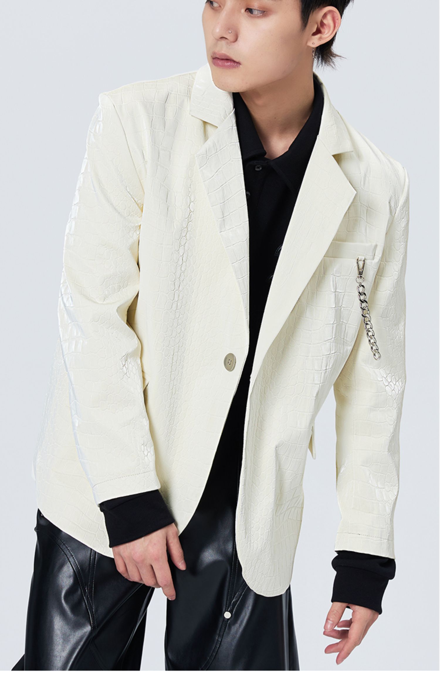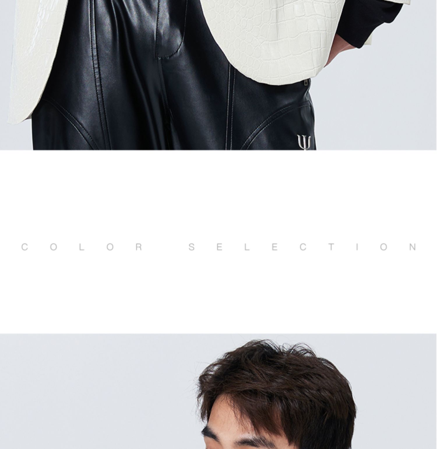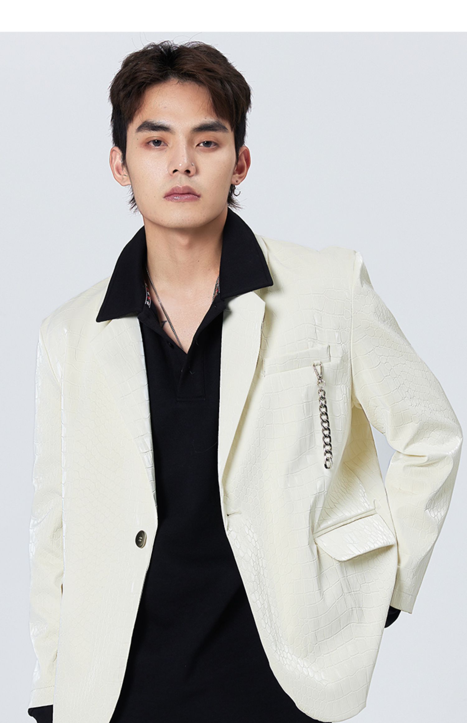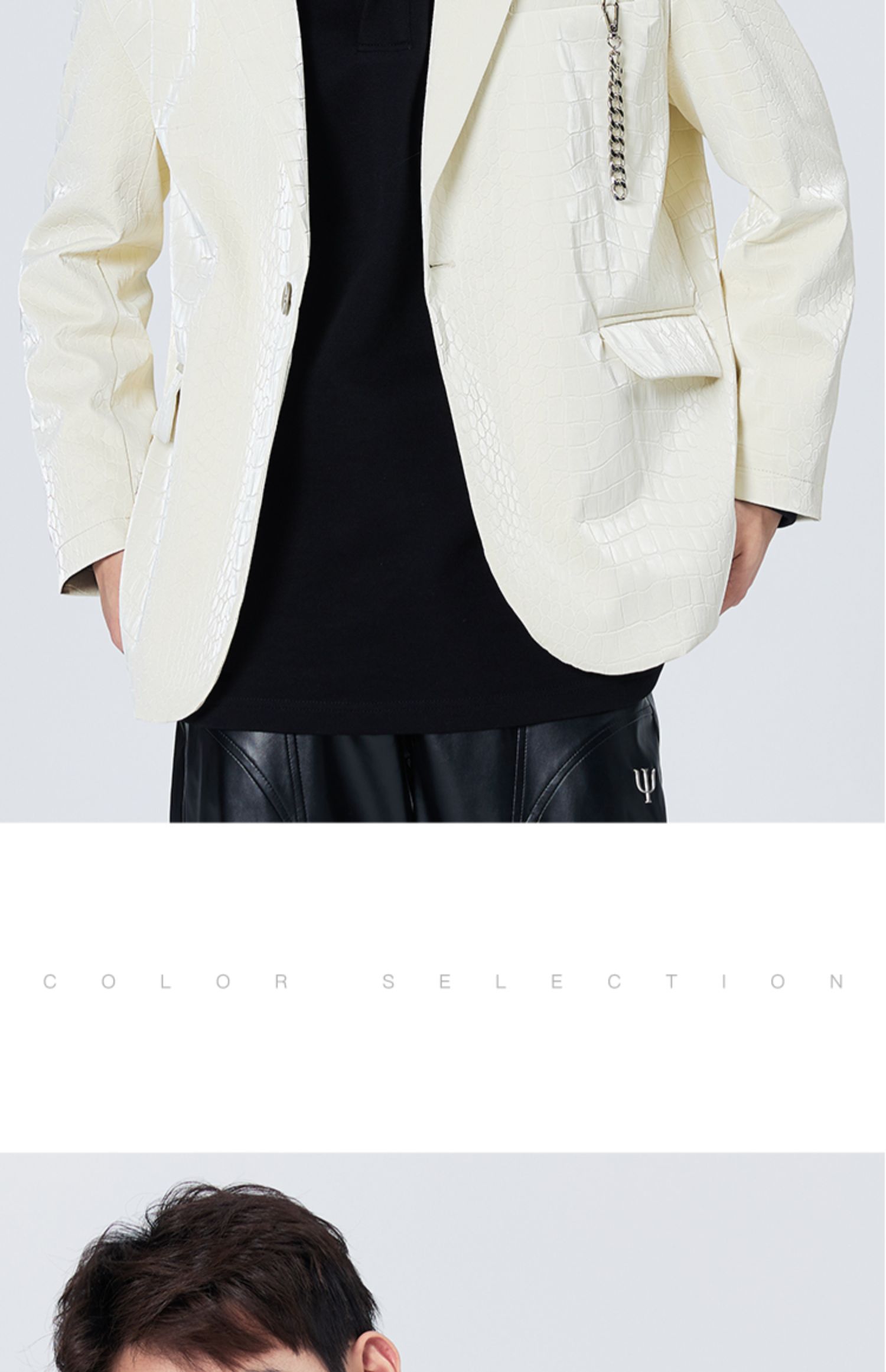 benmyshower国潮鳄鱼纹皮衣夹克潮牌宽松炸街廓形皮西装外套男女