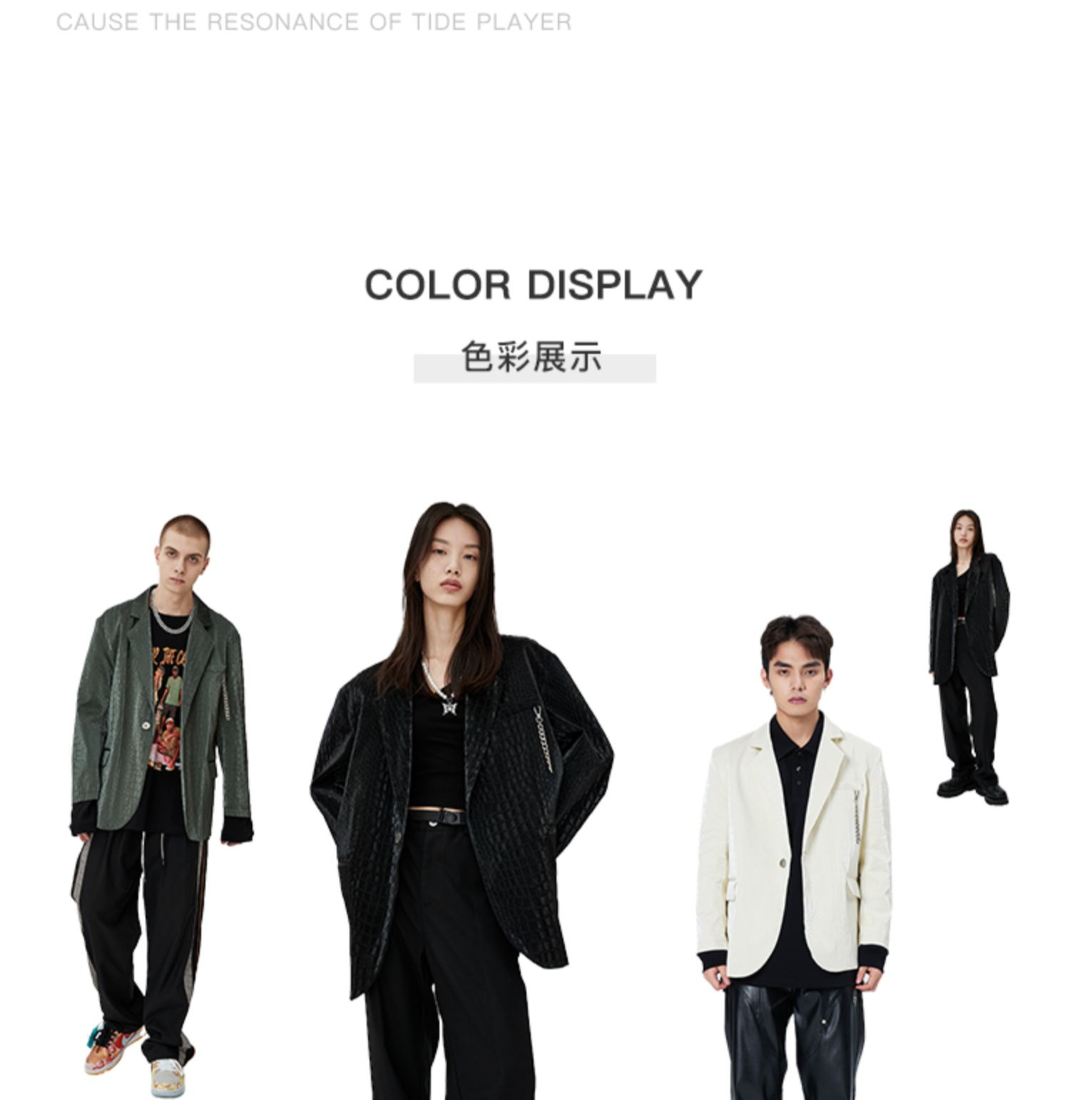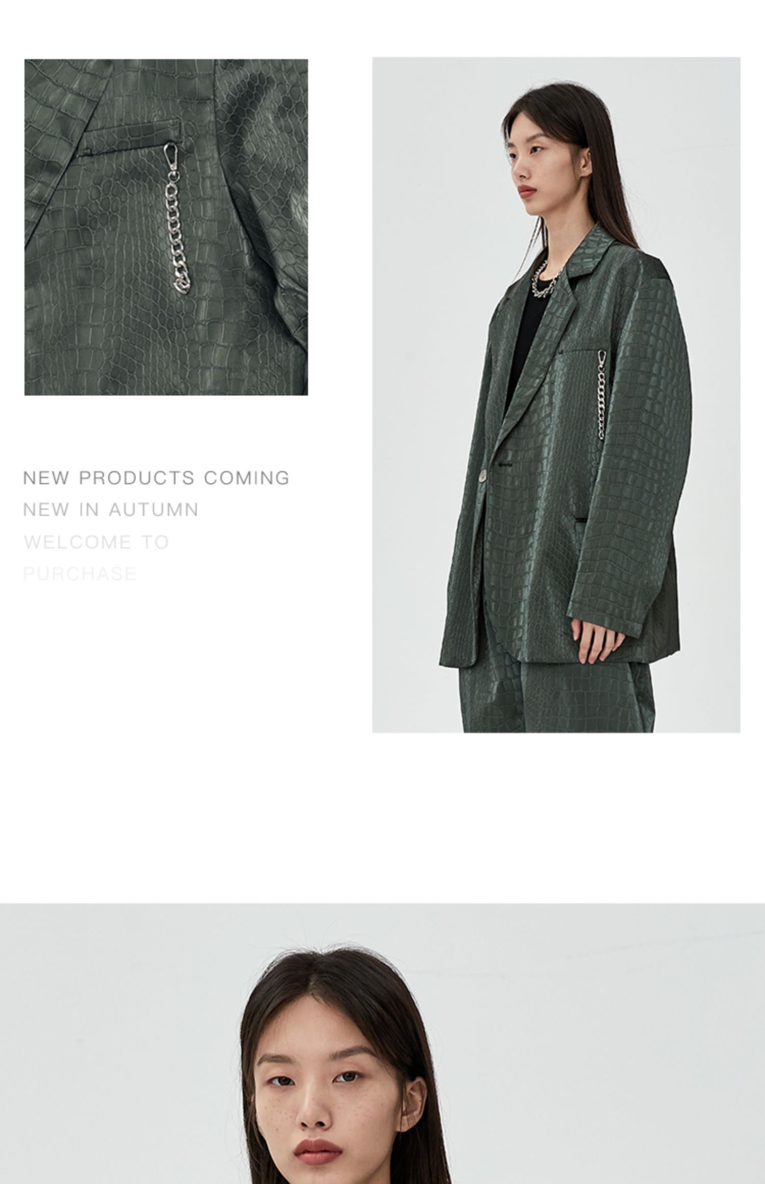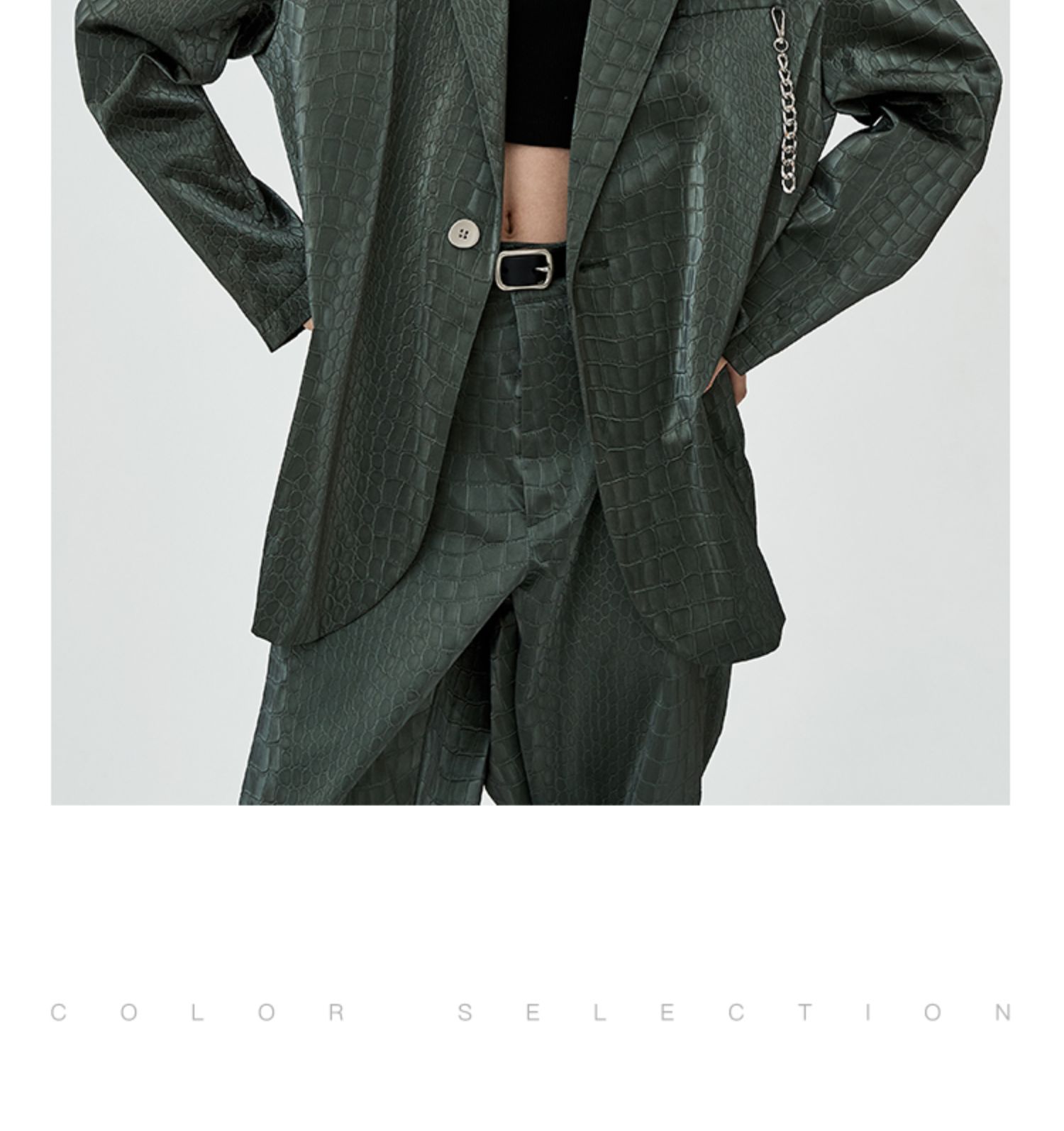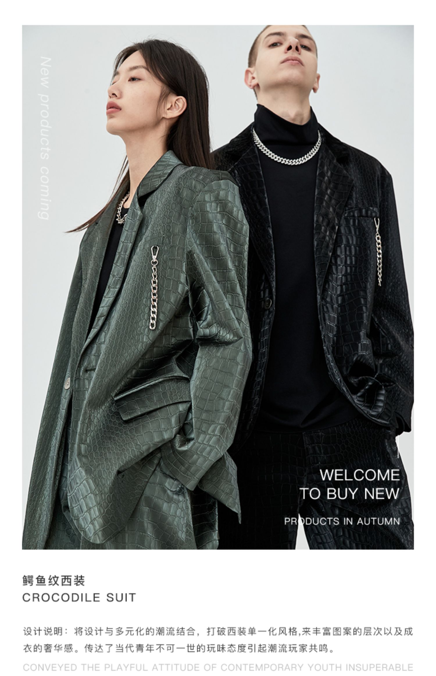 benmyshower国潮鳄鱼纹皮衣夹克潮牌宽松炸街廓形皮西装外套男女