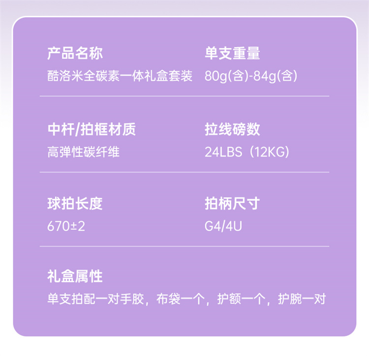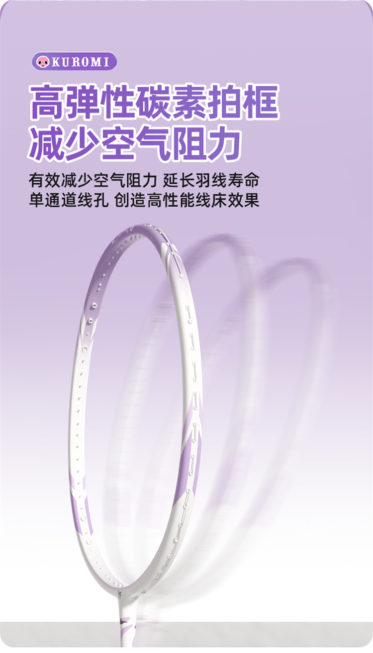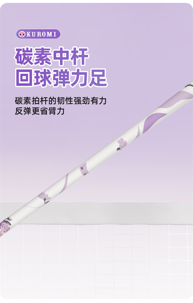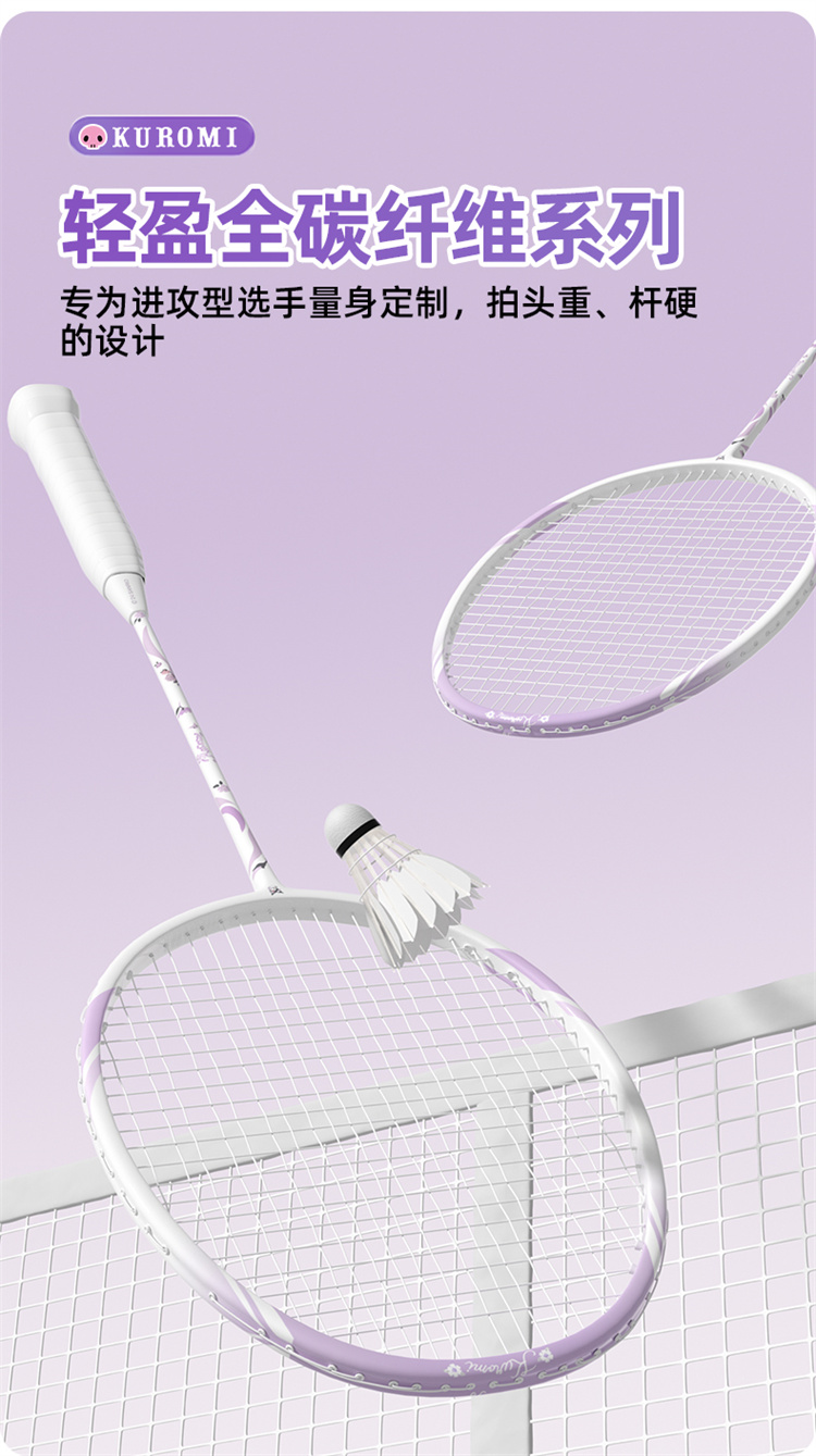 麦斯卡三丽鸥库洛米羽毛球拍成人女生单双拍全碳素纤维超轻拍套装