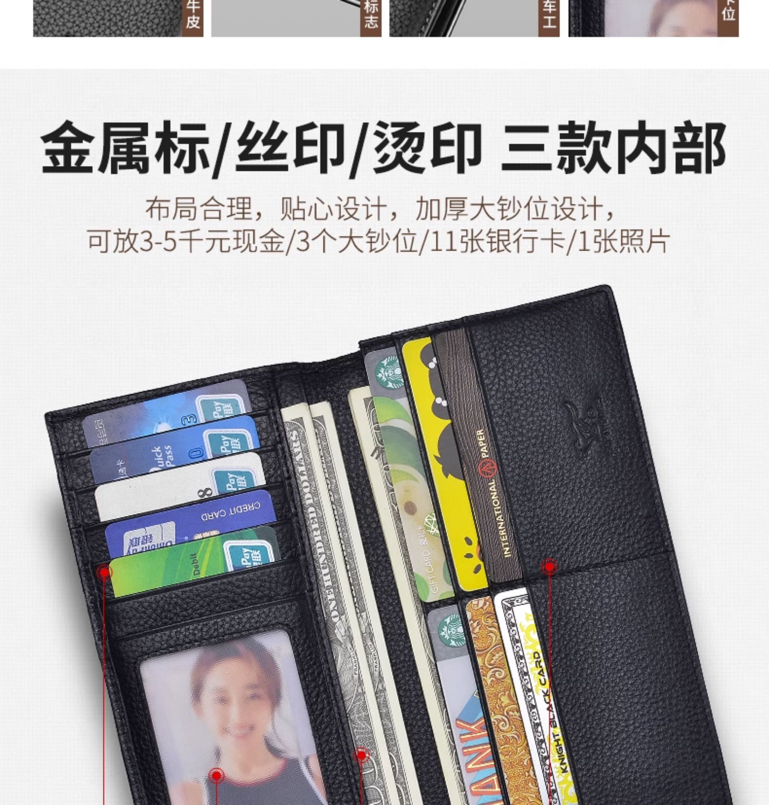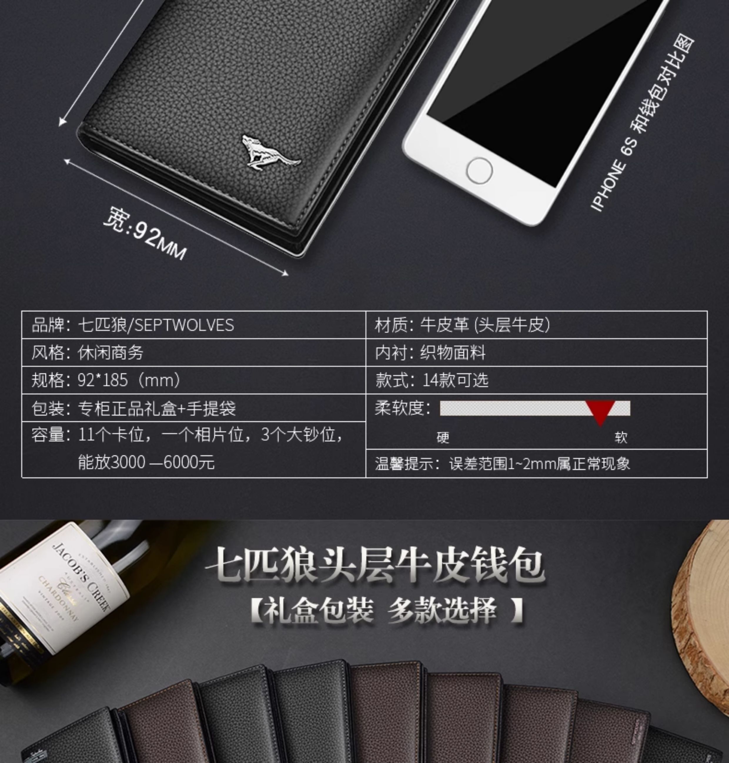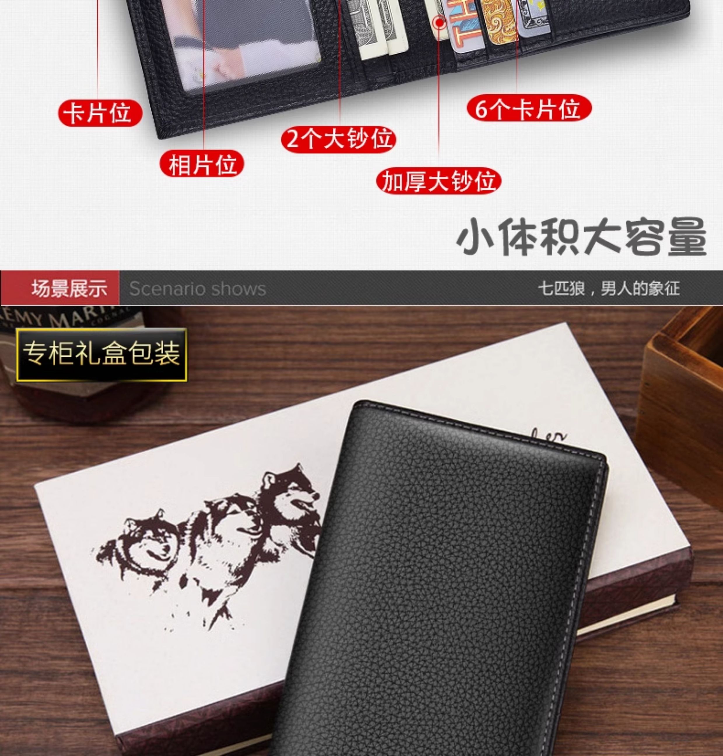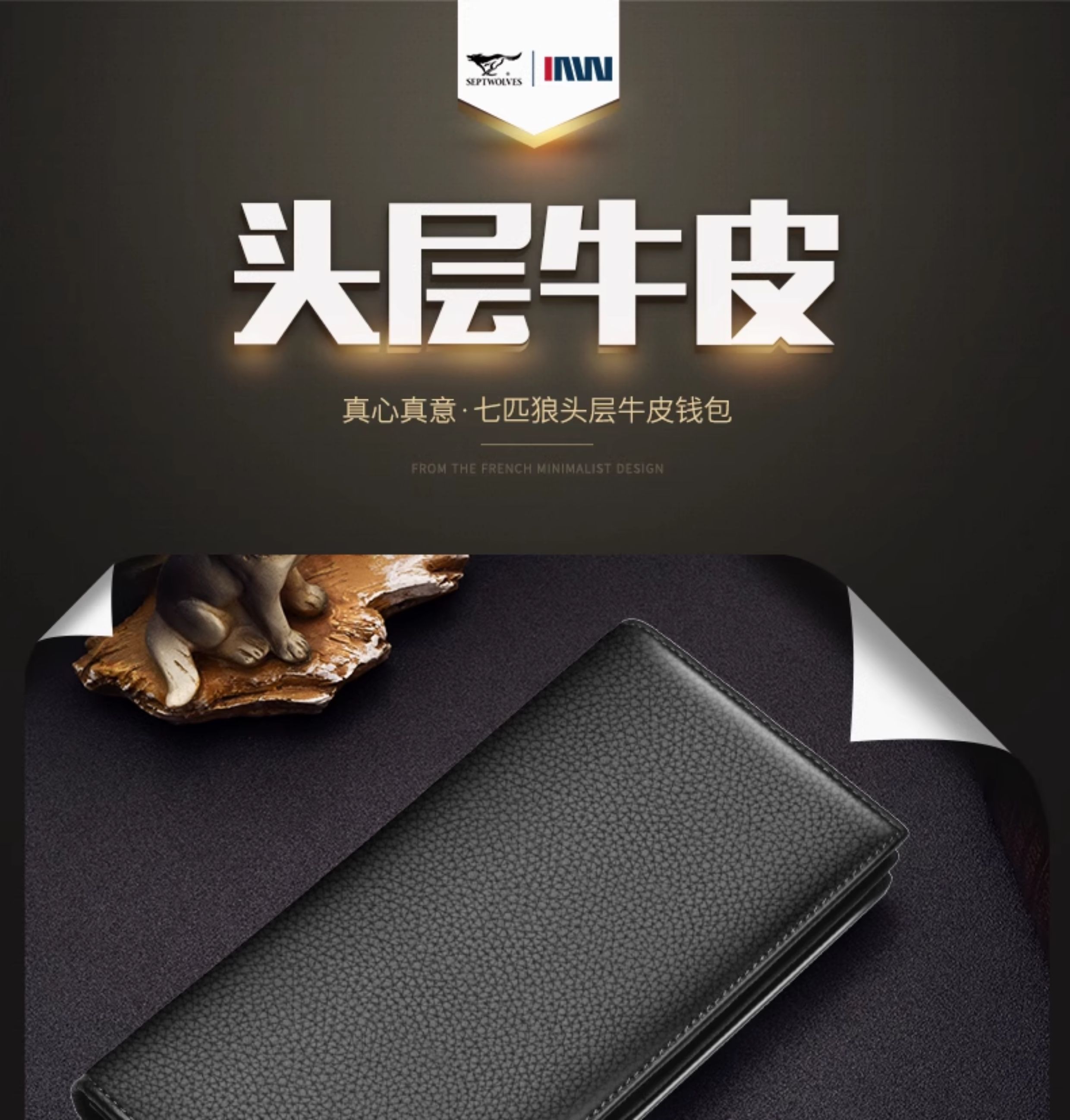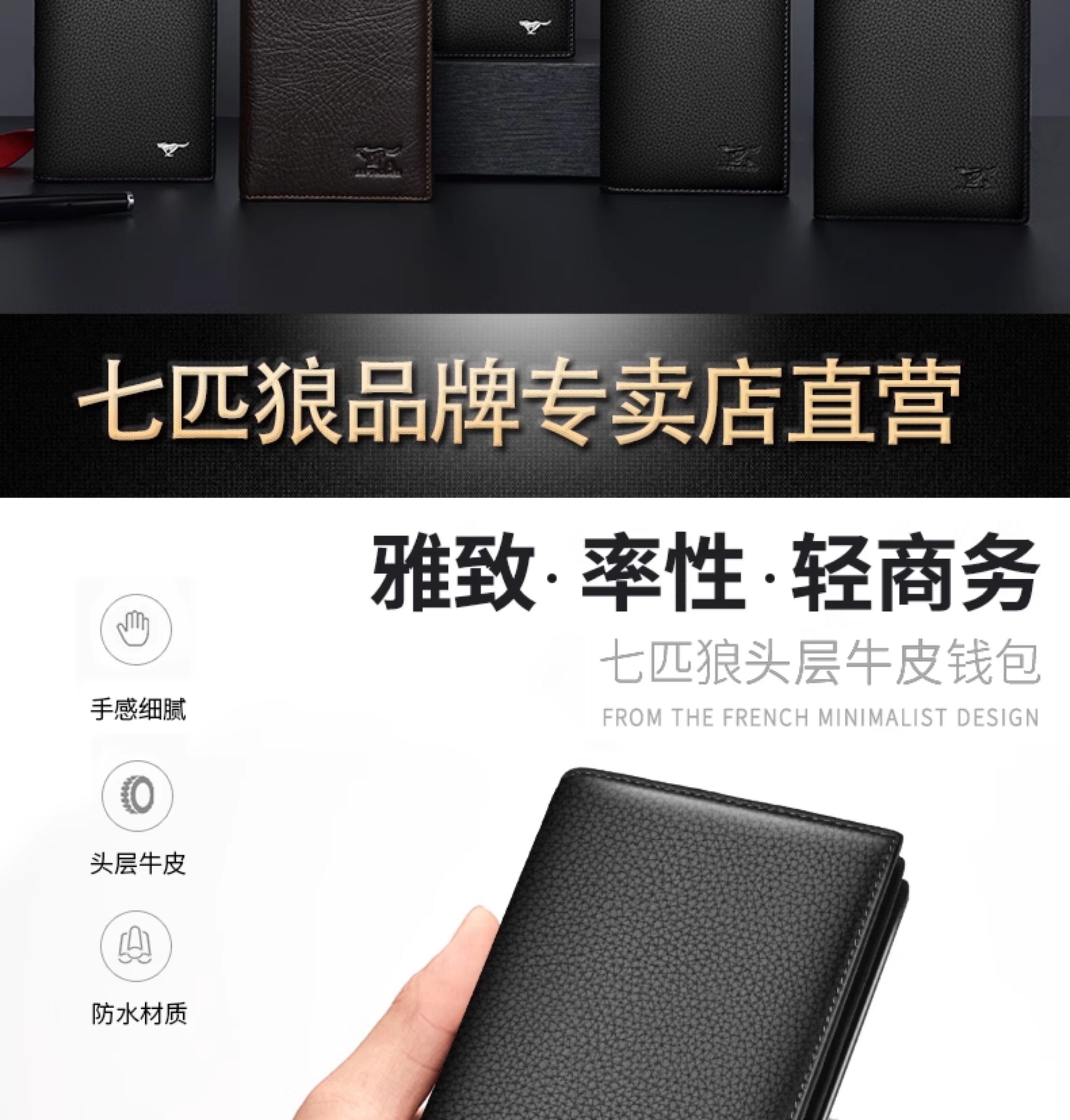 七匹狼男真皮长款钱包青年头层牛皮2025生日送老公超薄男士皮夹潮