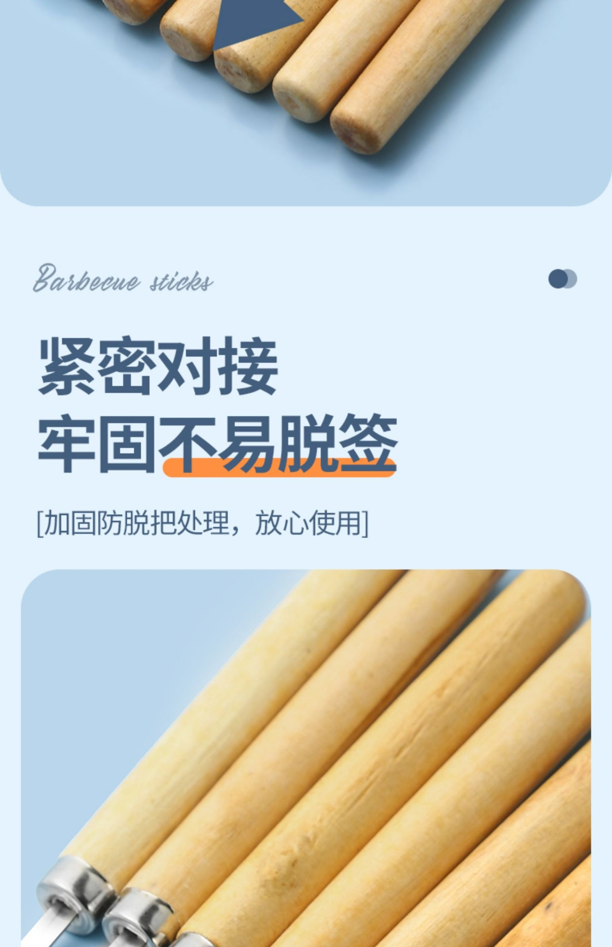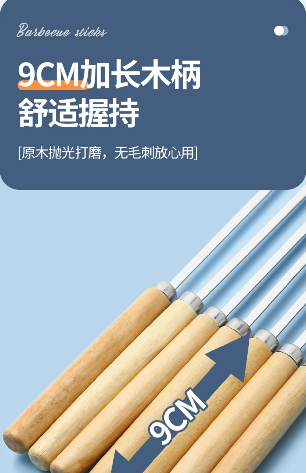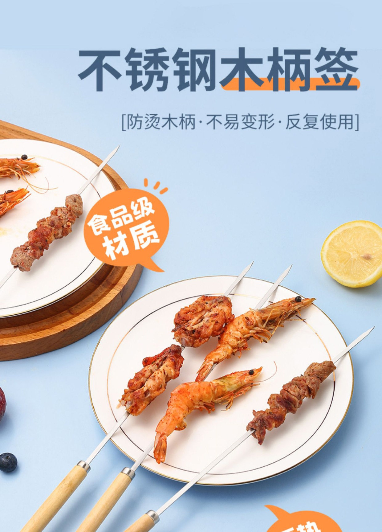 烧烤签子不锈钢烤针木柄扁签羊肉串串烤肉铁签子烤串专用工具
