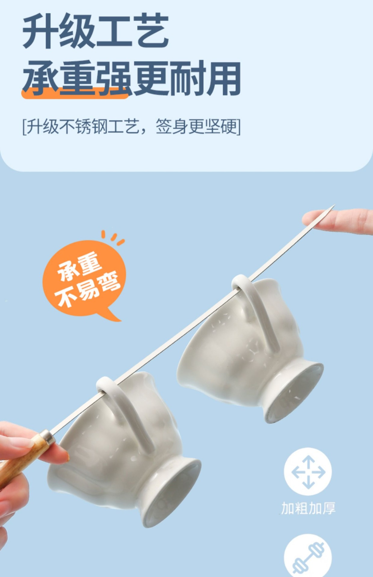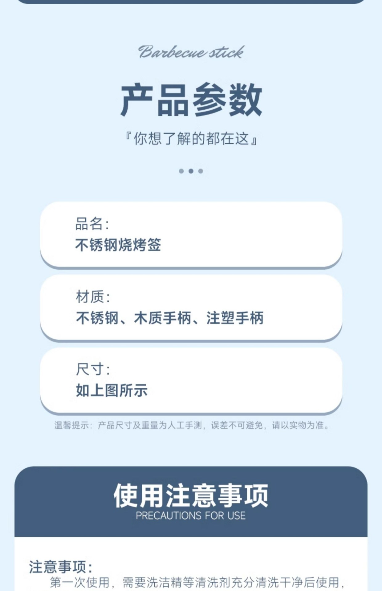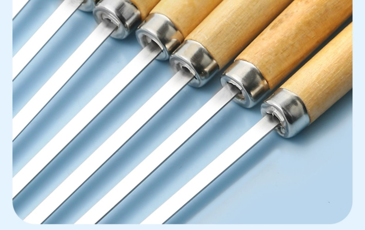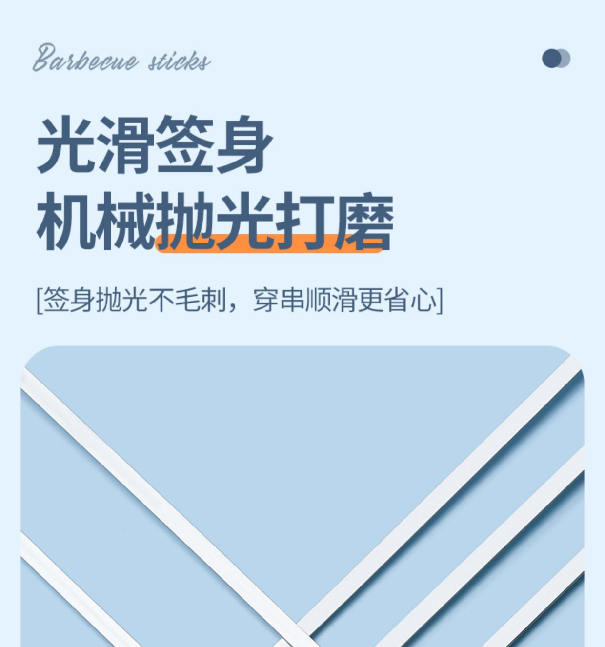 烧烤签子不锈钢烤针木柄扁签羊肉串串烤肉铁签子烤串专用工具