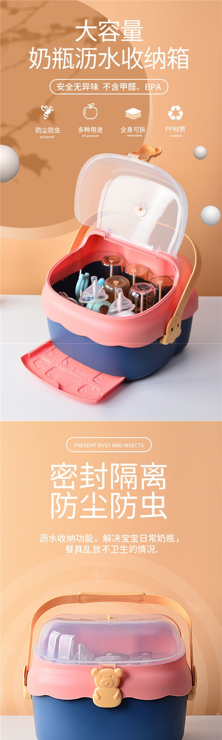 奶瓶收纳箱沥水架防尘盖宝宝餐具收纳盒碗筷辅食工具收纳婴儿