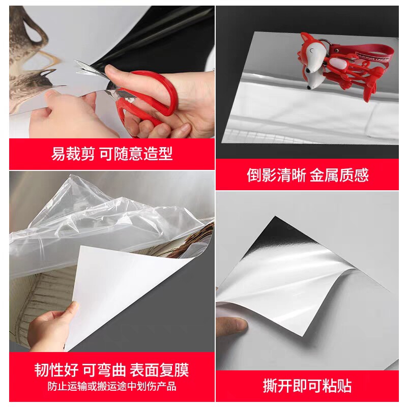 镜面贴不碎PE镜面板背胶即粘婚庆拍摄金色银色婚礼镜面墙贴软镜子