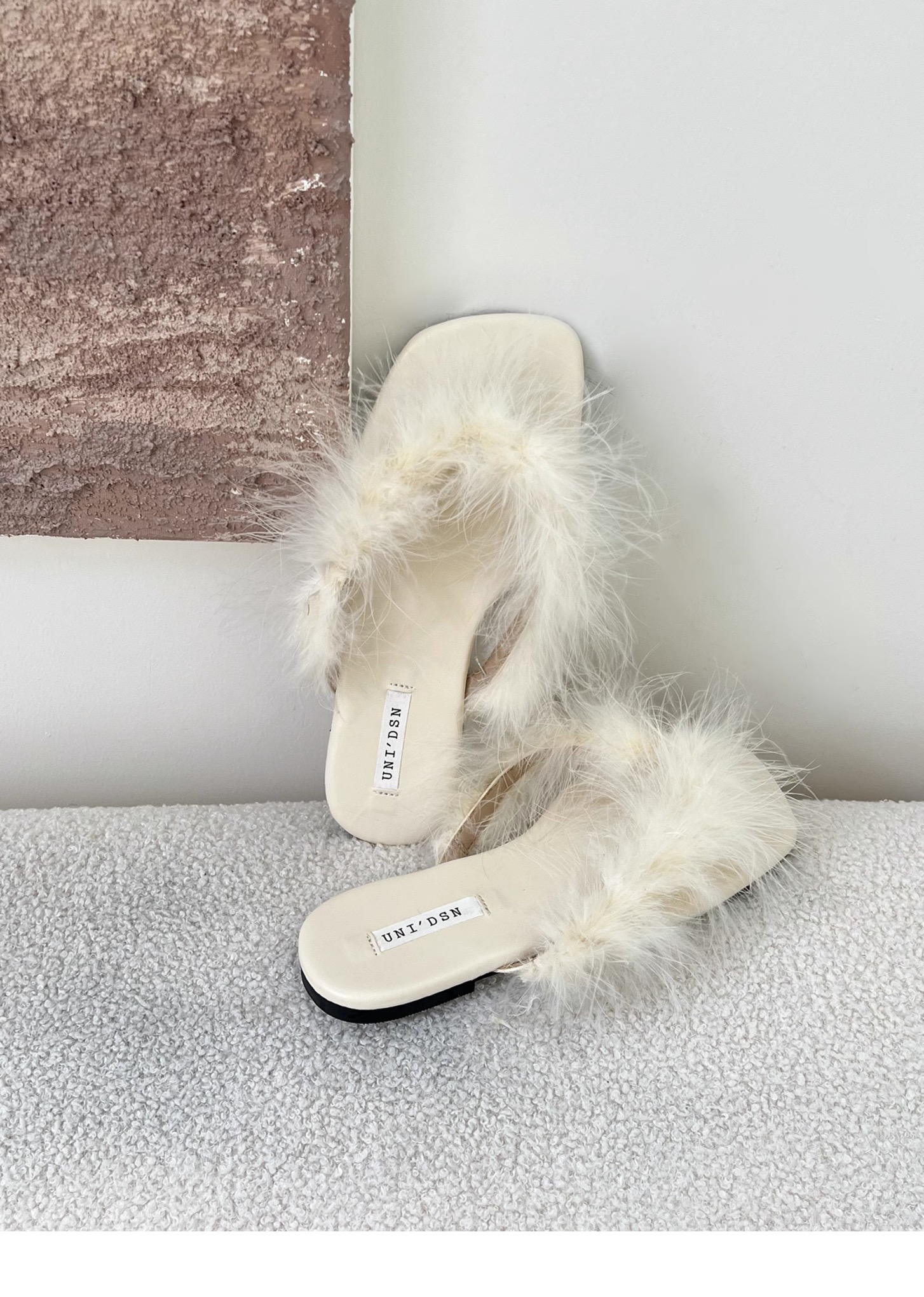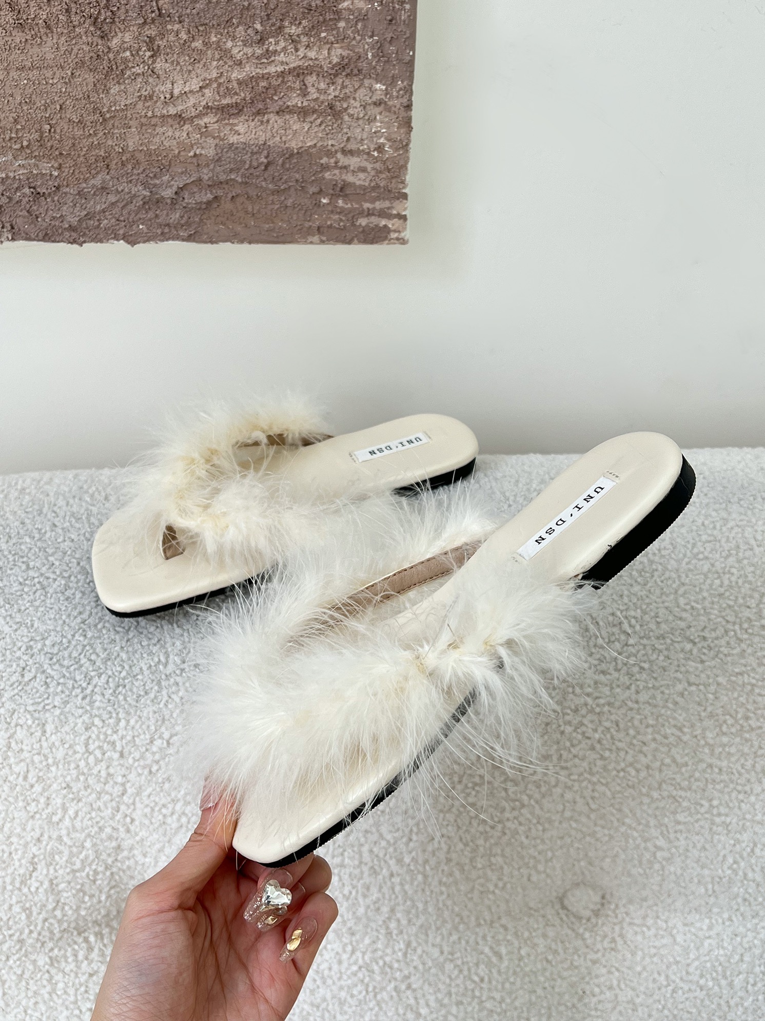 毛毛人字拖女2025新款踩屎感夹脚凉拖鞋夏季外穿平底粉色沙滩凉鞋