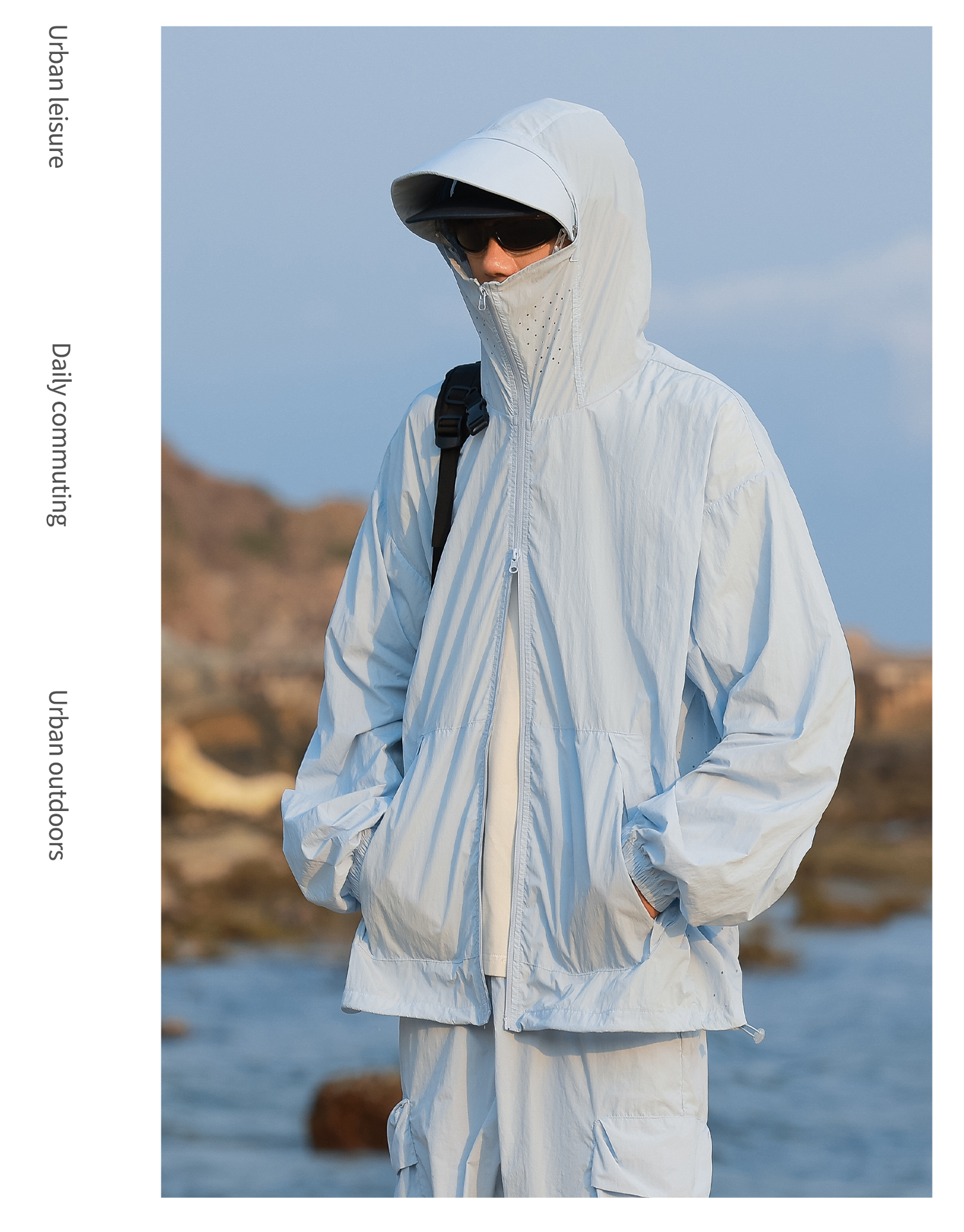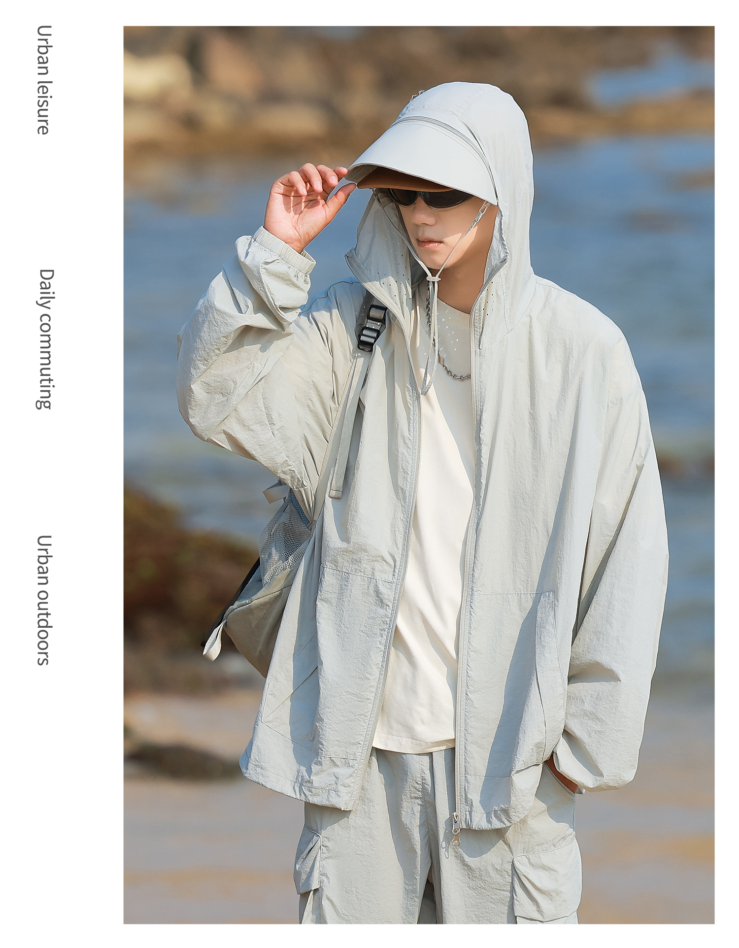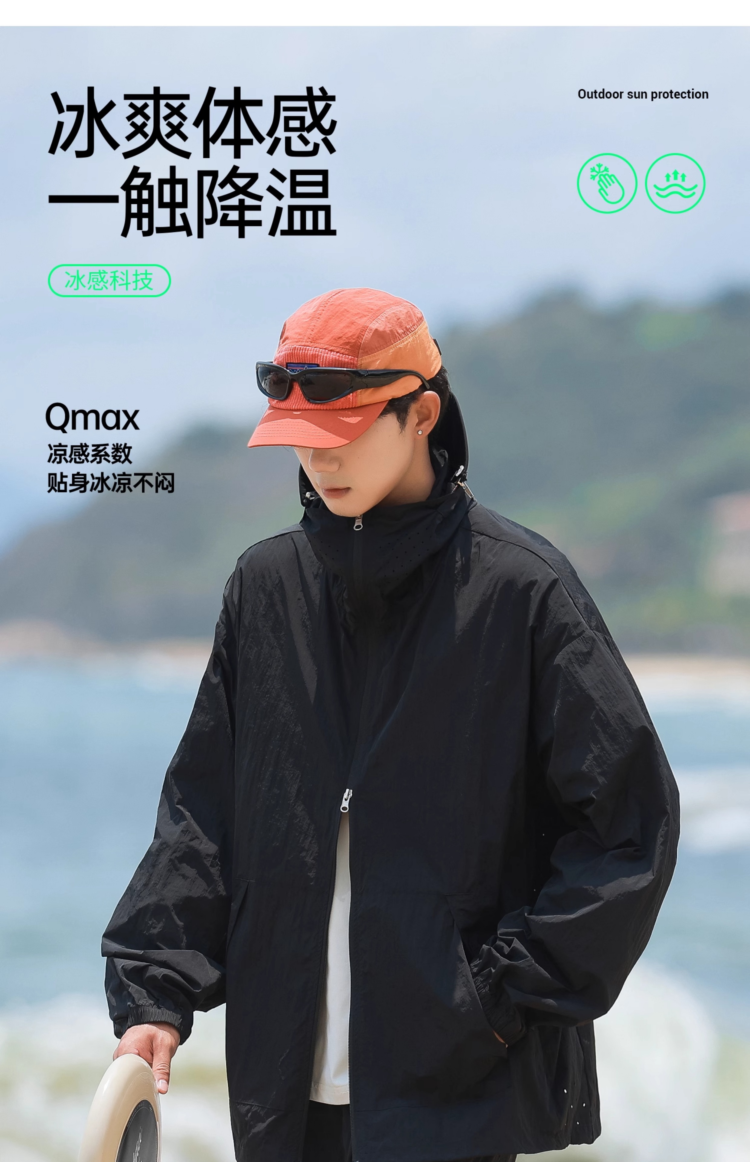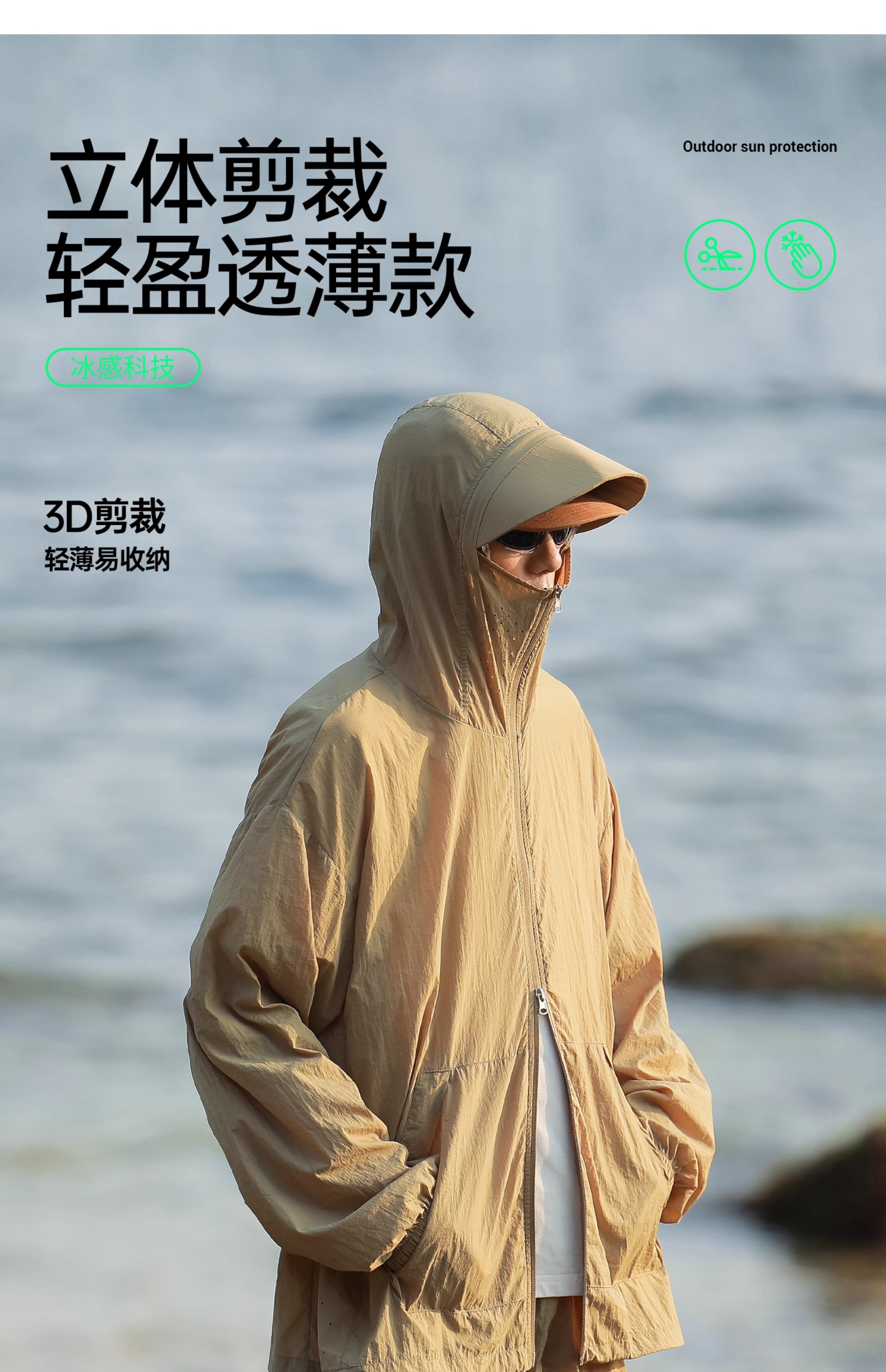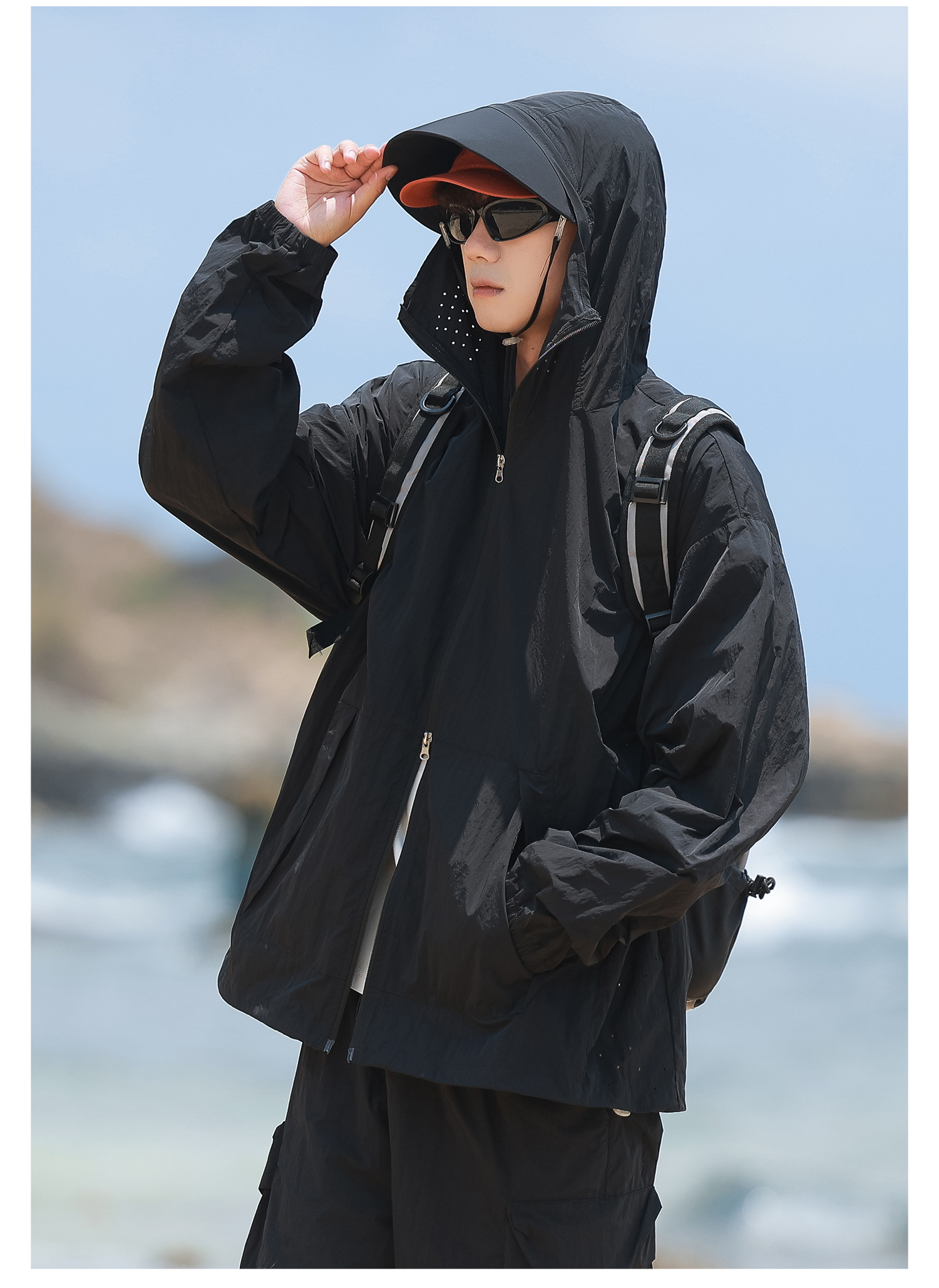 UPF100+冰丝防晒服男款夏季宽松防紫外线外套男士户外轻薄防晒衣