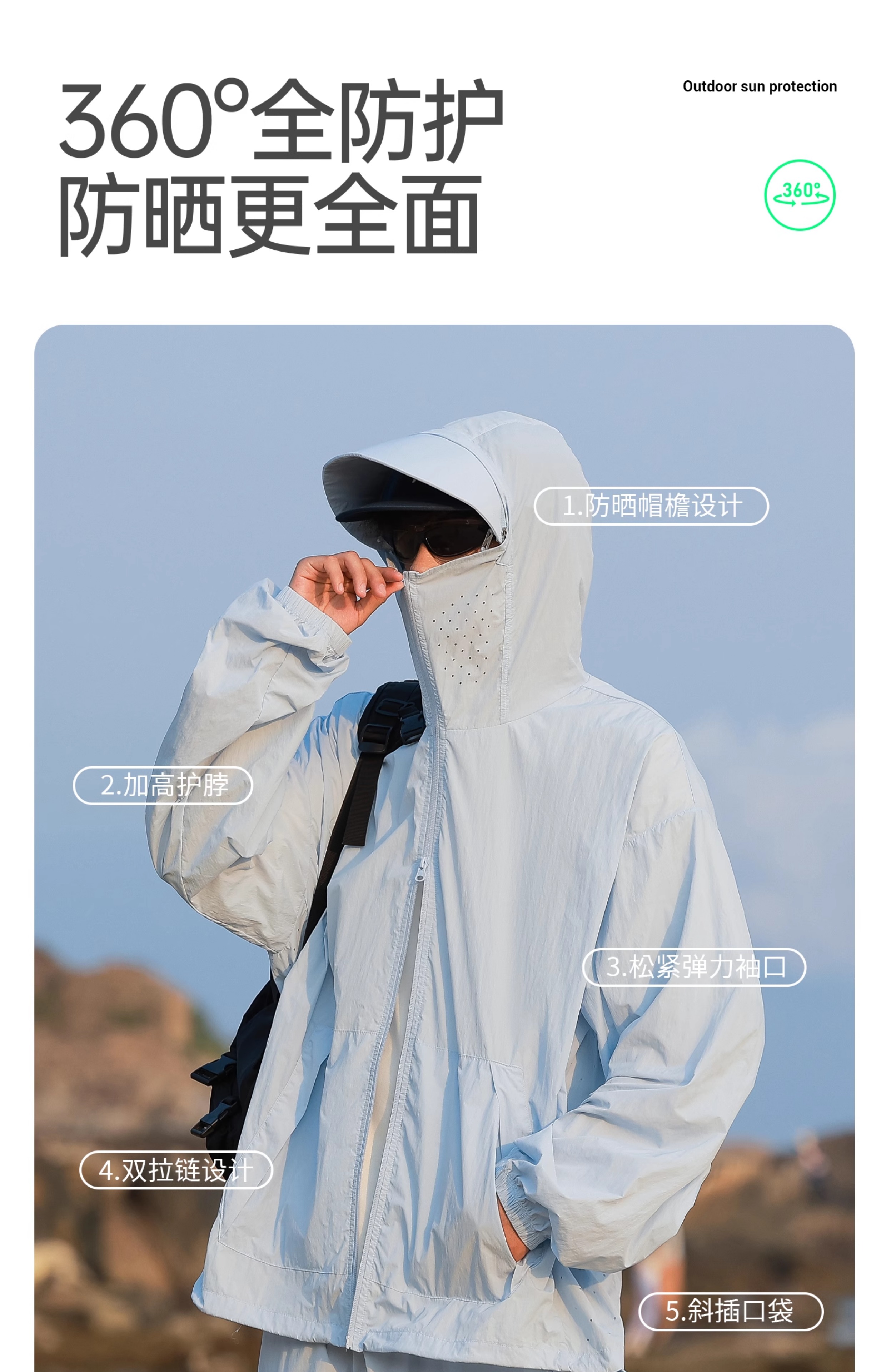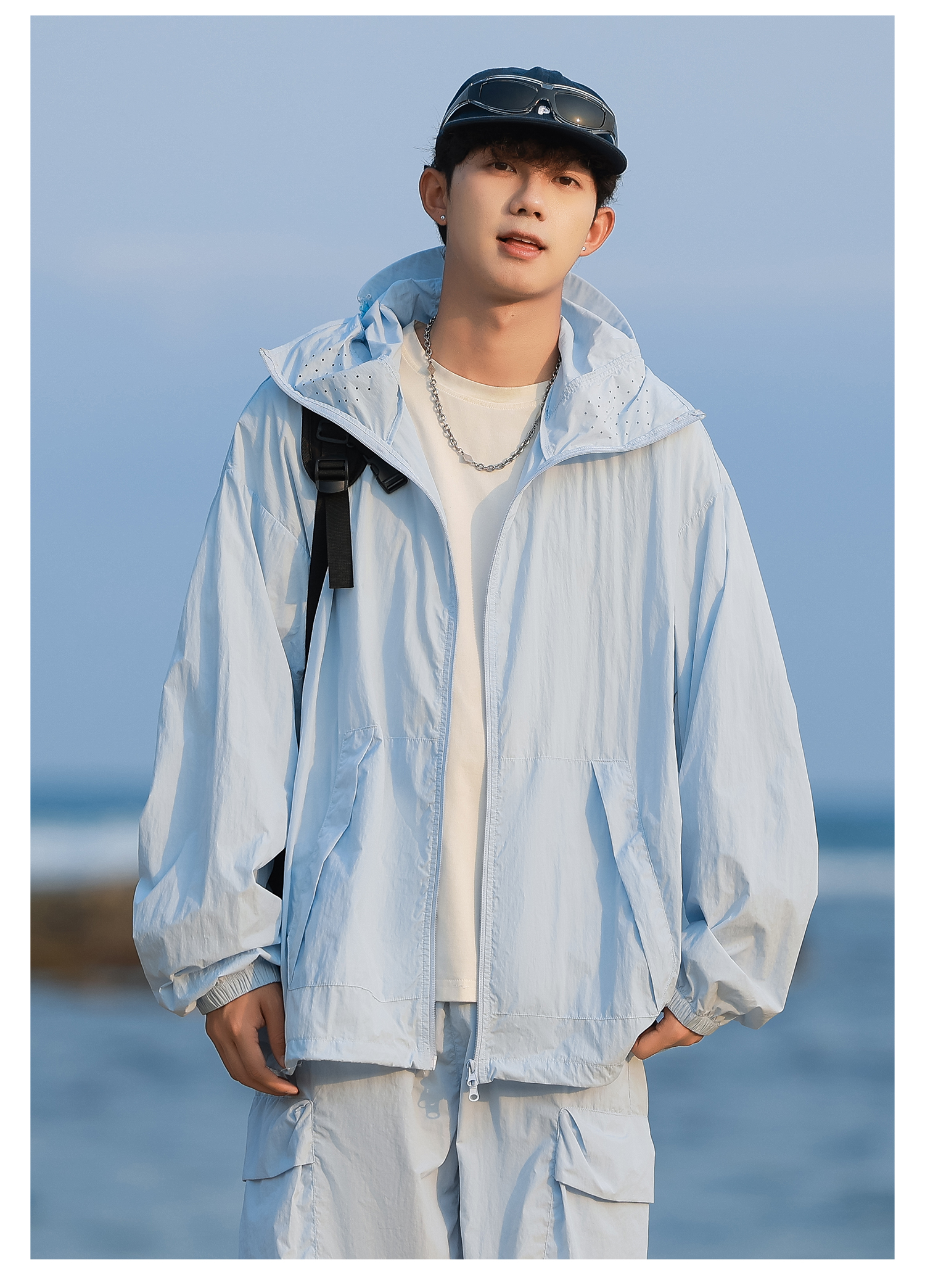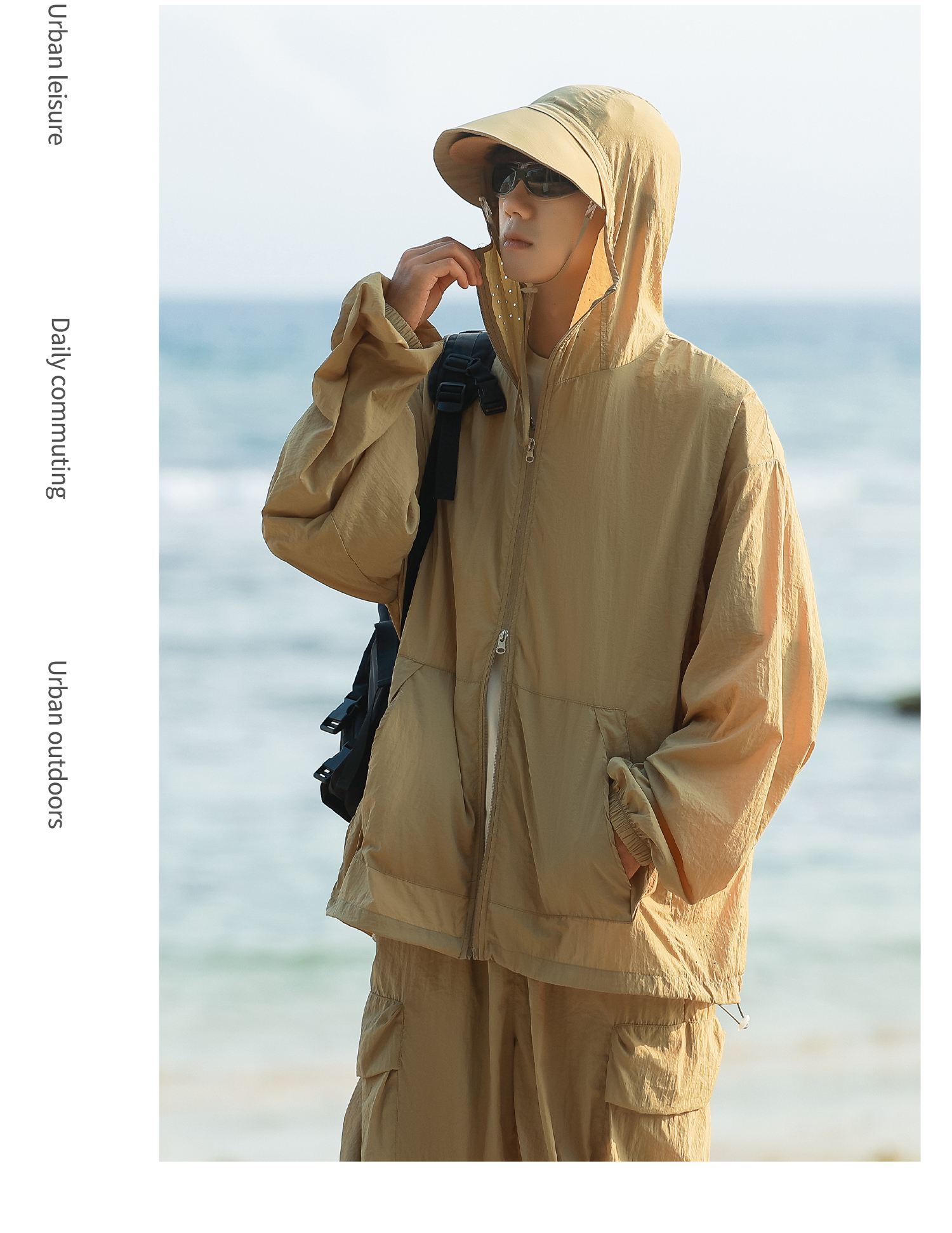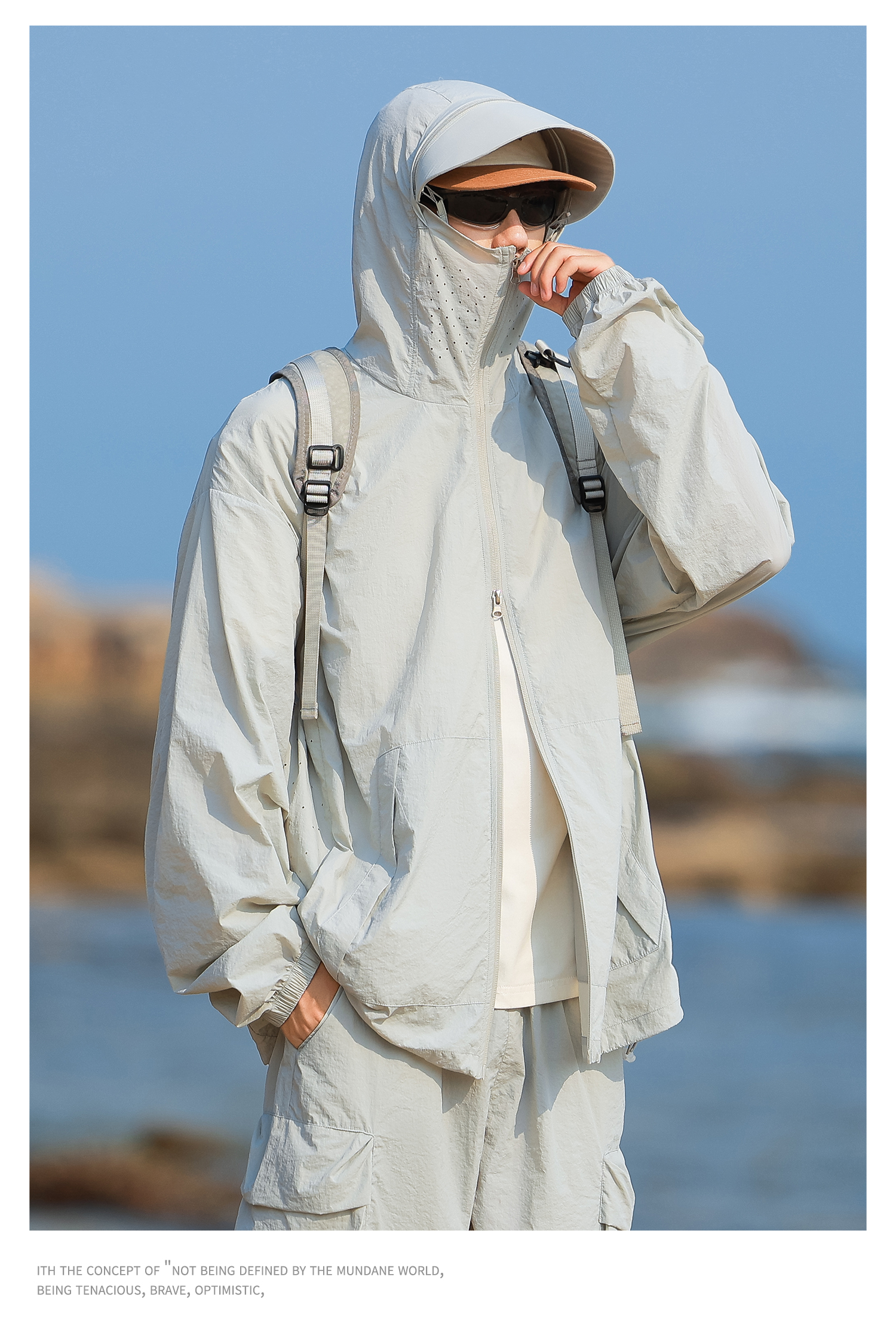 UPF100+冰丝防晒服男款夏季宽松防紫外线外套男士户外轻薄防晒衣