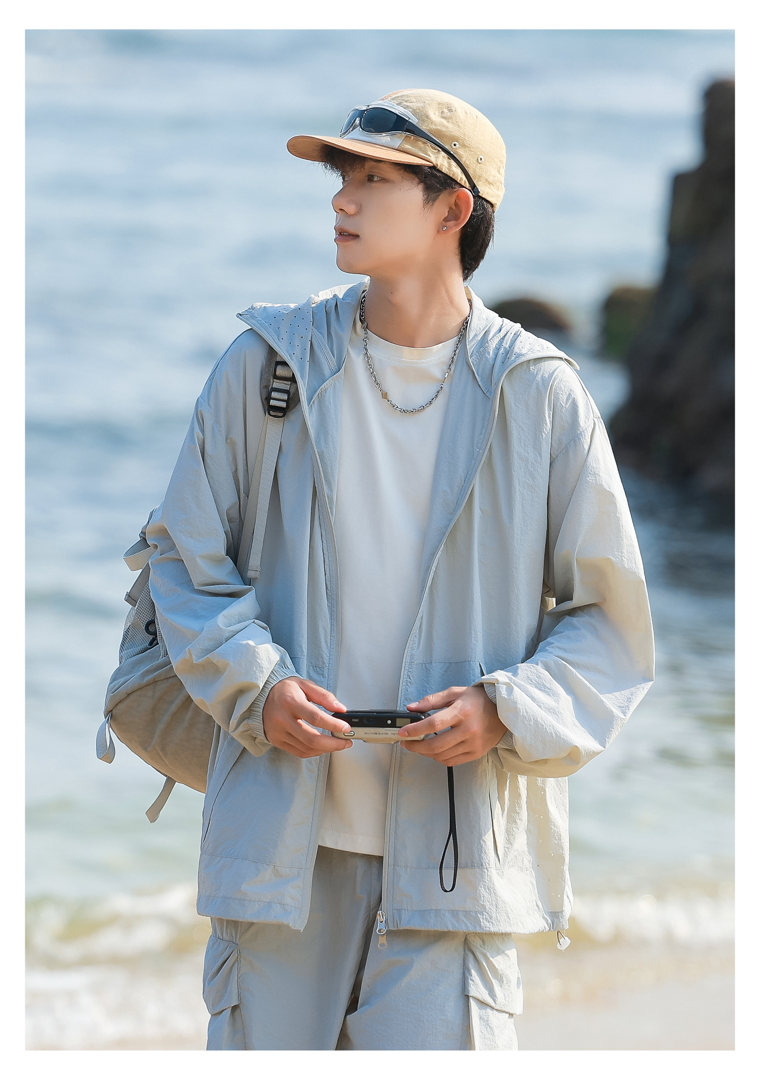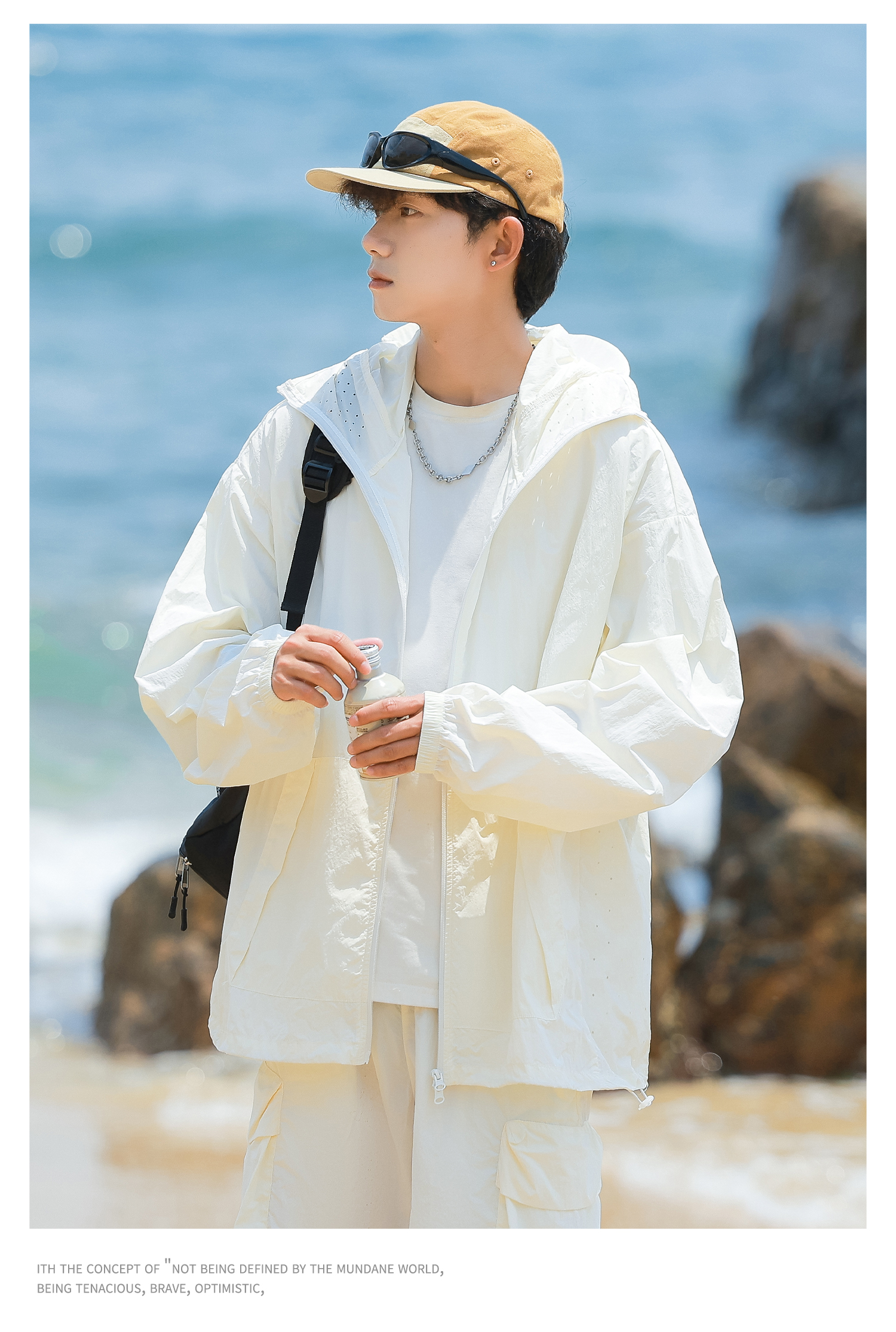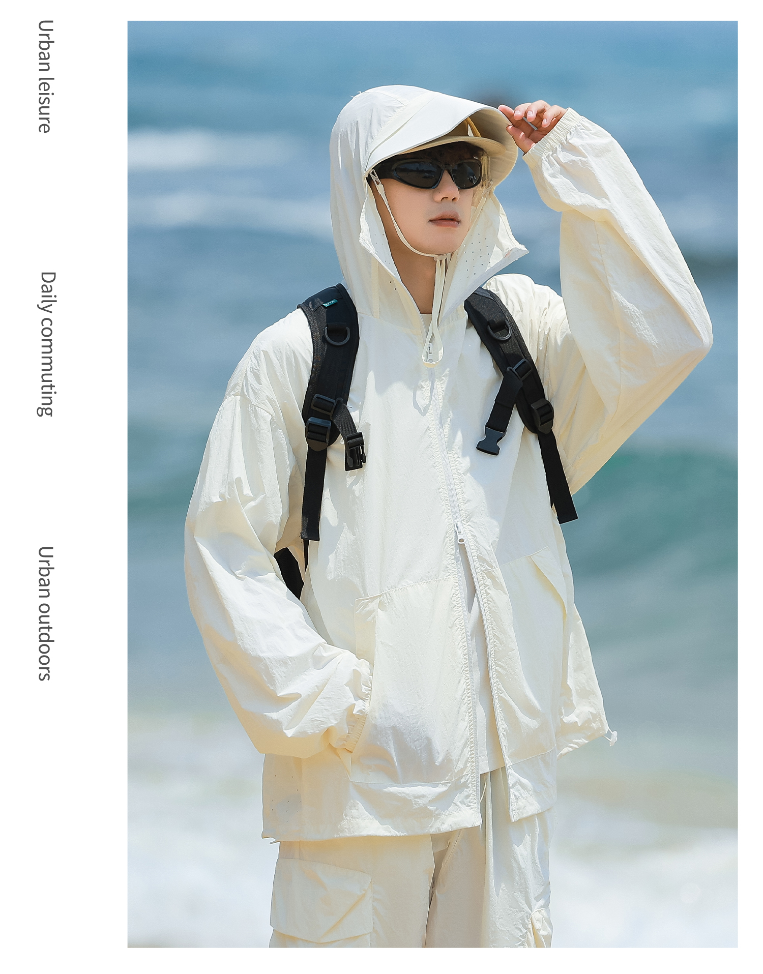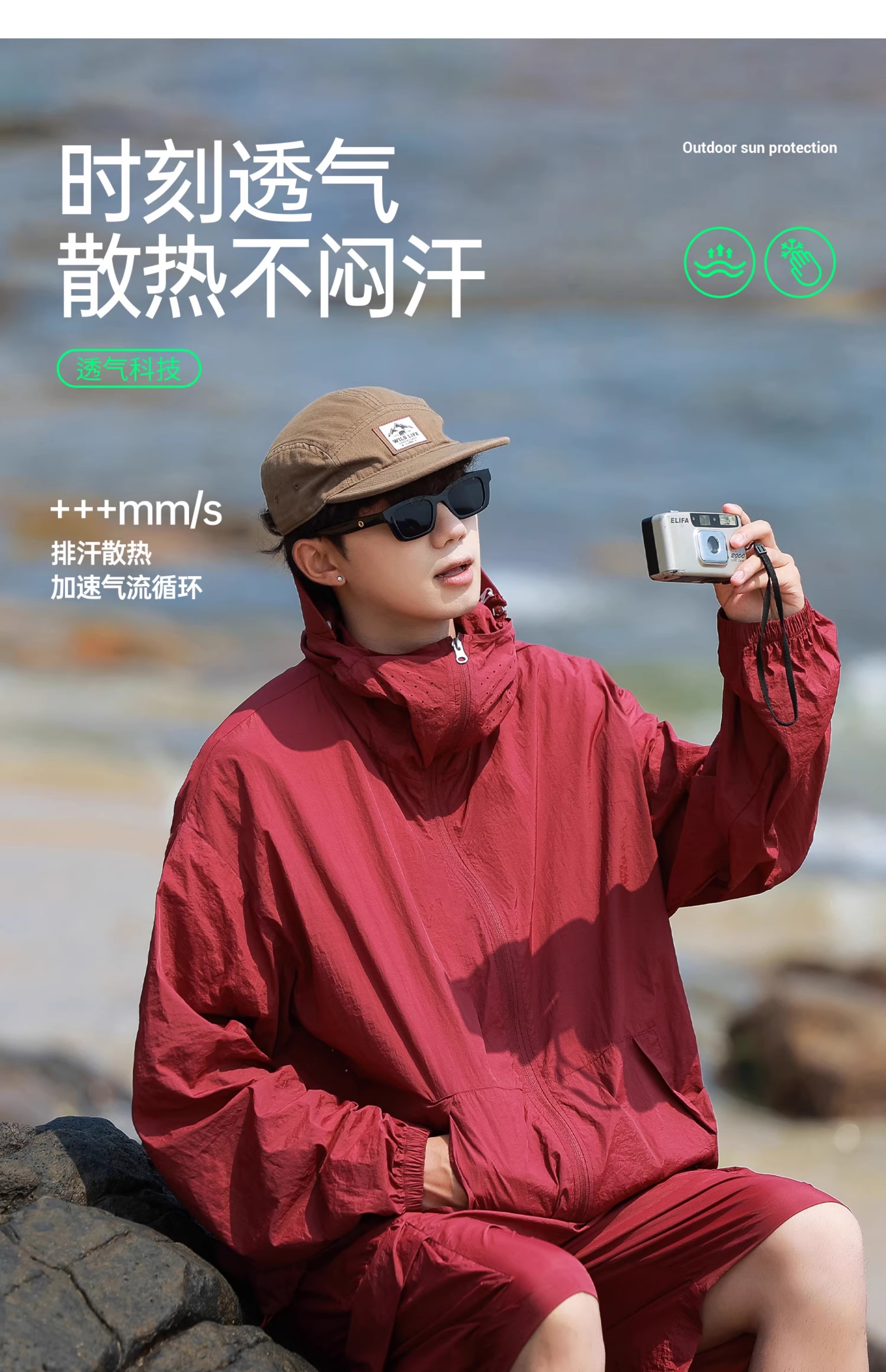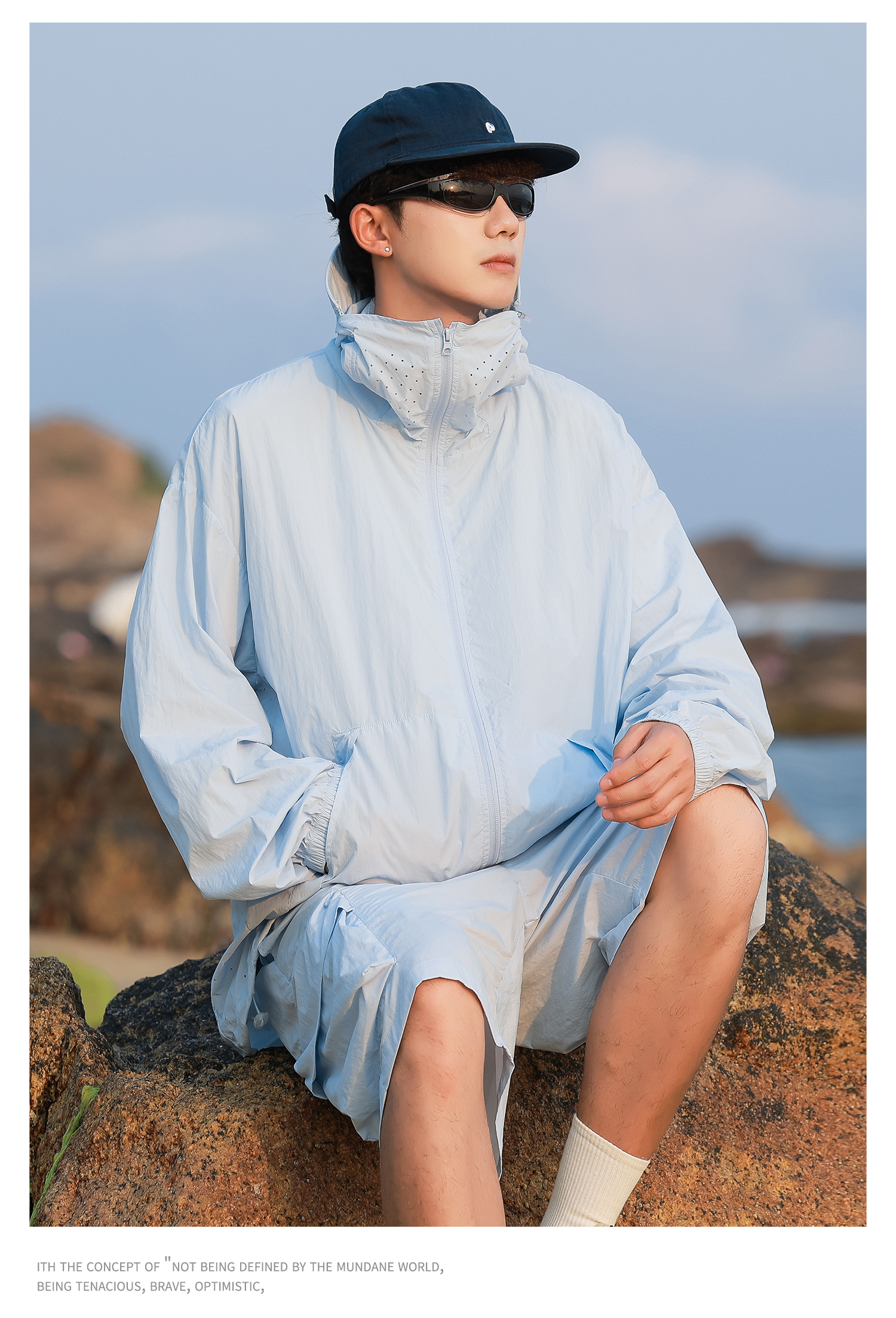 UPF100+冰丝防晒服男款夏季宽松防紫外线外套男士户外轻薄防晒衣