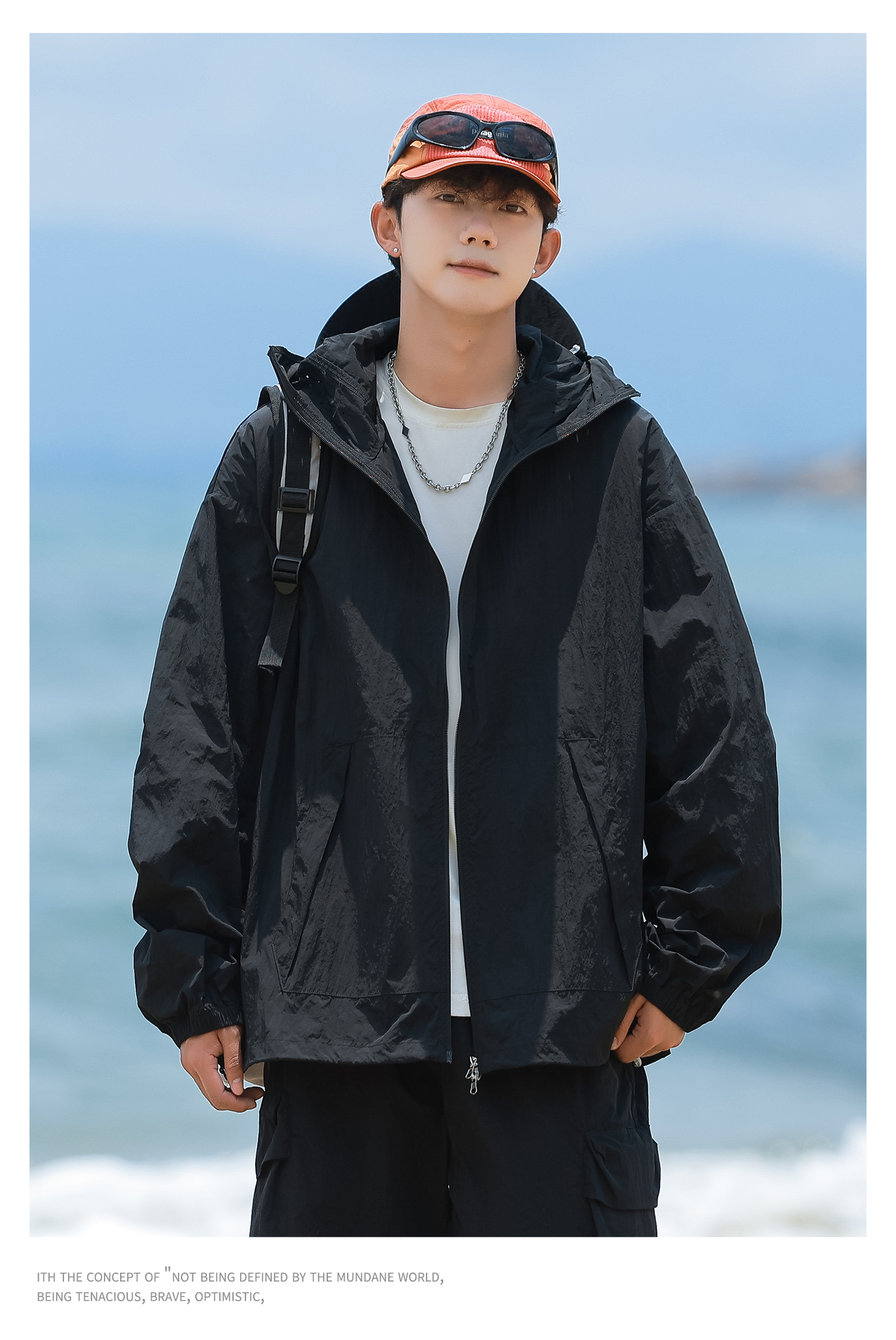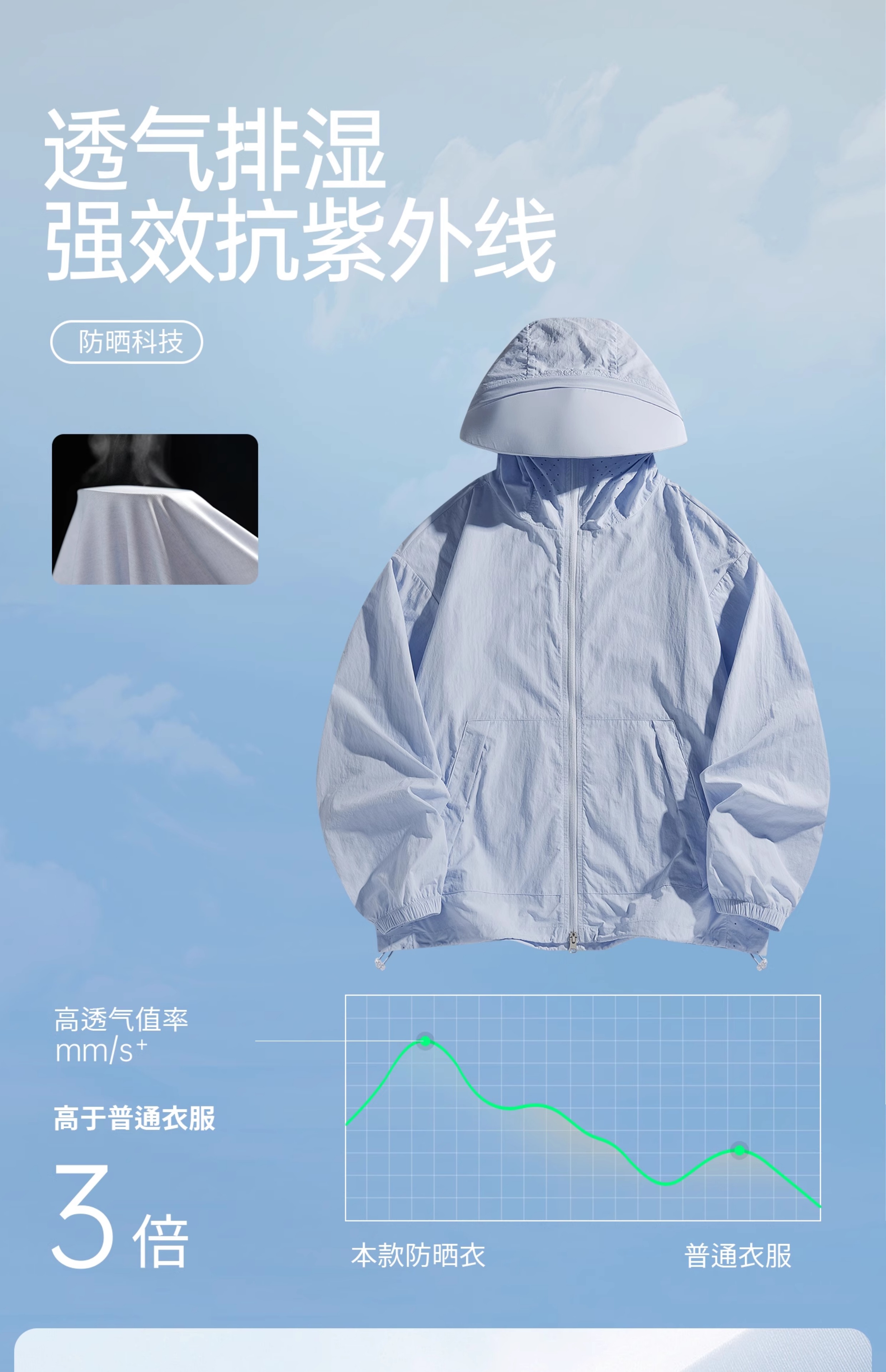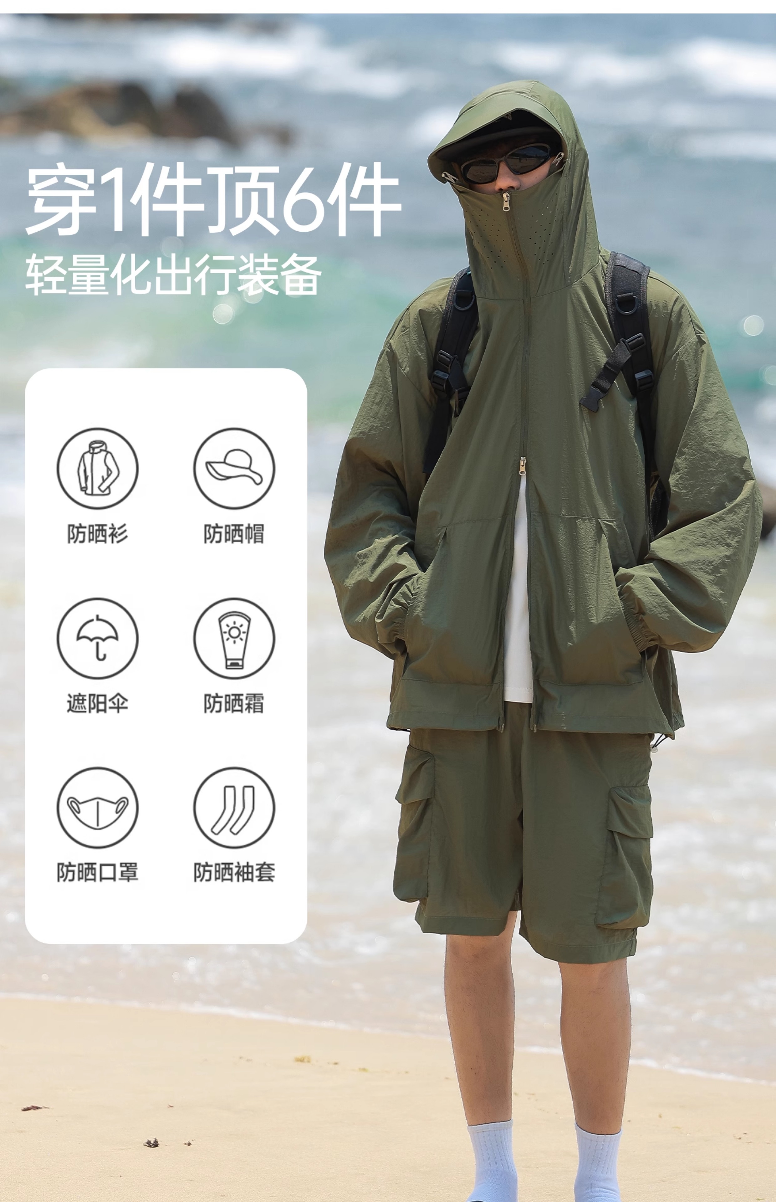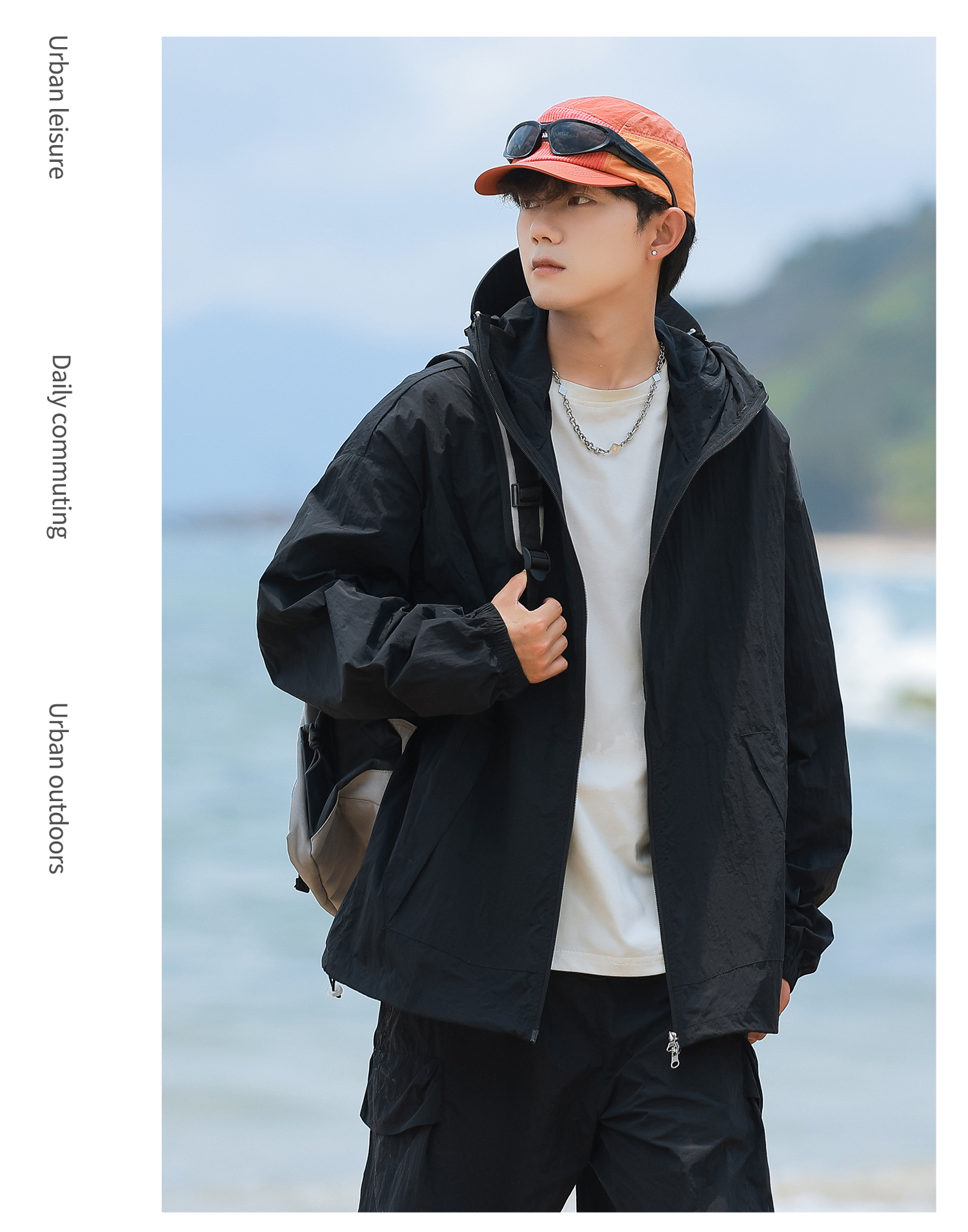 UPF100+冰丝防晒服男款夏季宽松防紫外线外套男士户外轻薄防晒衣