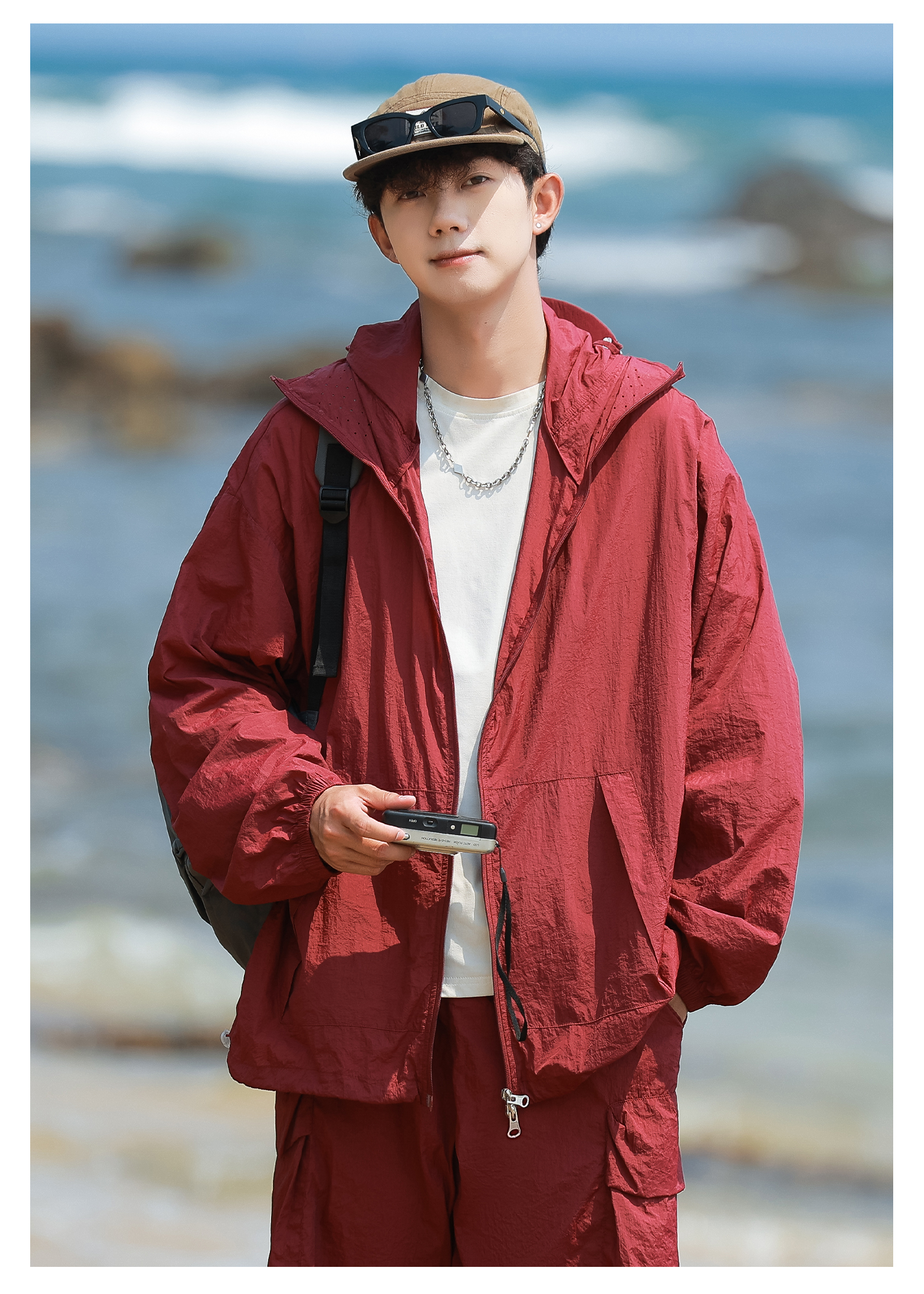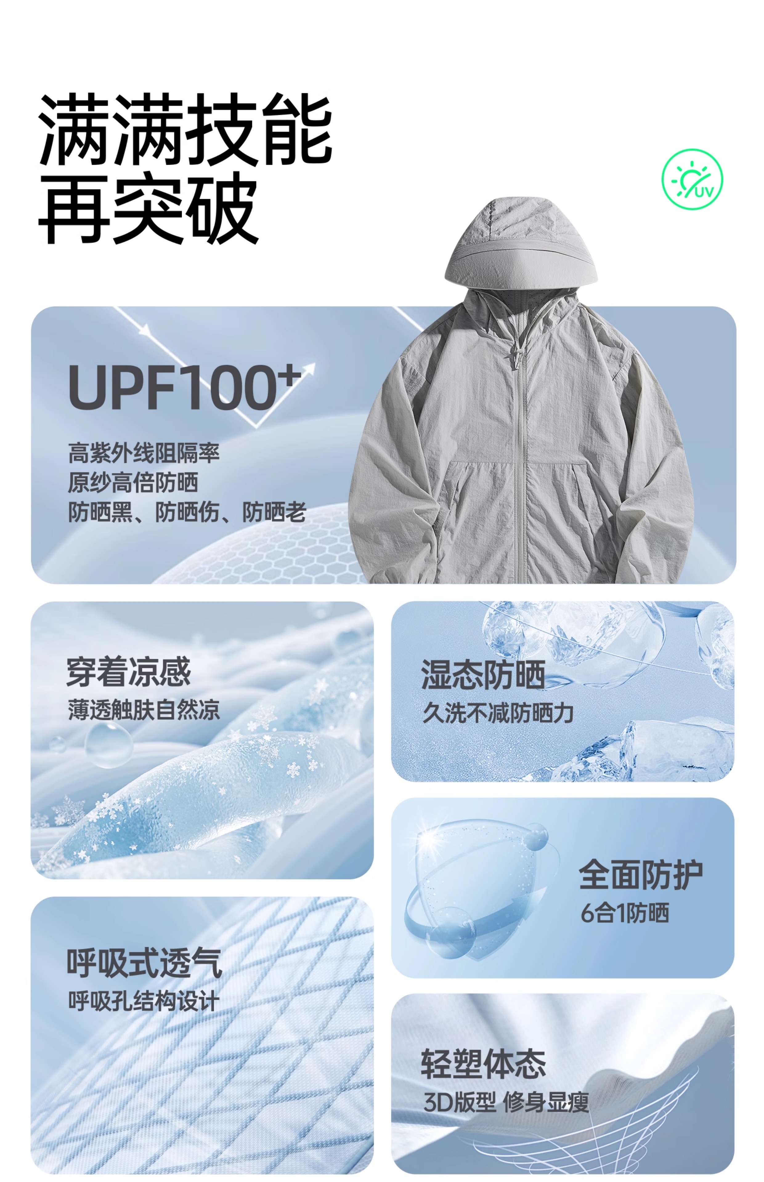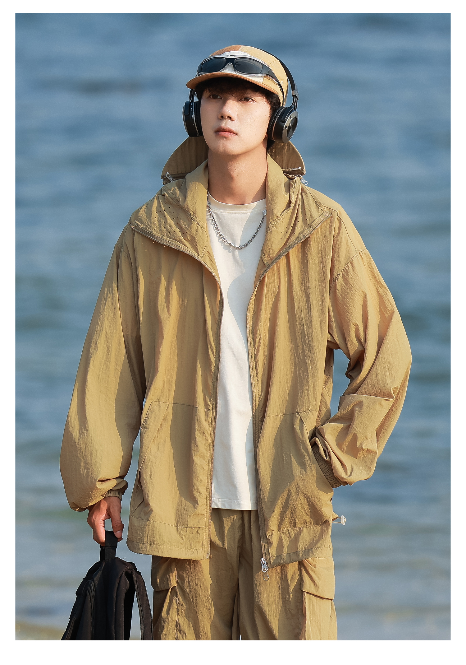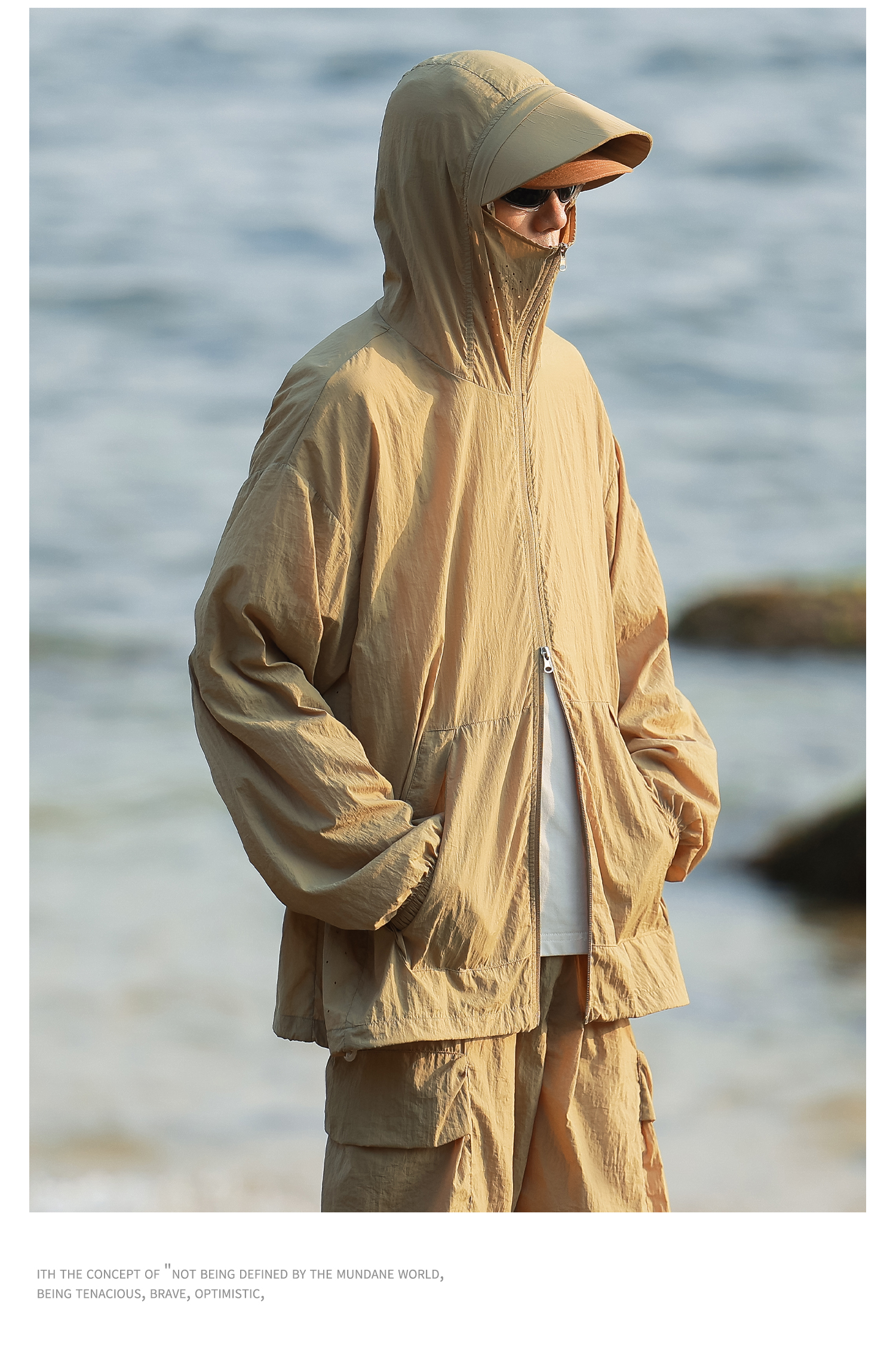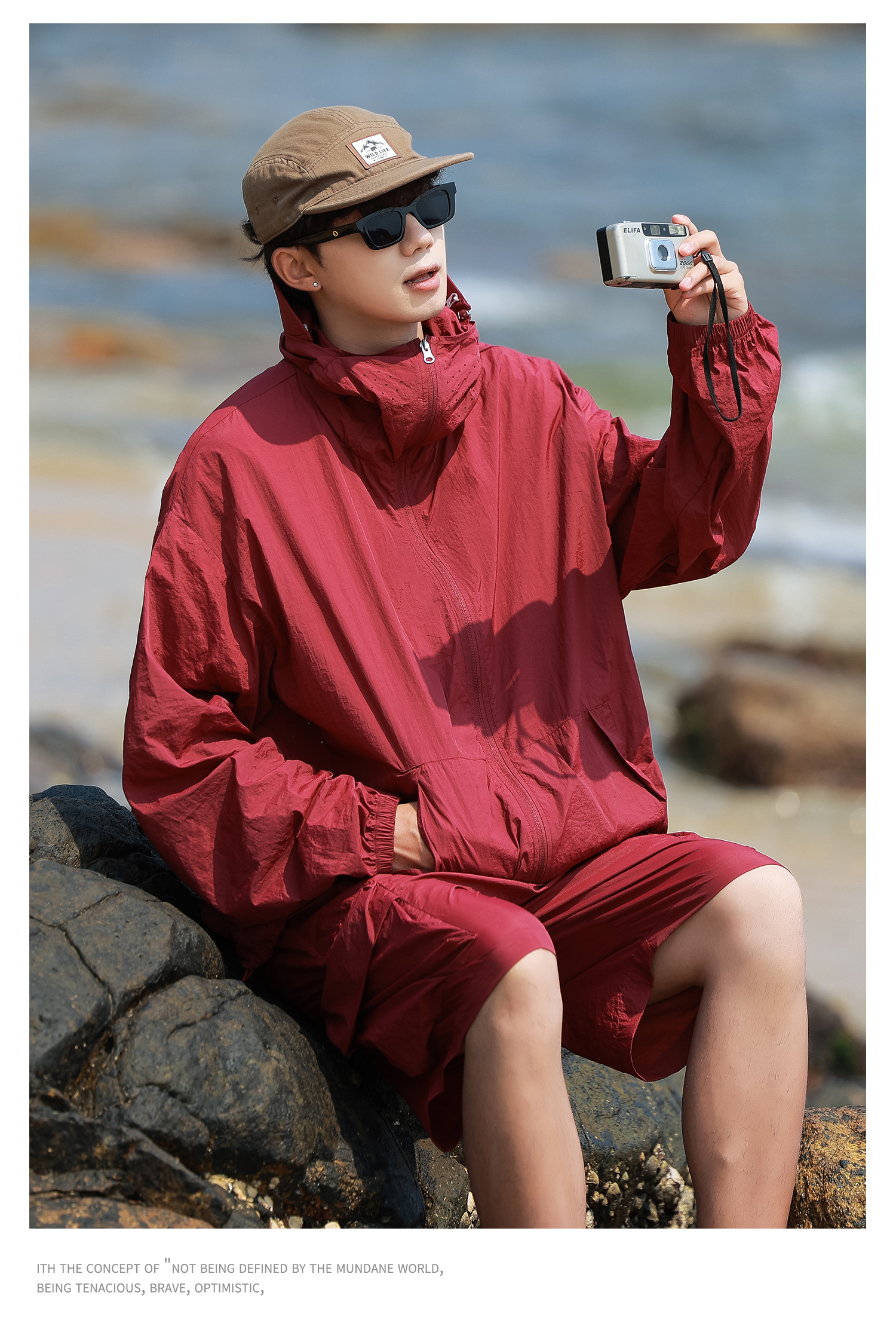 UPF100+冰丝防晒服男款夏季宽松防紫外线外套男士户外轻薄防晒衣