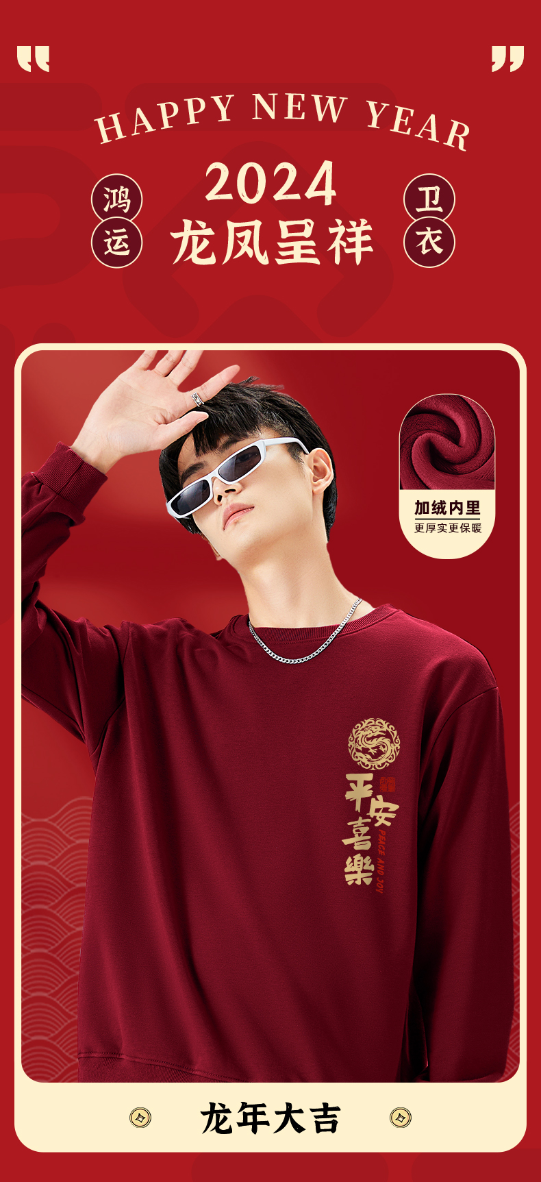 卫衣男款秋冬季衣服男装酒红色蛇年本命年加绒2025新款男士外套