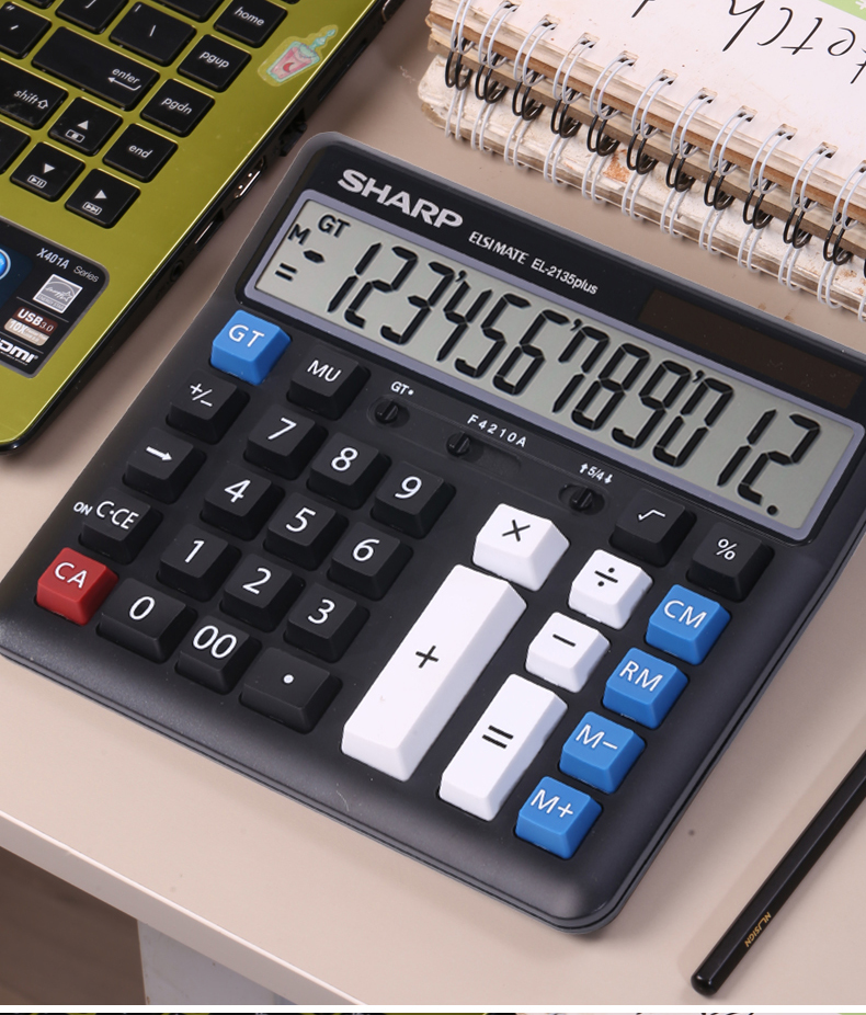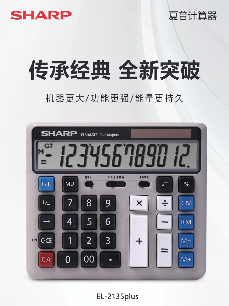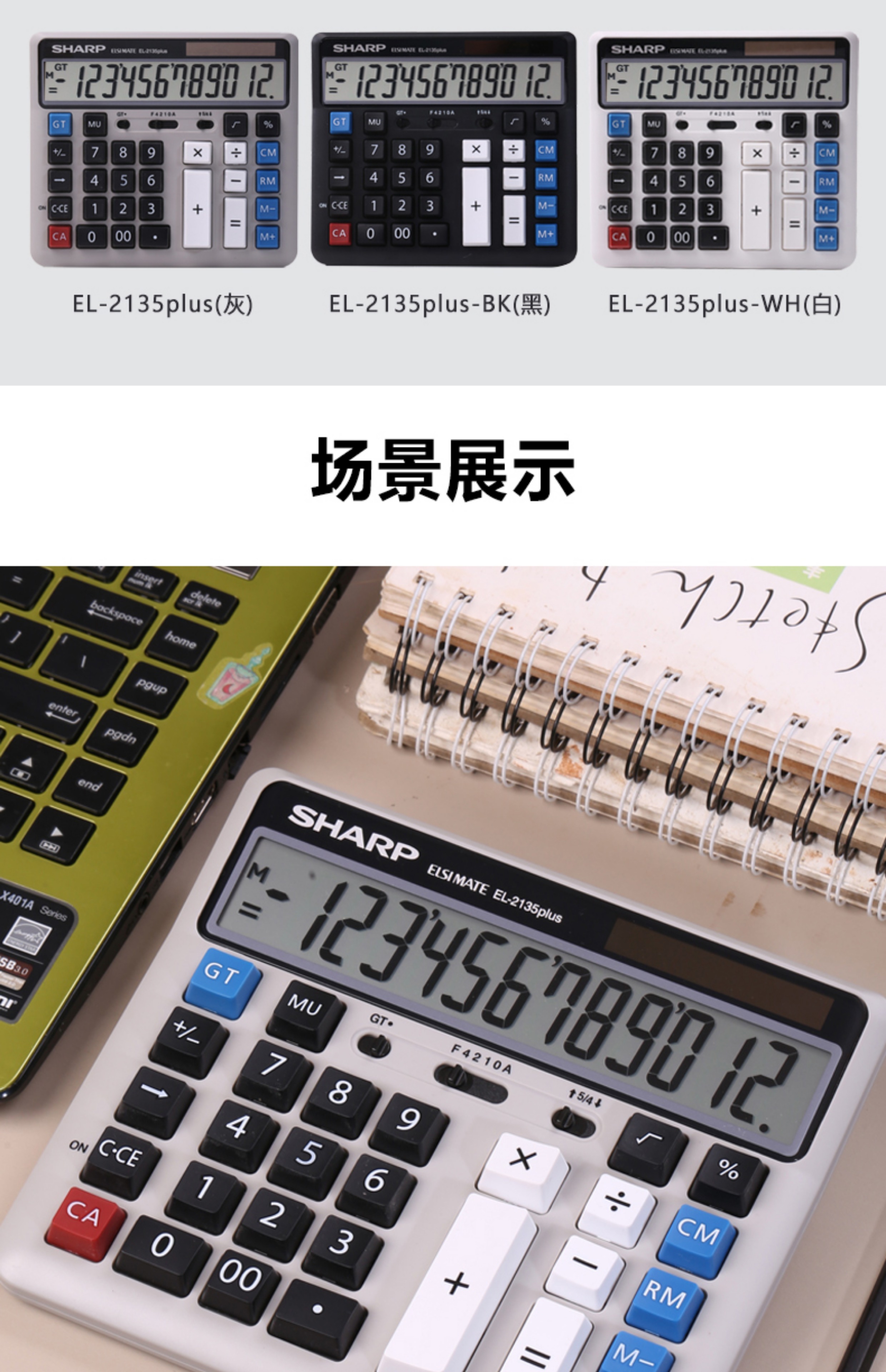 正品夏普EL-2135 plus银行财务会计办公 电脑按键大号桌面办公商务12位数太阳能电子计算机计算器包邮