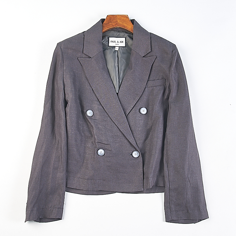 出口韩国品质棉麻西装短外套女48H82096春秋新款复古宽松长袖西服