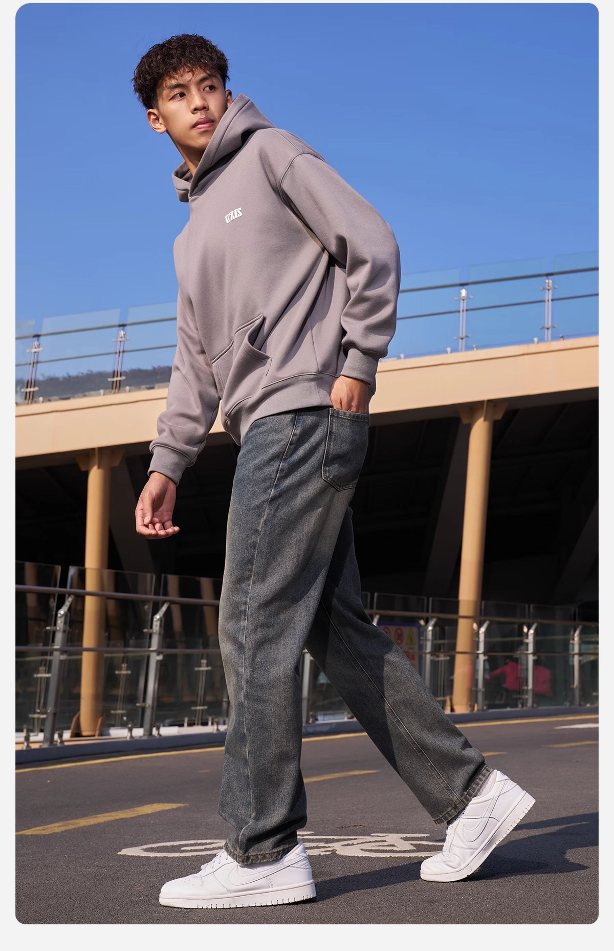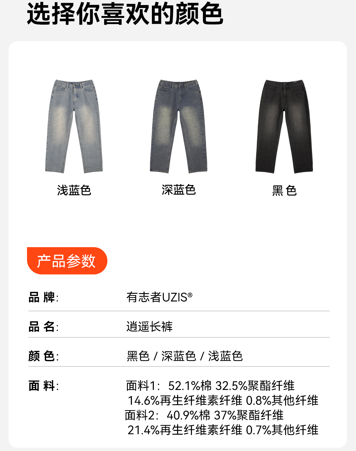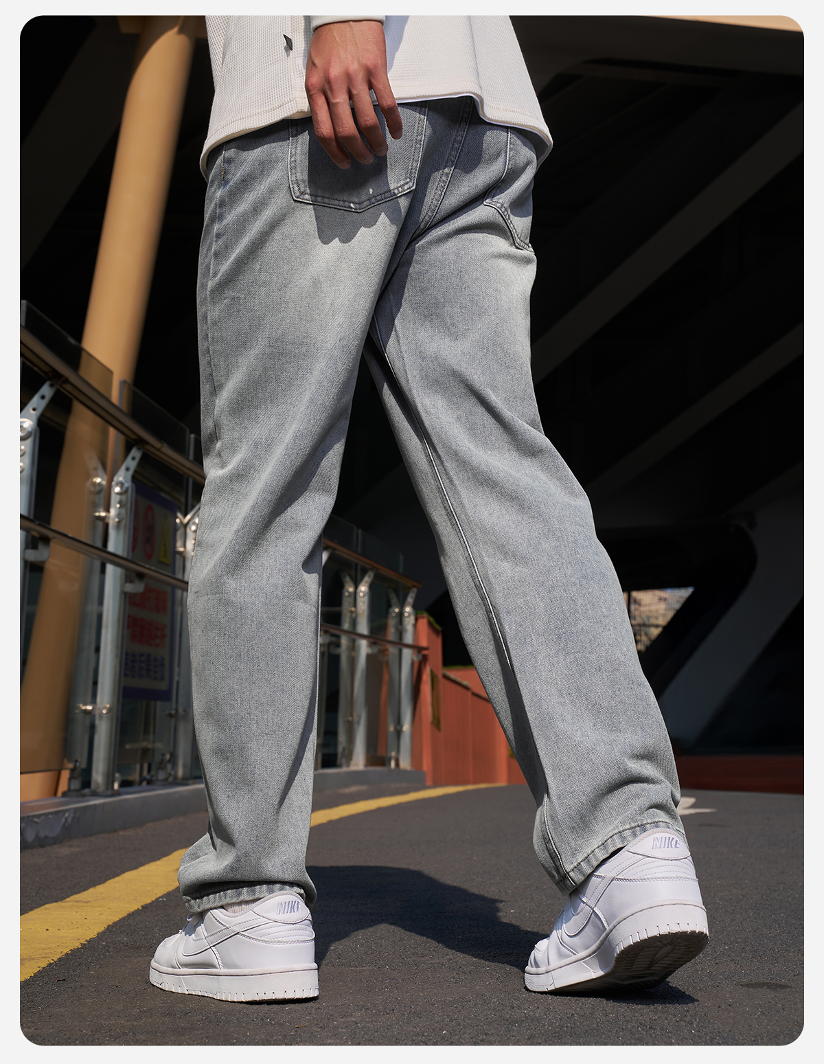 有志者UZIS复古水洗牛仔裤男美式休闲春夏宽松直筒百搭阔腿裤逍遥