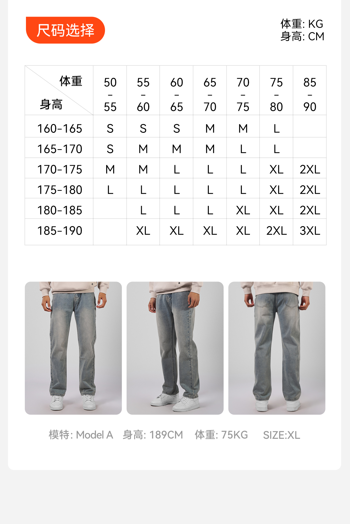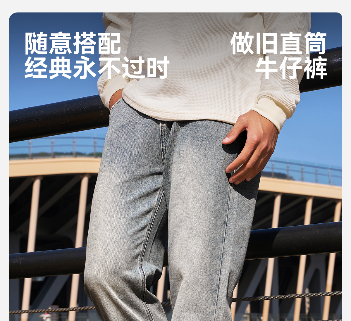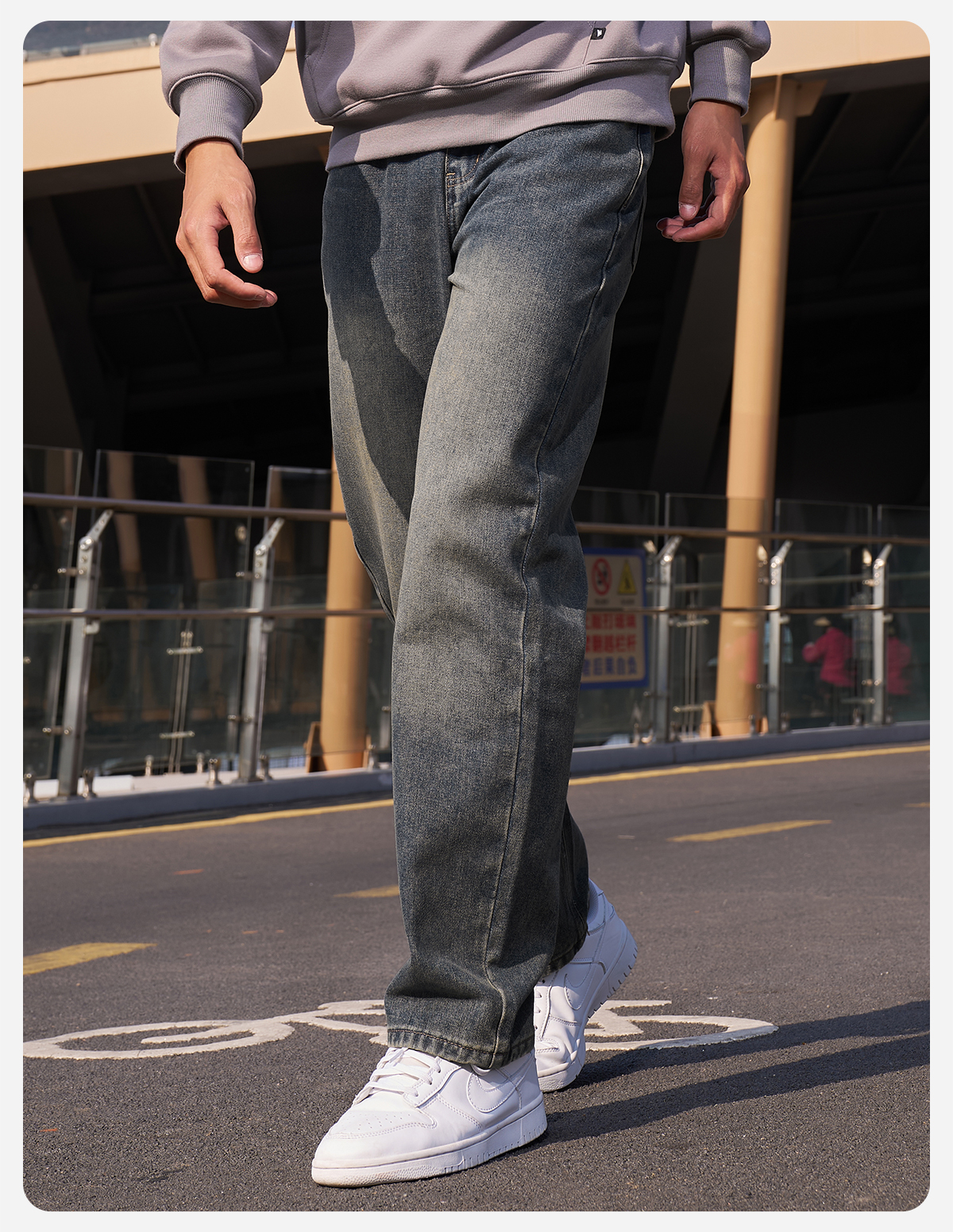有志者UZIS复古水洗牛仔裤男美式休闲春夏宽松直筒百搭阔腿裤逍遥