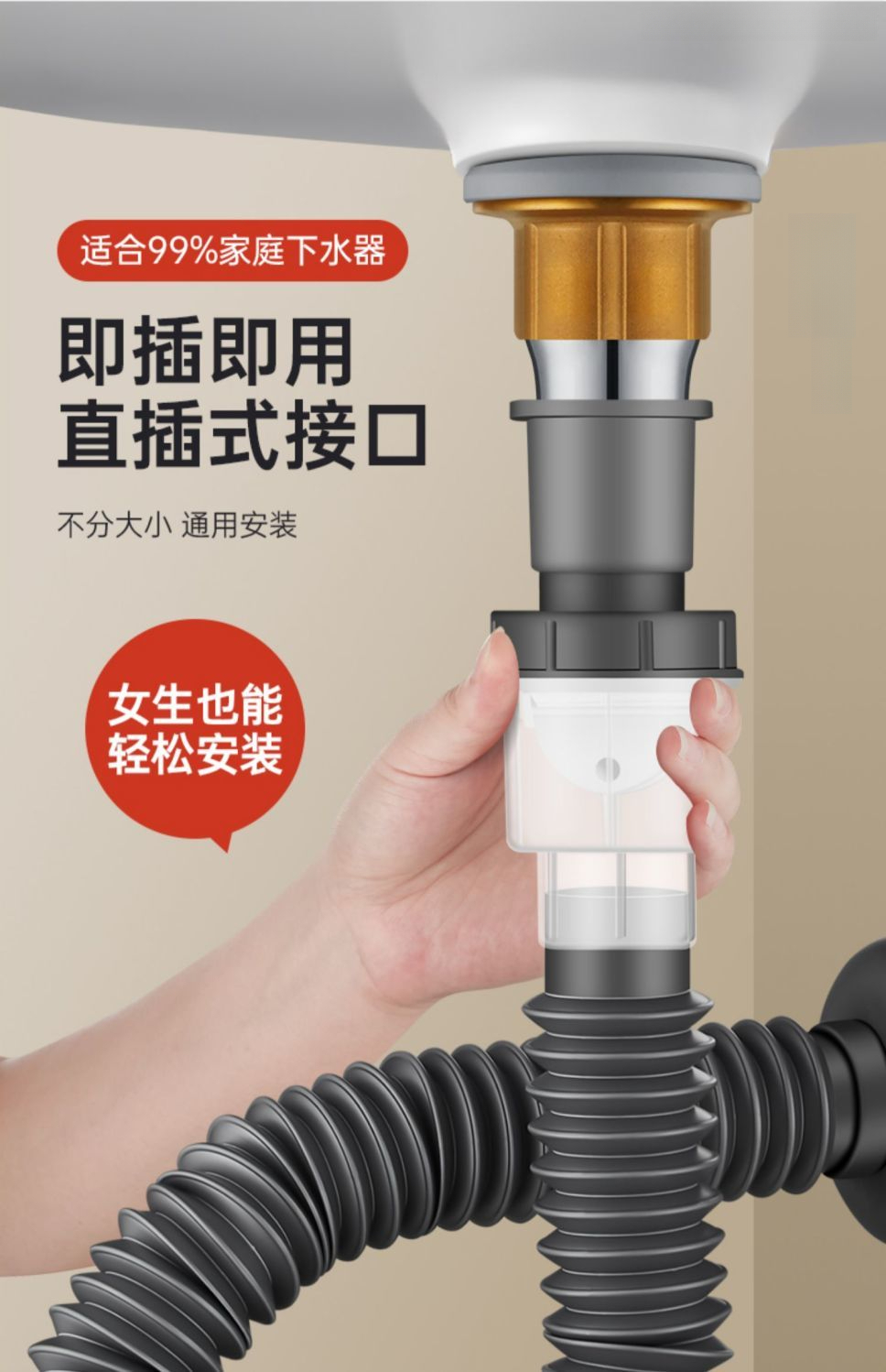 卫生间洗手盆下水管防返臭神器面盆洗手池排水管洗脸盆下水器配件