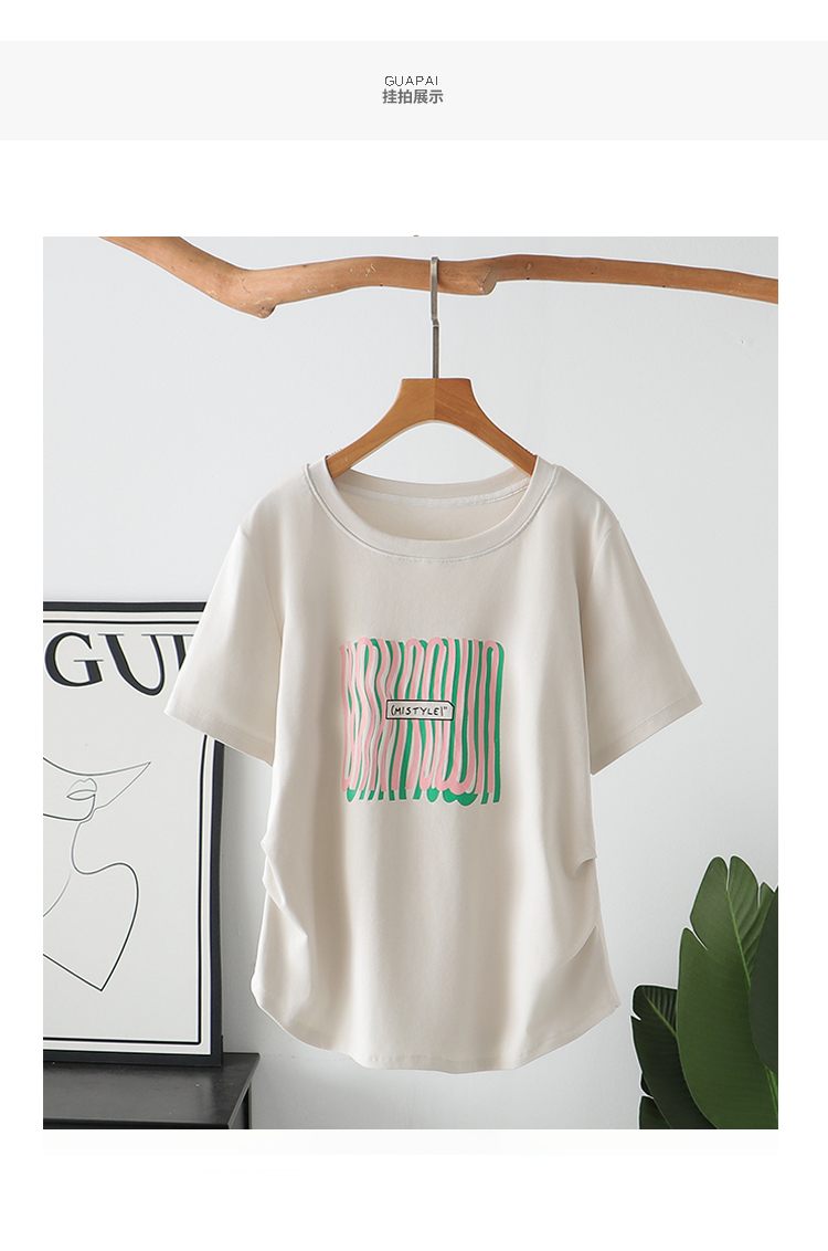 大码女装夏装2025新款休闲上衣胖mm收腰显瘦线条圆领短袖t恤200斤