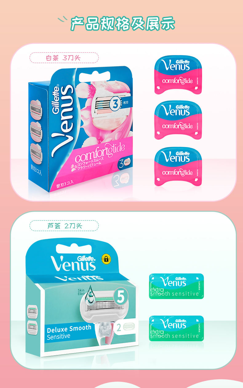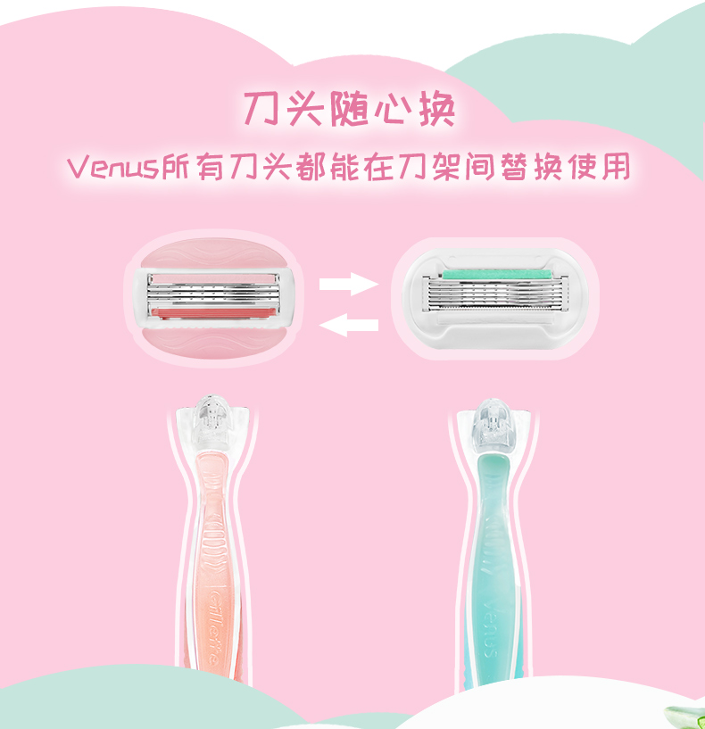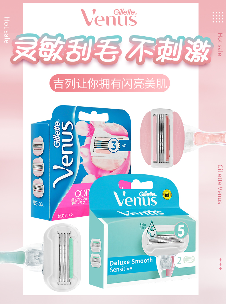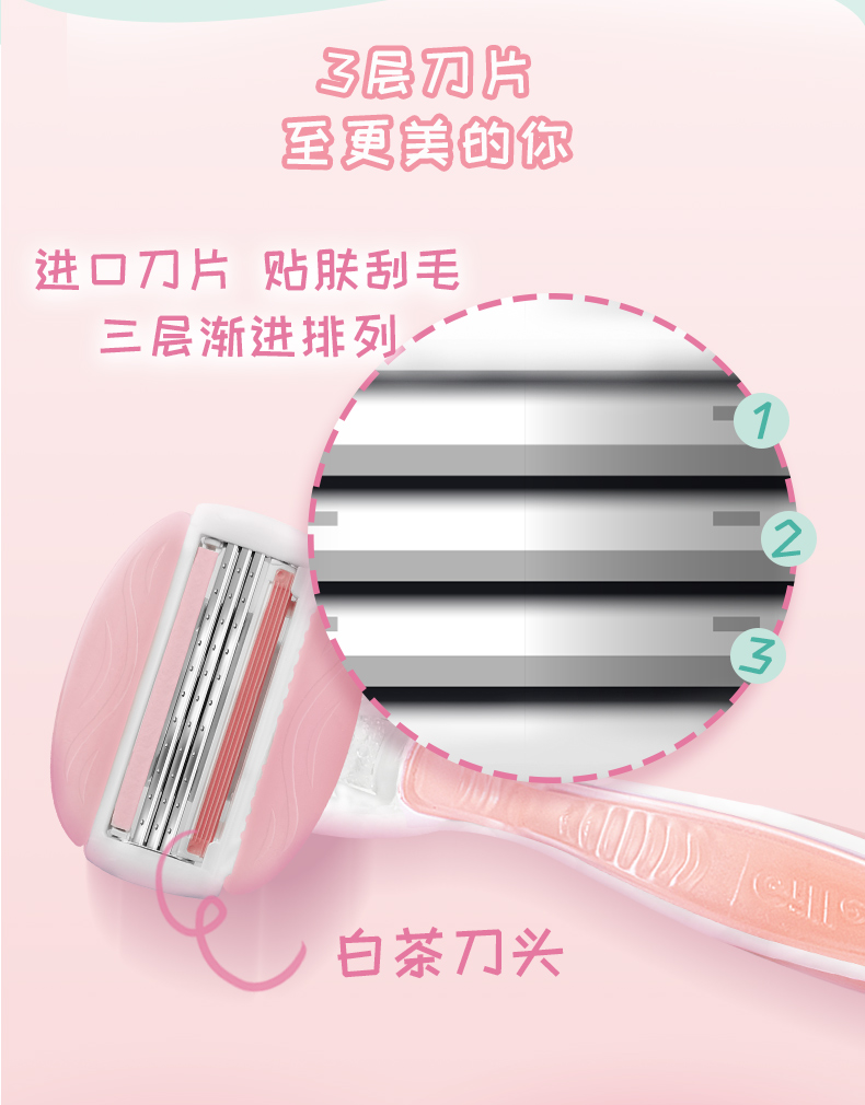 吉列剃毛刀三层刀片女脱除刮毛刀头腋毛腿毛吉列剃须刀手动剃毛器