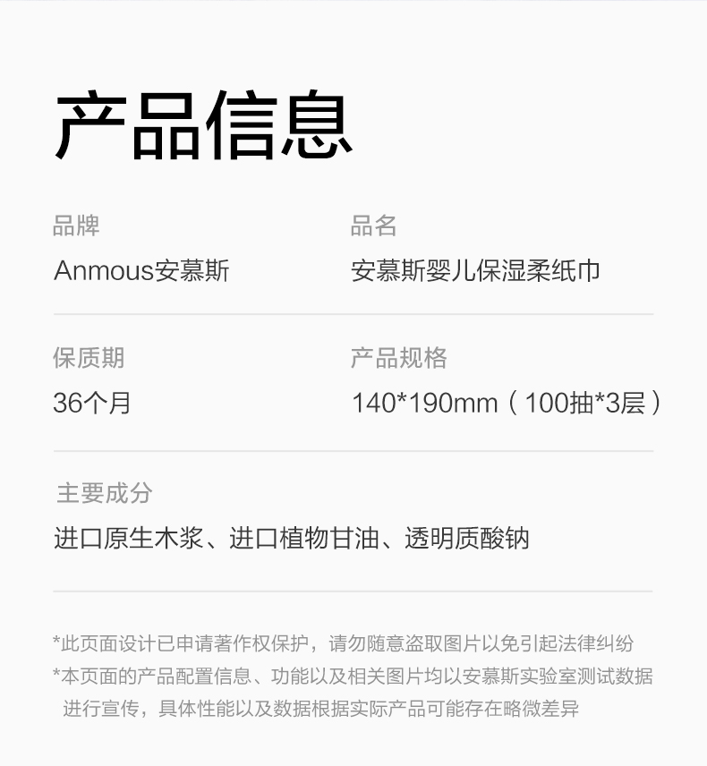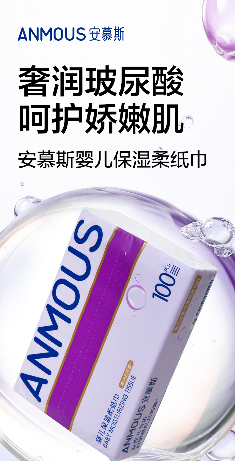 安慕斯柔纸巾乳霜纸云柔巾保湿抽纸玻尿酸100抽x3包婴儿宝宝专用