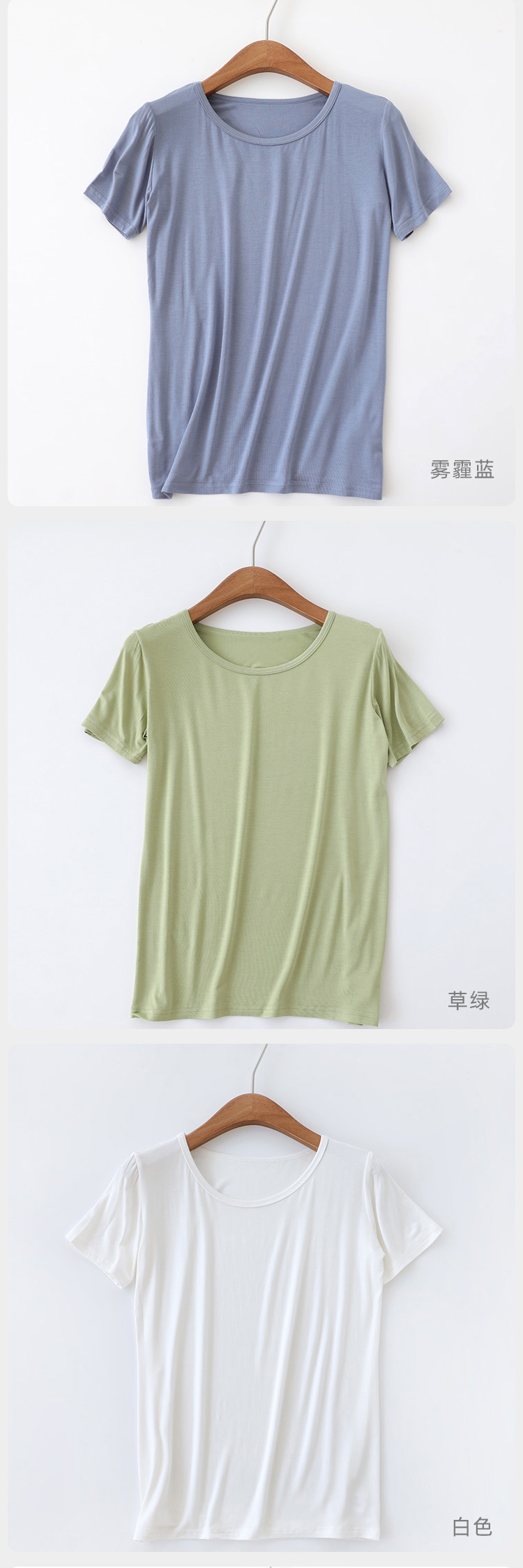 莫代尔短袖t恤女宽松夏季圆领简约打底衫韩版纯色女士大码白色