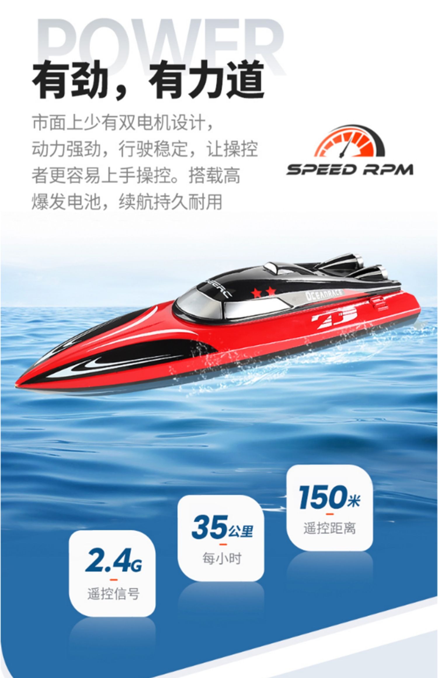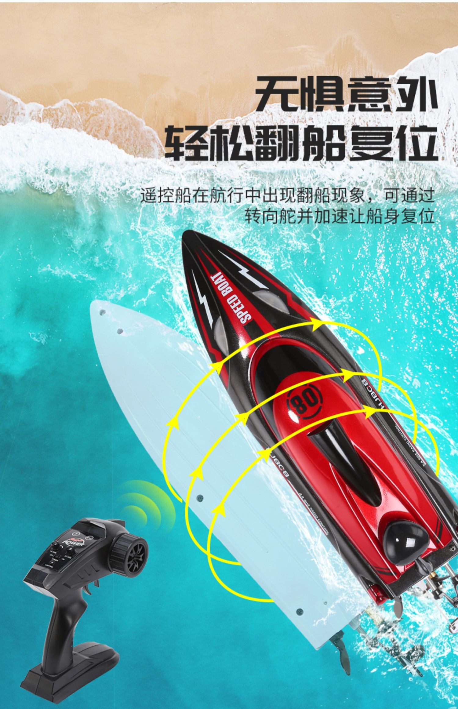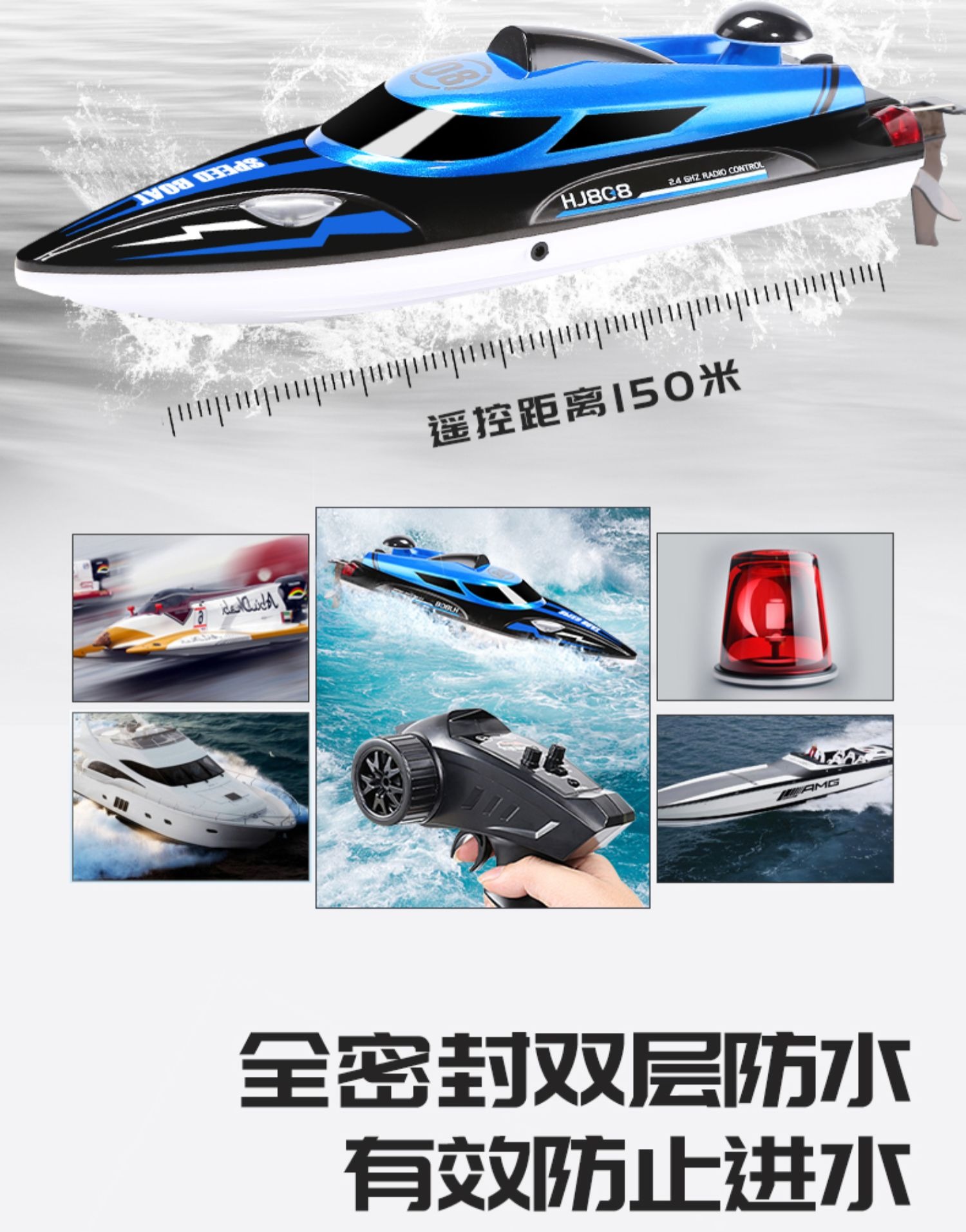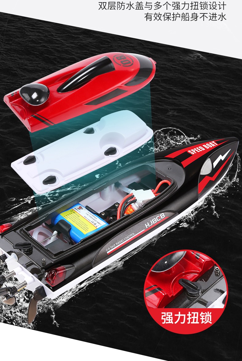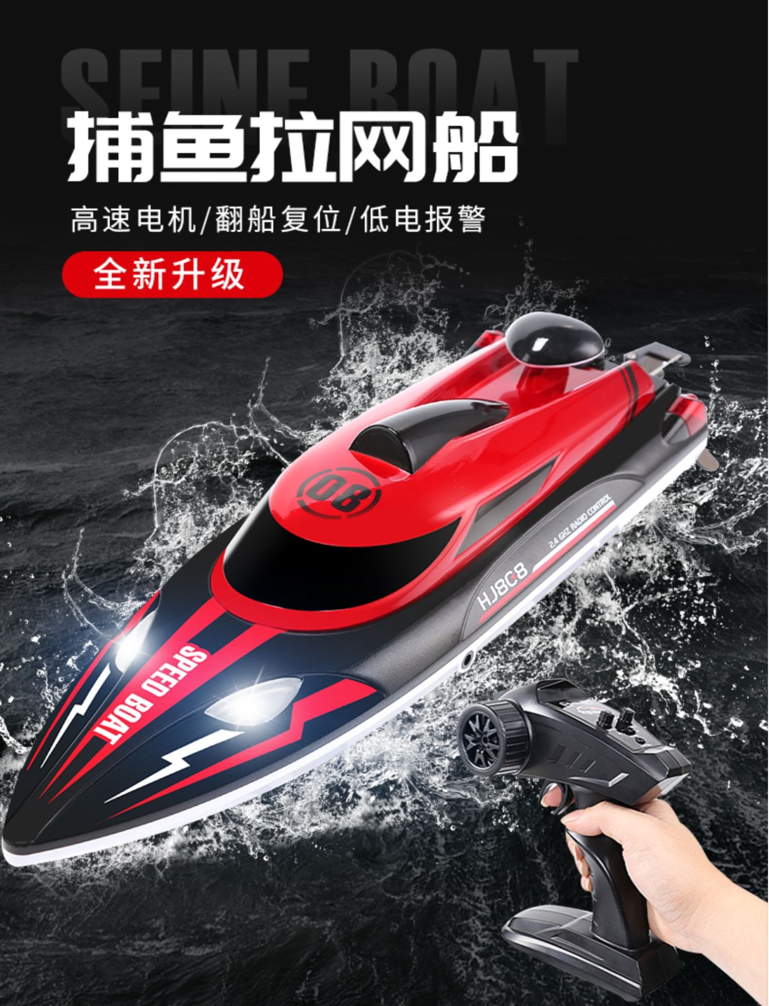 遥控船高速快艇大马力防水上电动可下水拉网轮船模型儿童男孩玩具