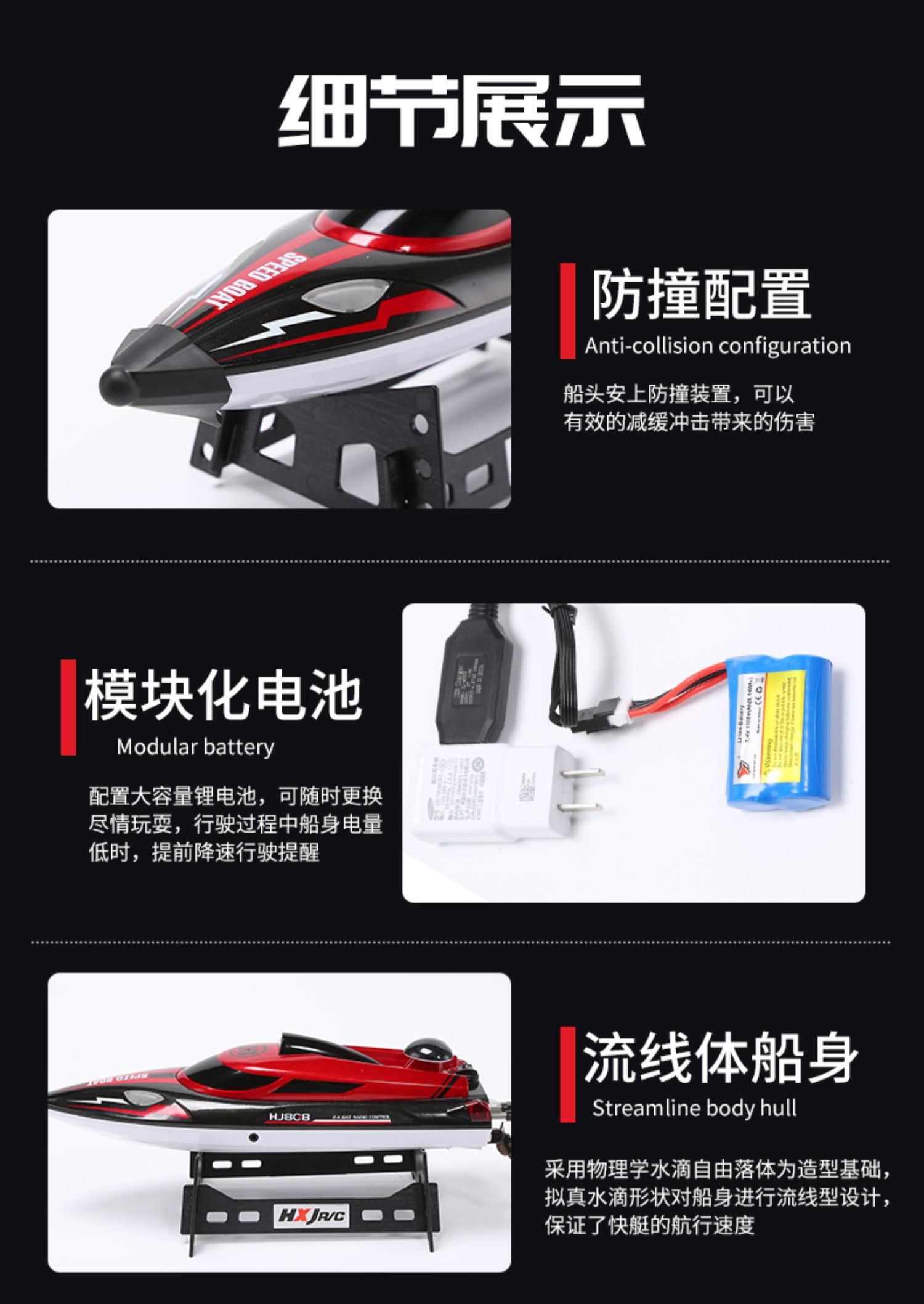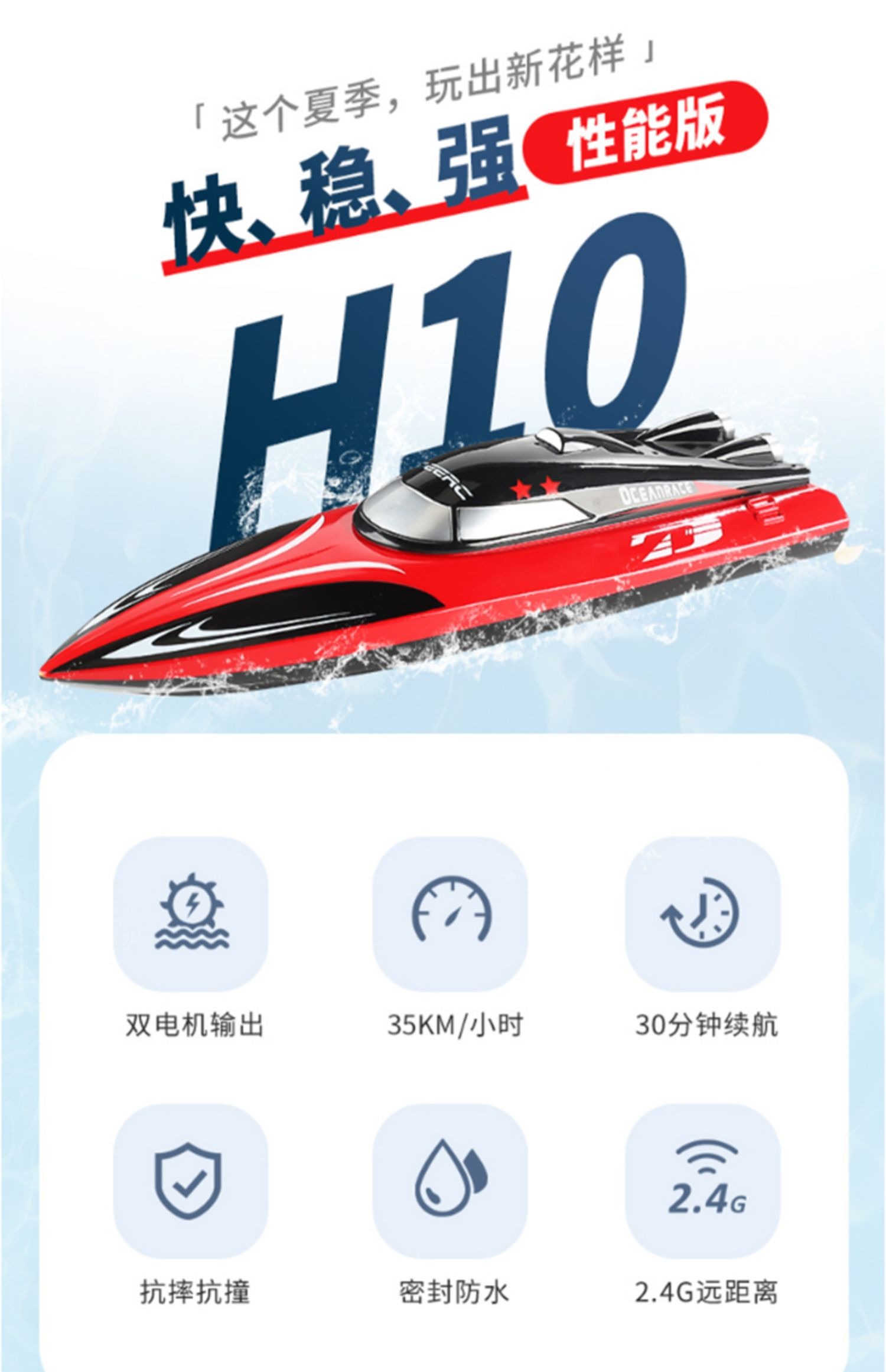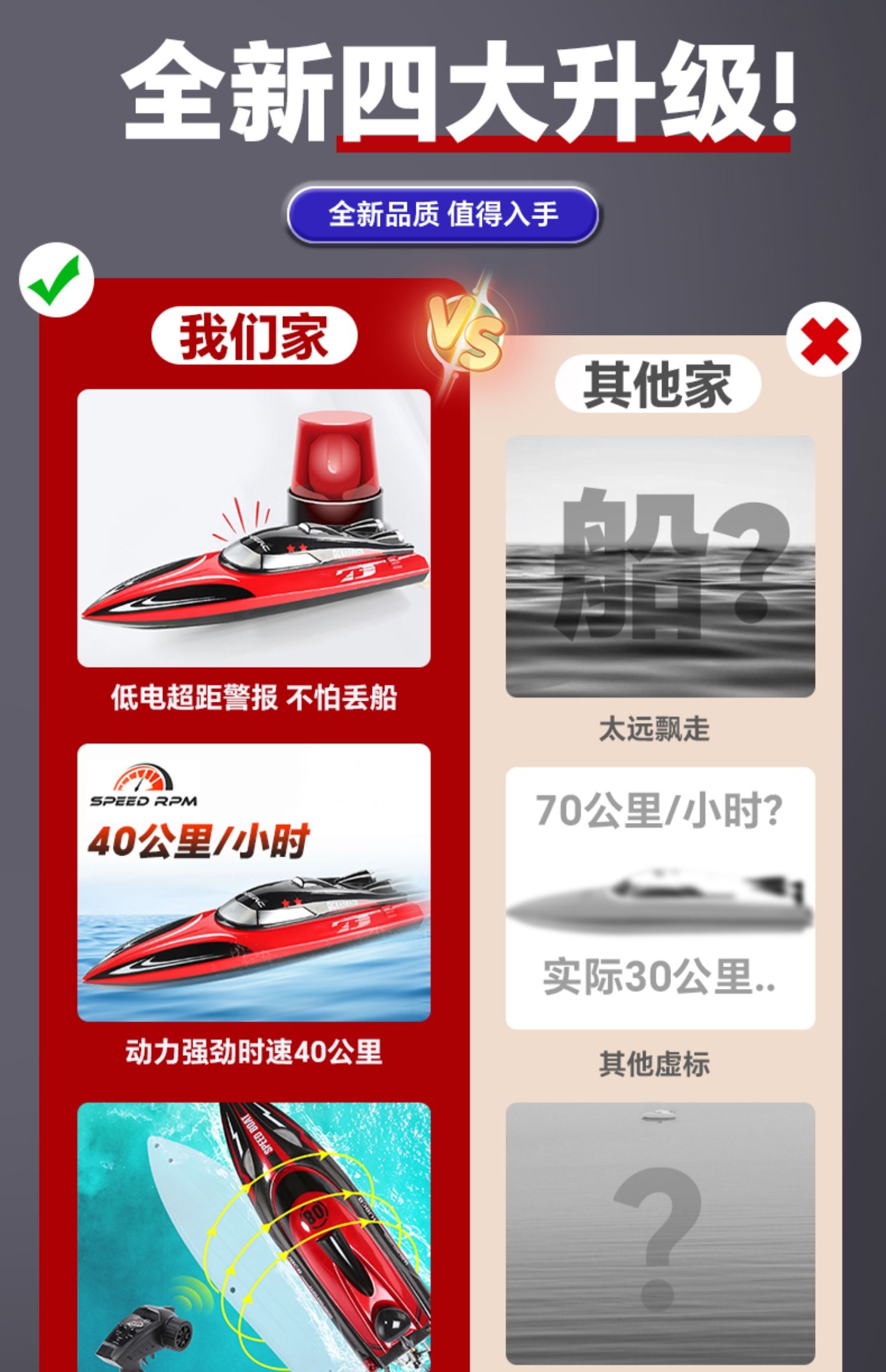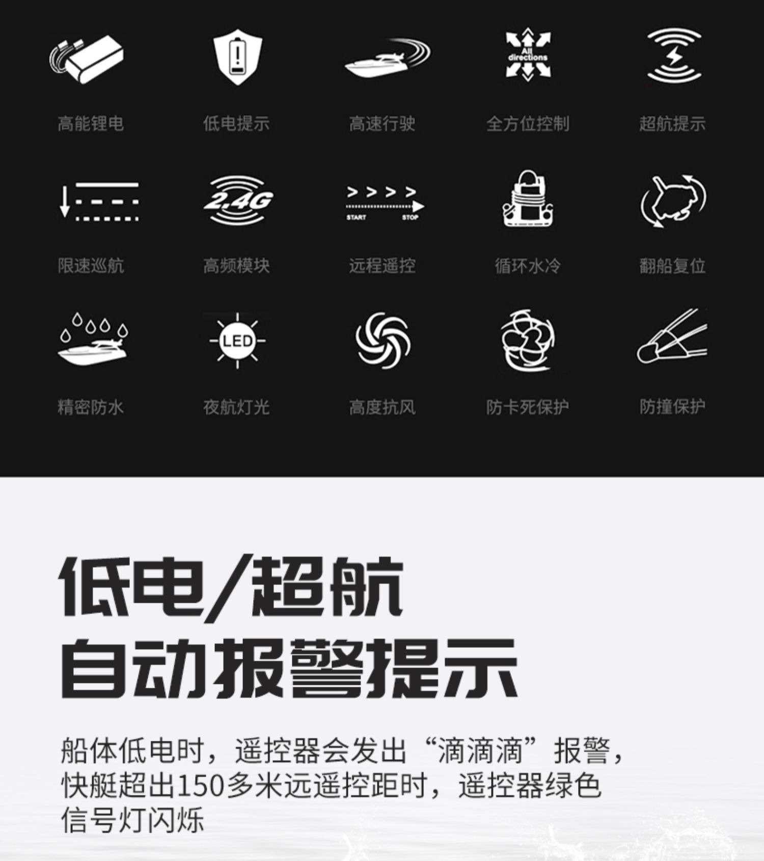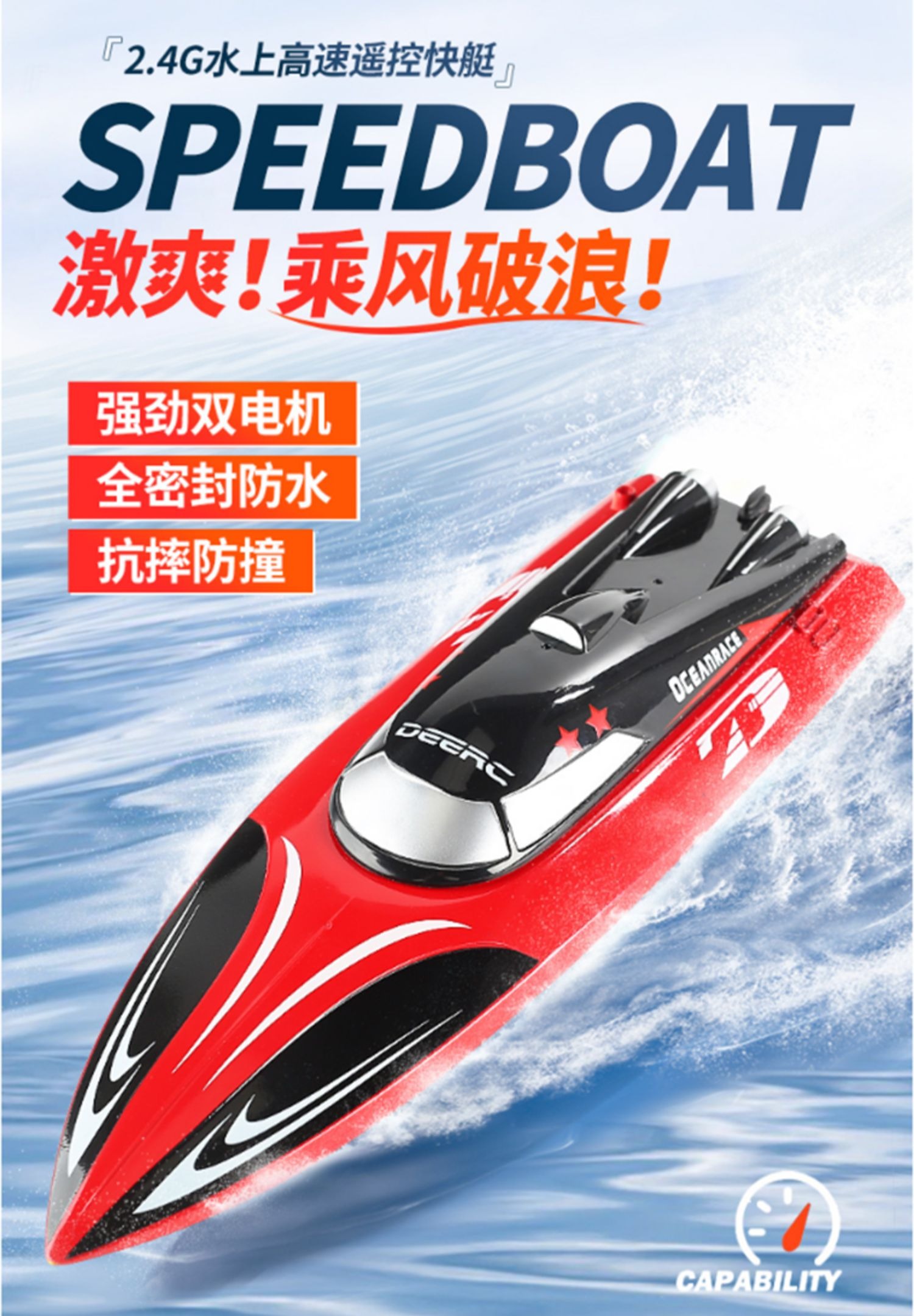 遥控船高速快艇大马力防水上电动可下水拉网轮船模型儿童男孩玩具