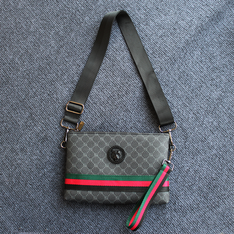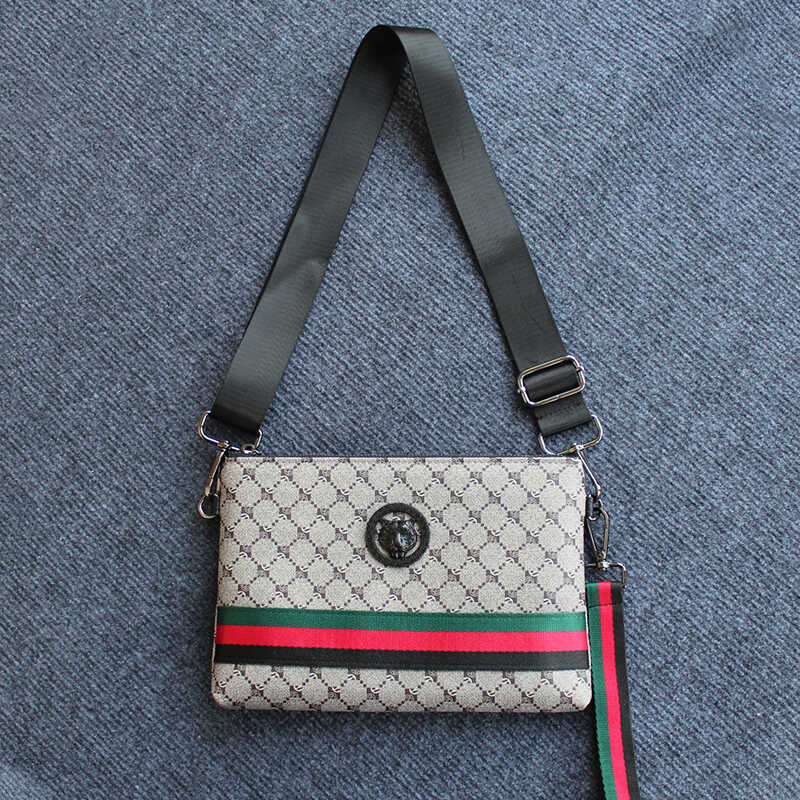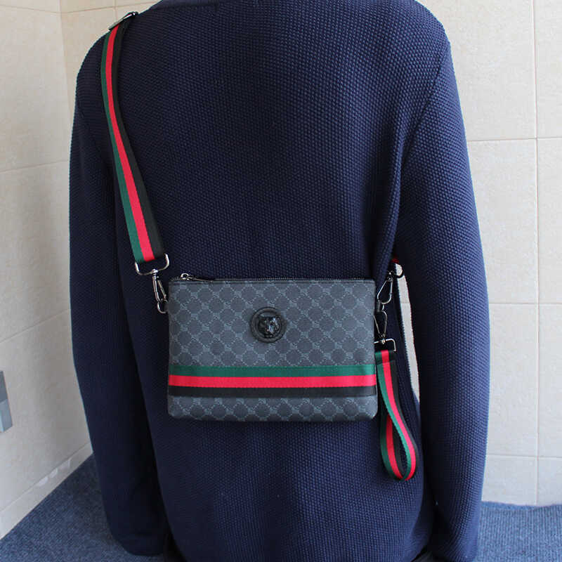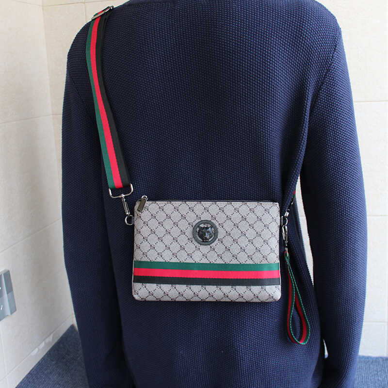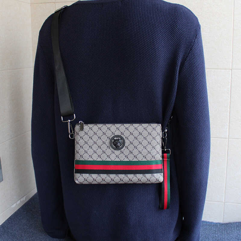 虎头斜挎包多功能手拿背包男士个性条纹单肩包信封包薄款软皮男女