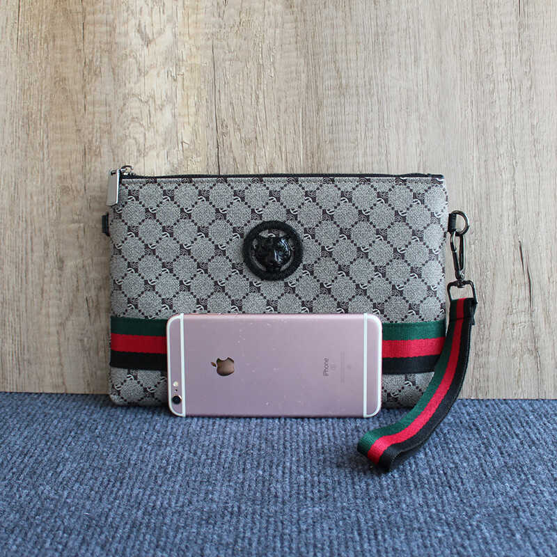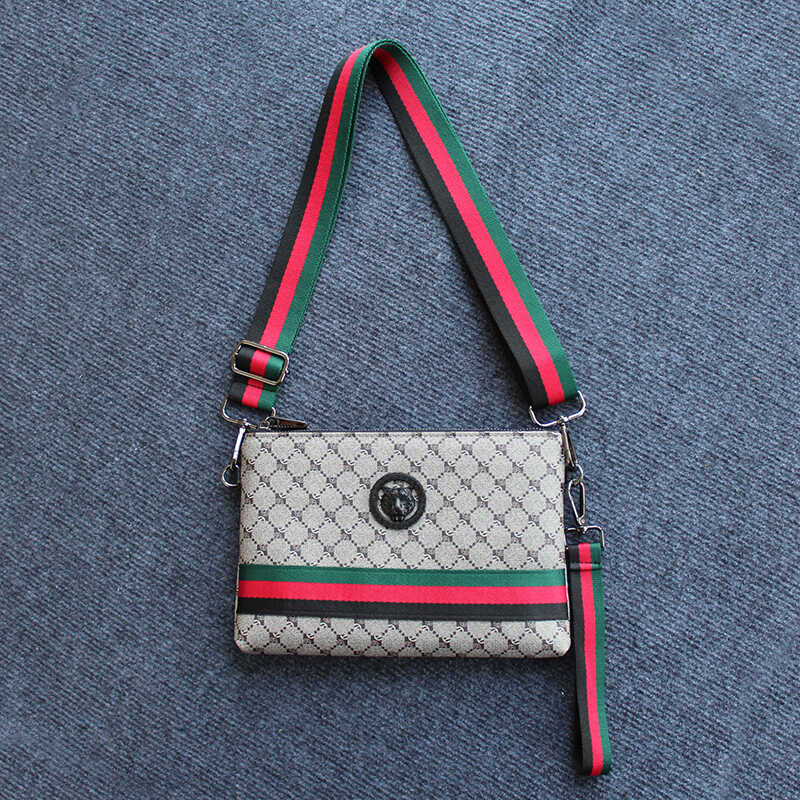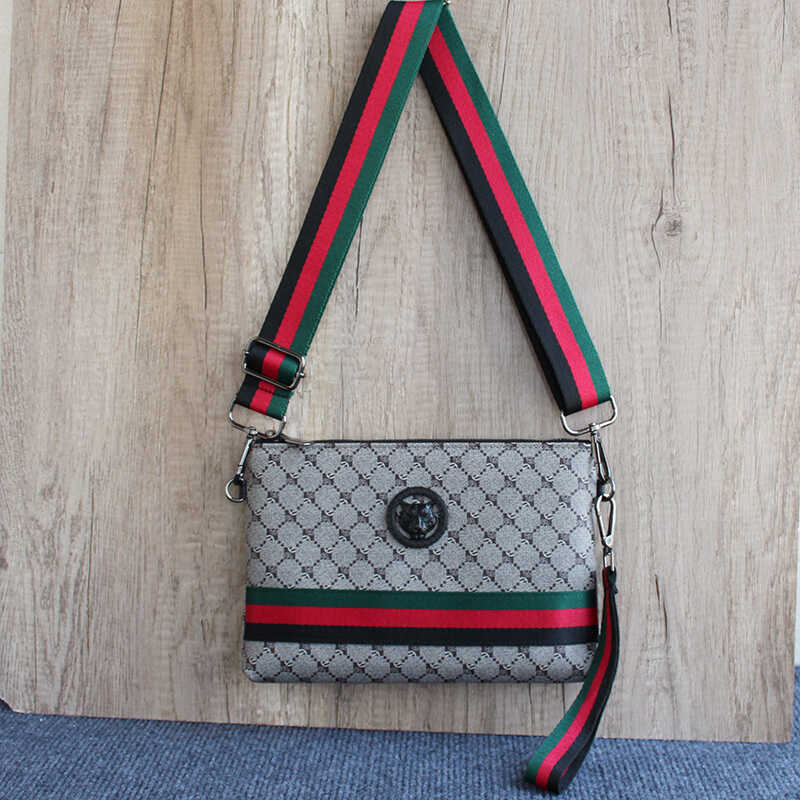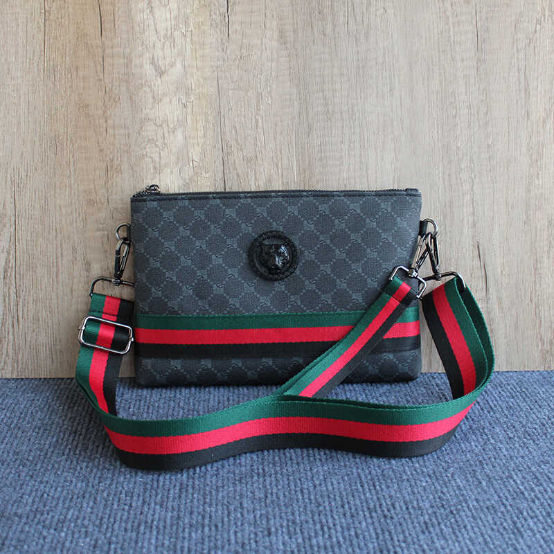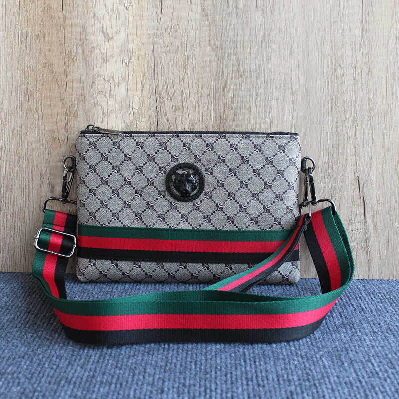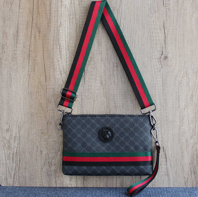 虎头斜挎包多功能手拿背包男士个性条纹单肩包信封包薄款软皮男女