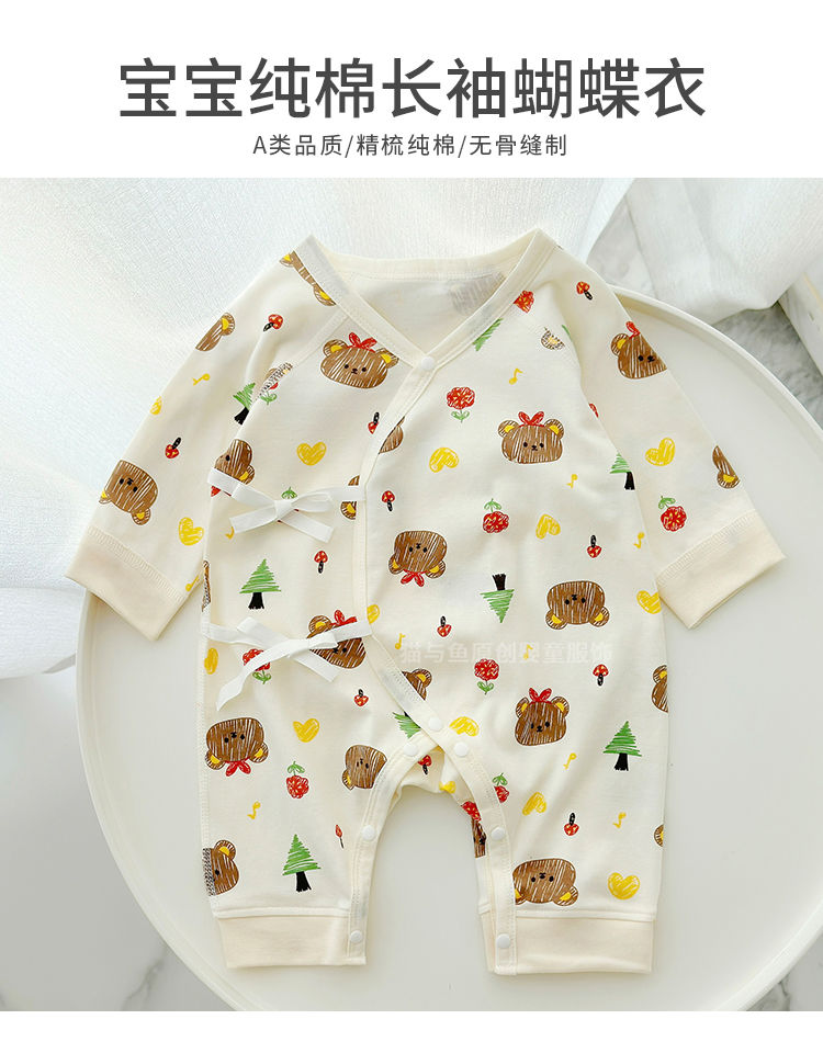 2025新款男童无骨蝴蝶衣宝宝新生儿纯棉爬服连体衣婴儿春秋装哈衣