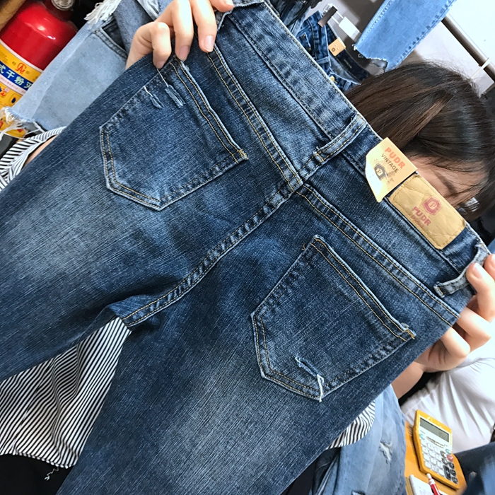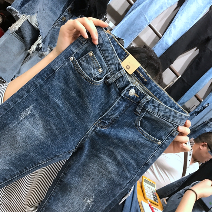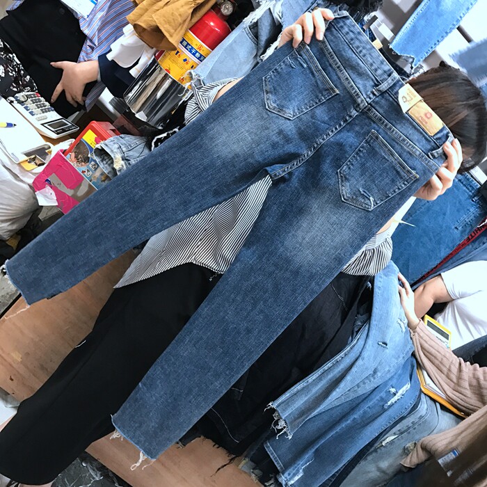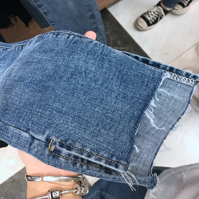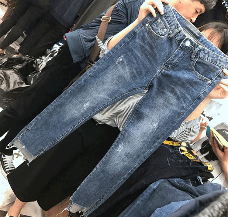 大码女装200斤网红九分牛仔裤女胖MM打底裤外穿高腰破洞小脚裤子
