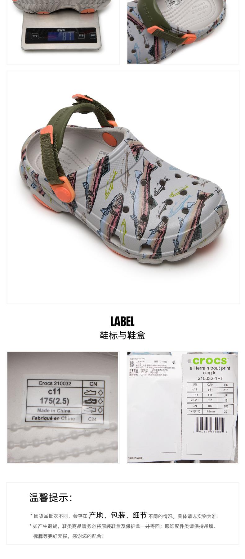 卡骆驰儿童洞洞鞋大童经典特林印花小Clog户外沙滩鞋运动拖鞋凉鞋