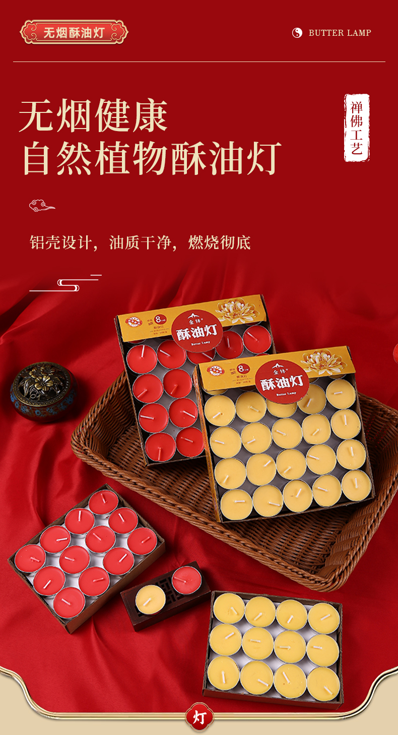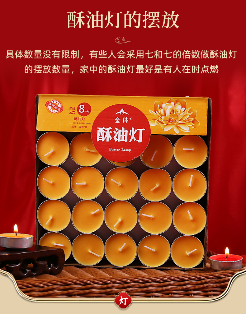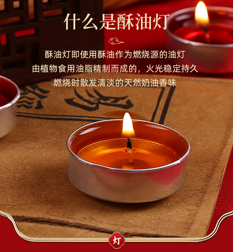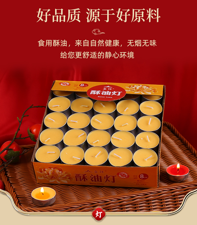 酥油灯4小时100粒供佛酥油蜡烛长明灯家用无烟无味灯芯煮茶植物