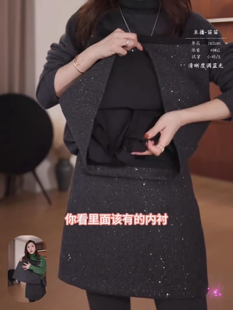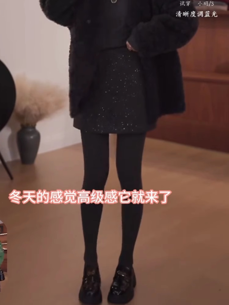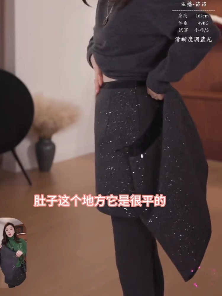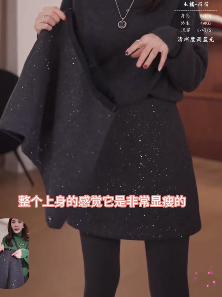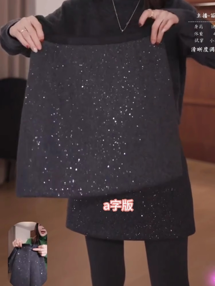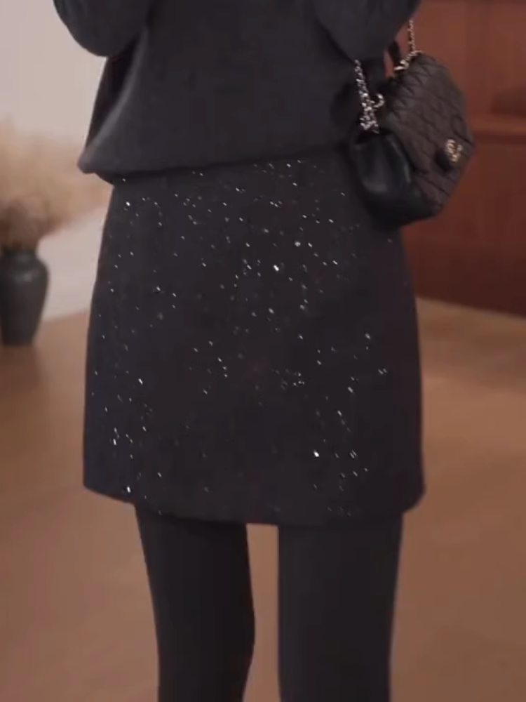 韩系百搭通勤亮片半身裙2024年冬季厚款梨形高腰显瘦宽松A字短裙