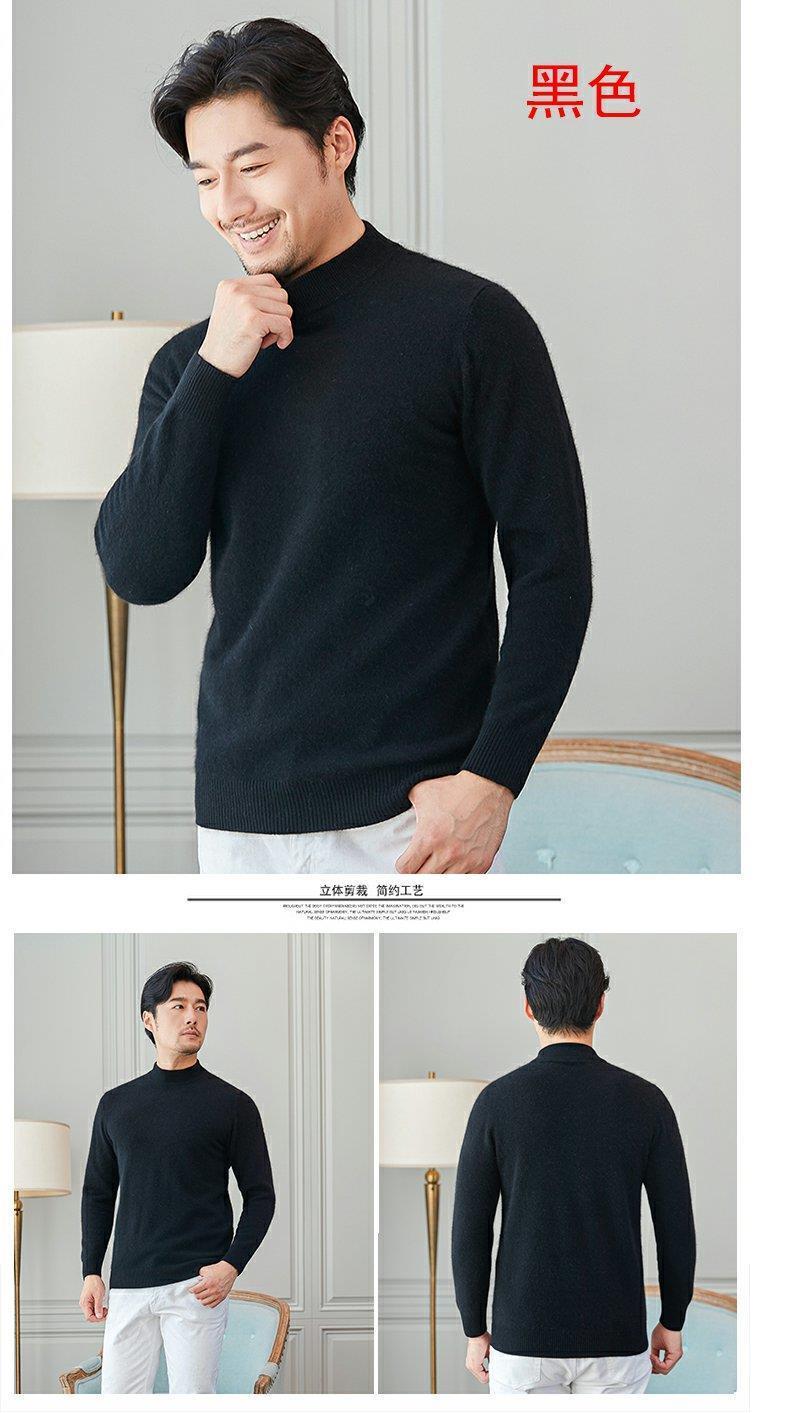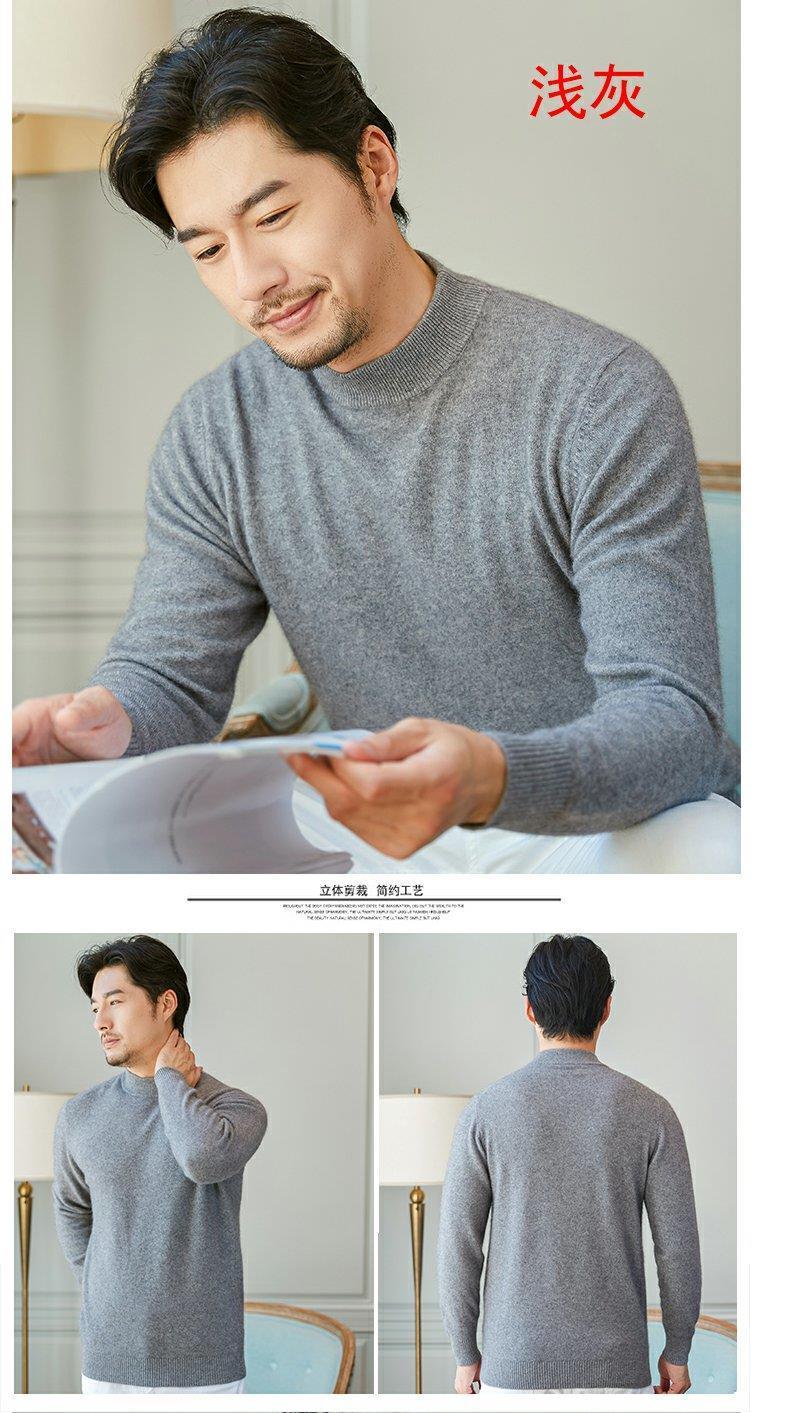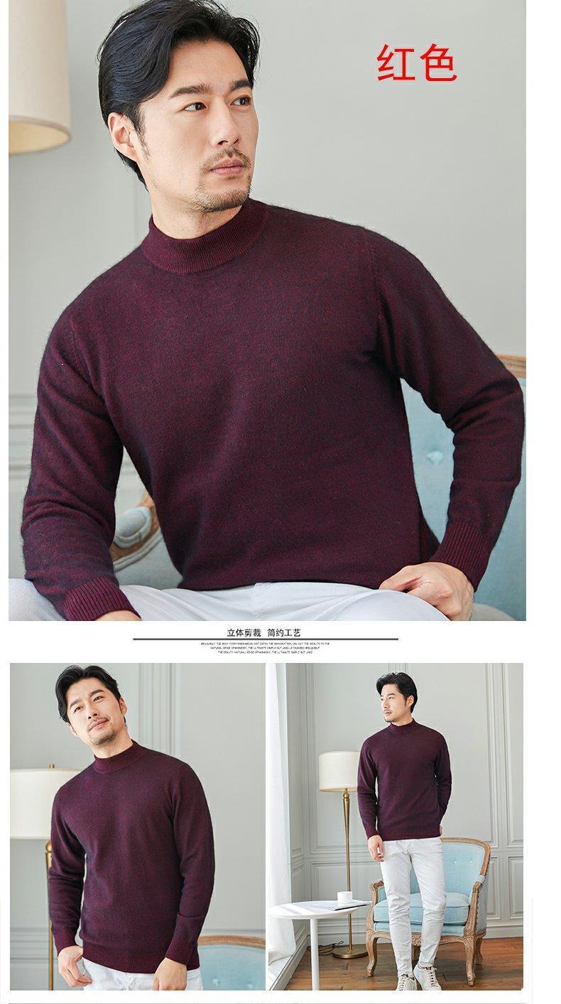 鄂尔多斯市男士加厚羊毛衫半高领打底针织衫圆领羊毛衫爸爸装毛衣