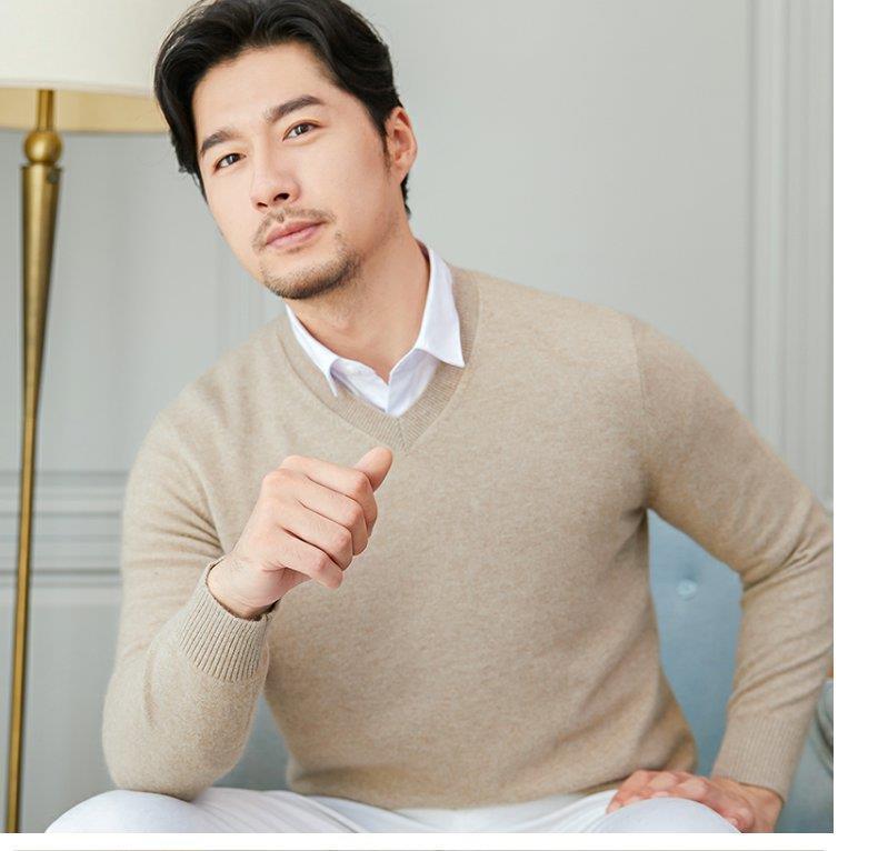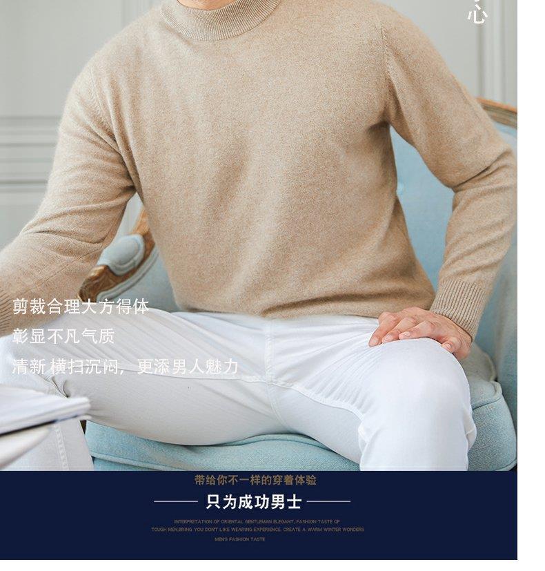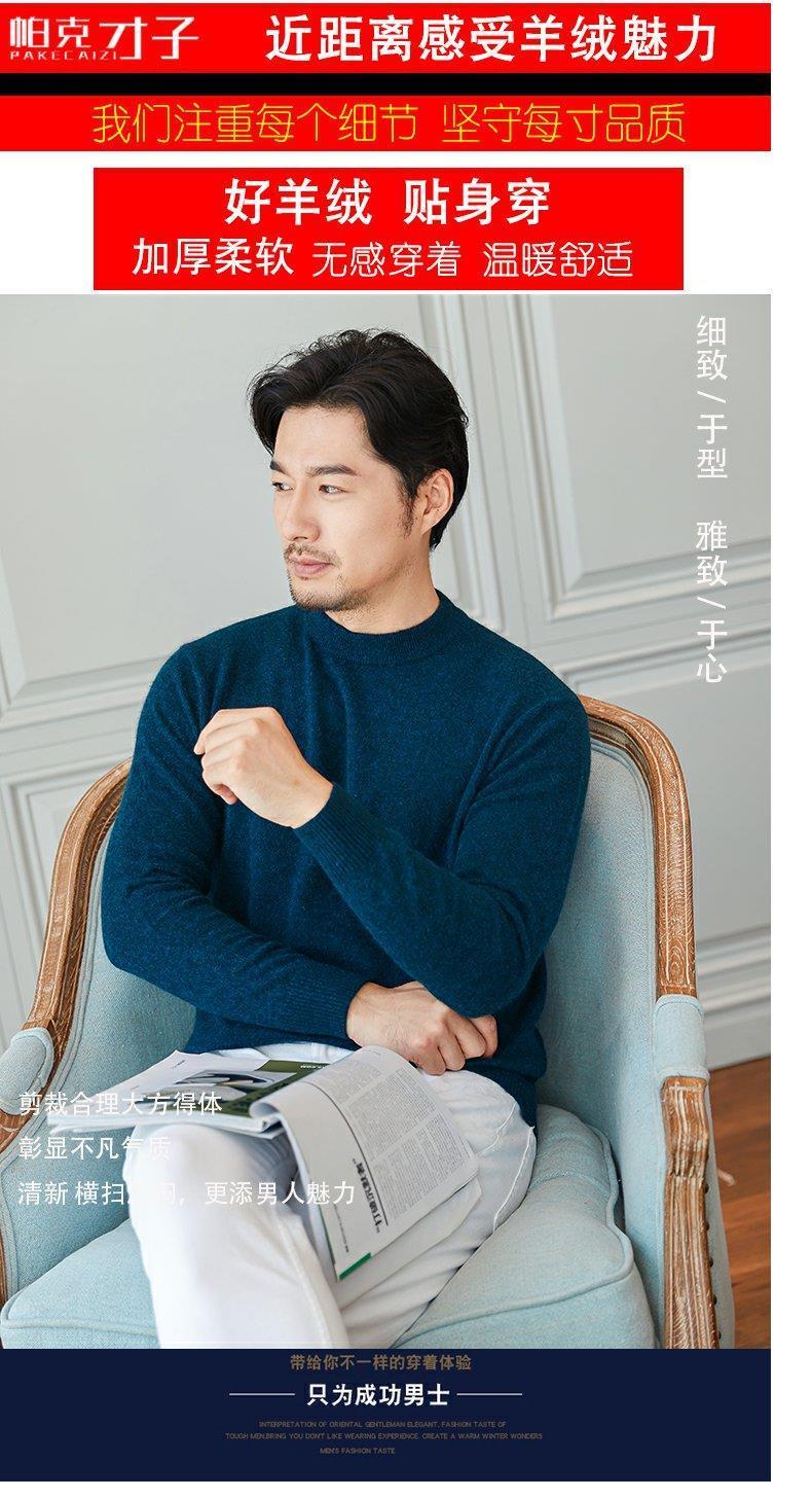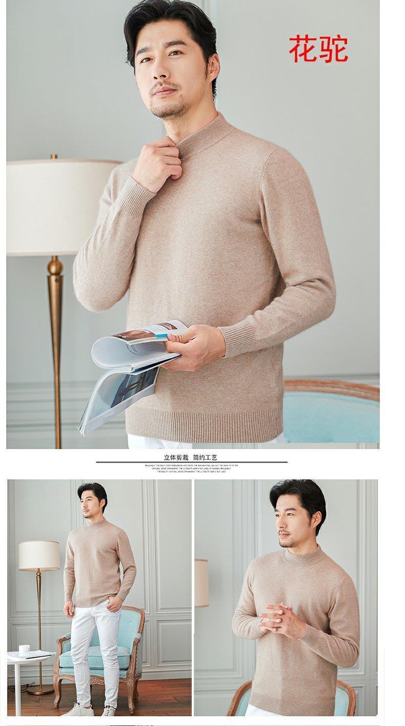 鄂尔多斯市男士加厚羊毛衫半高领打底针织衫圆领羊毛衫爸爸装毛衣