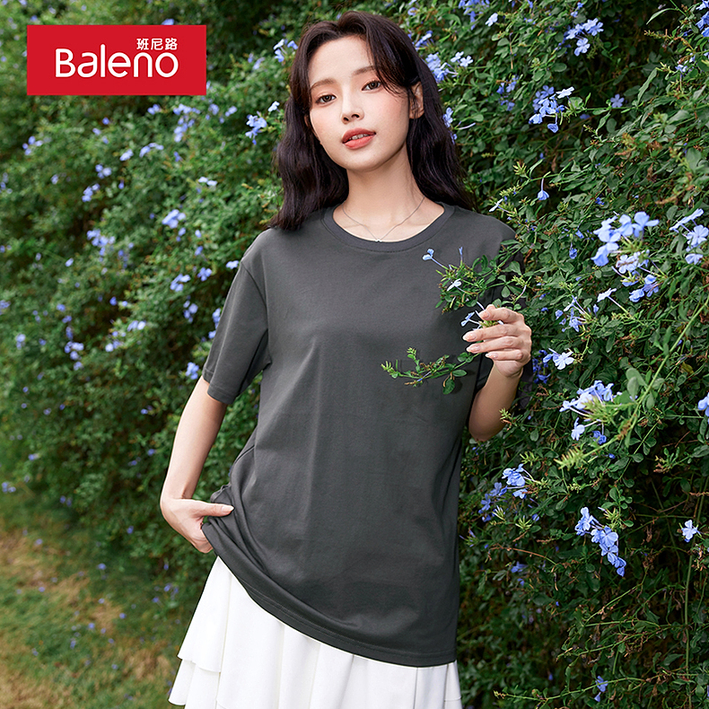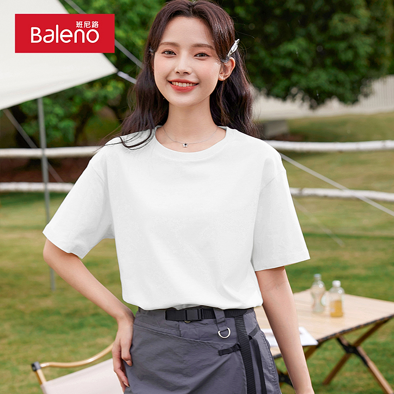 班尼路S&K系列美式短袖t恤女纯棉夏季2025新款宽松打底慵懒上衣H
