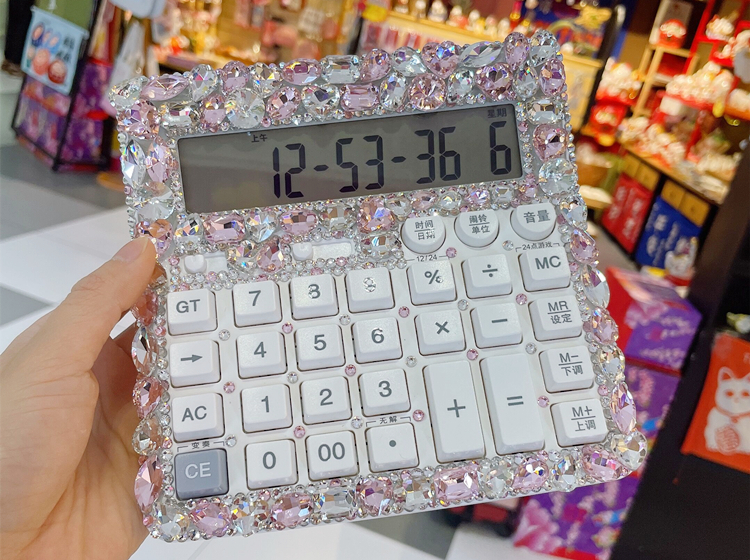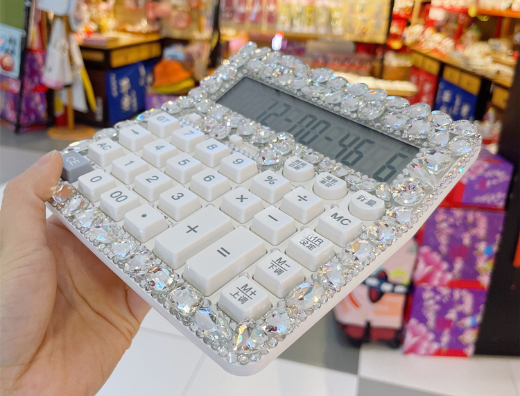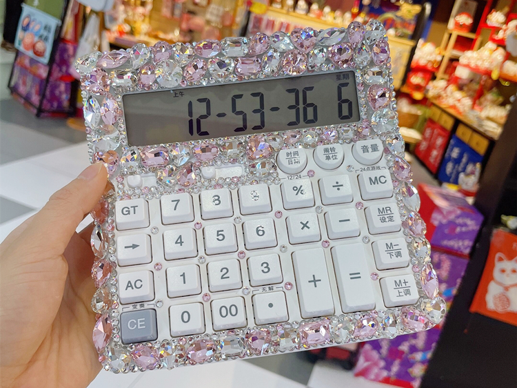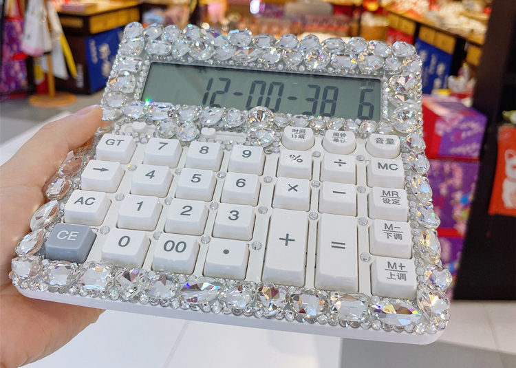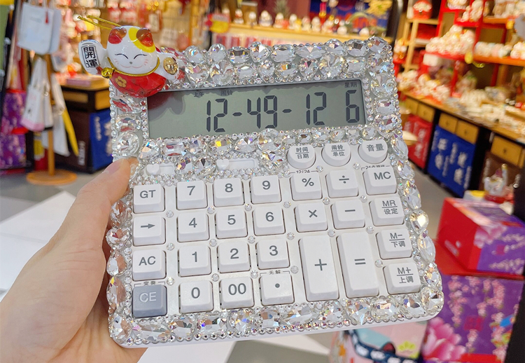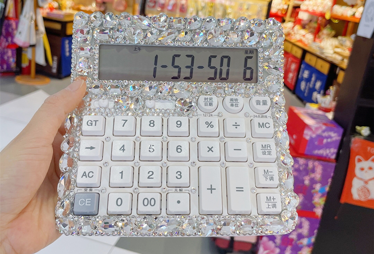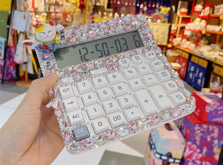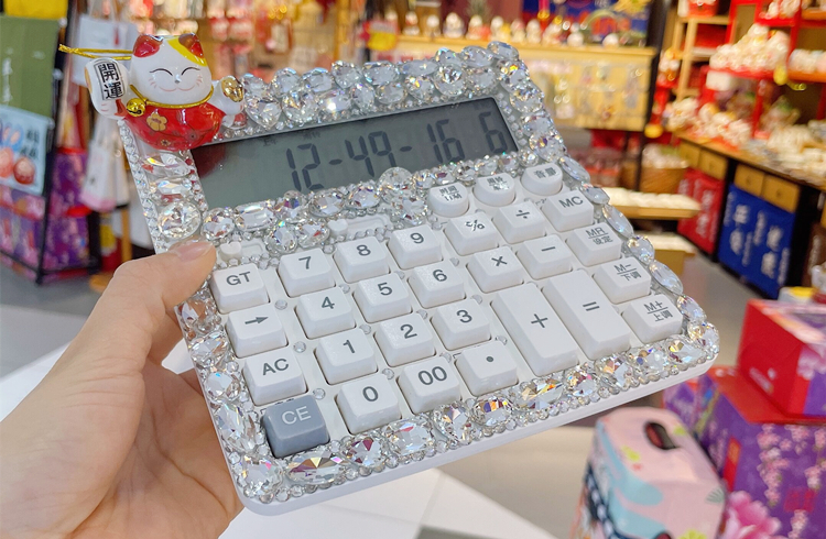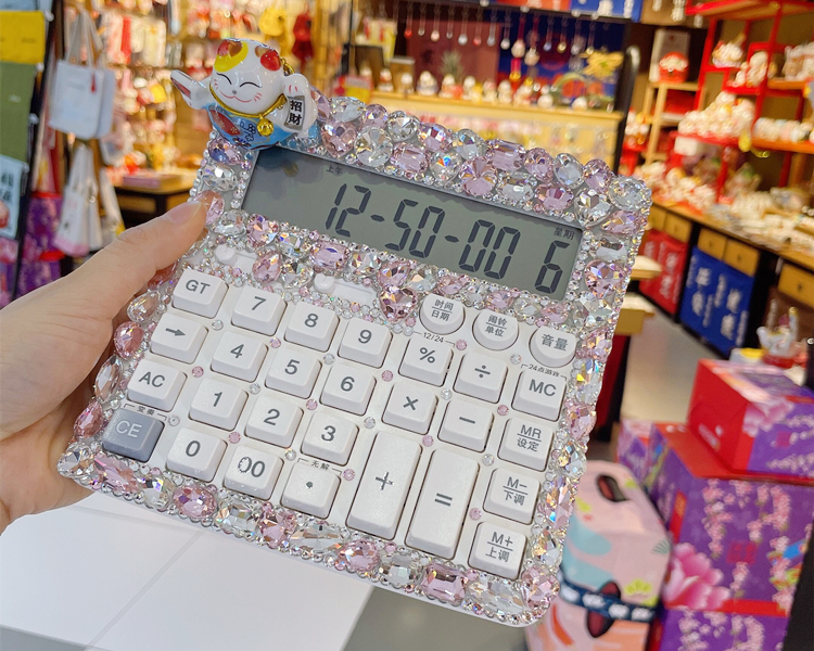 包邮 白色大号招财猫计算器镶钻带钻水钻语音计算机银行会计专用