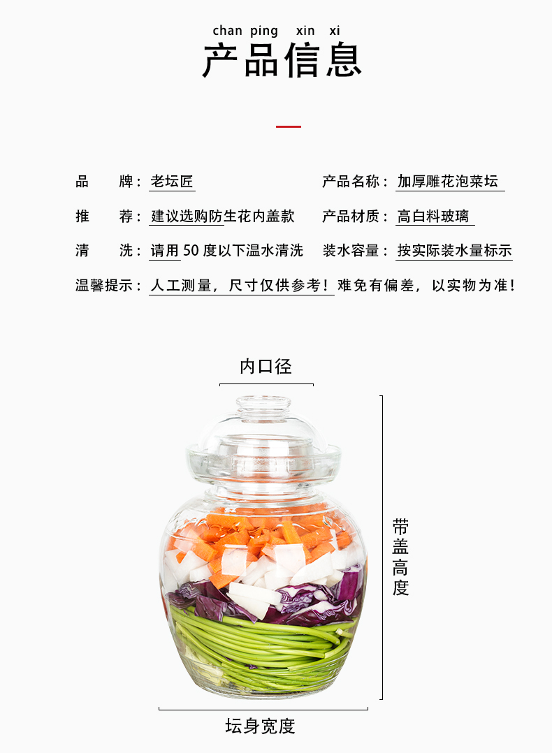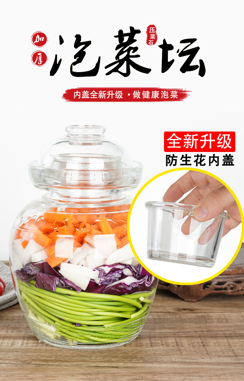 泡菜坛子家用玻璃加厚腌菜罐酸菜缸密封腌菜罐子四川咸菜罐带内盖