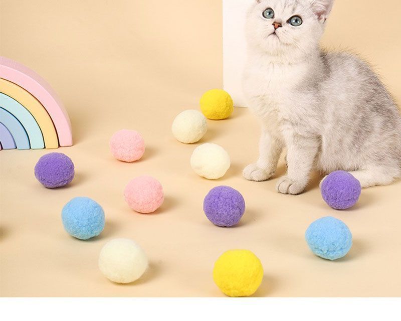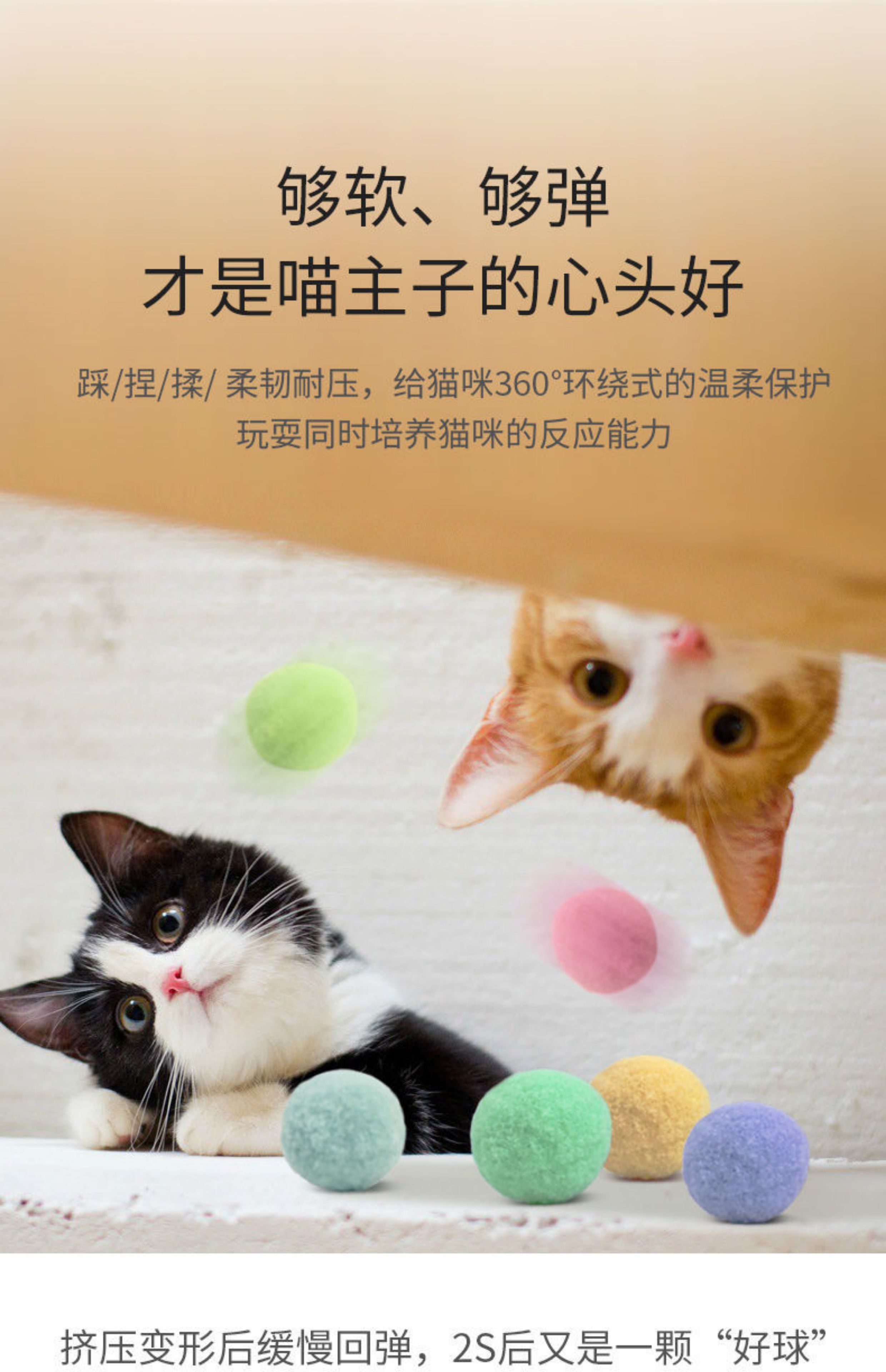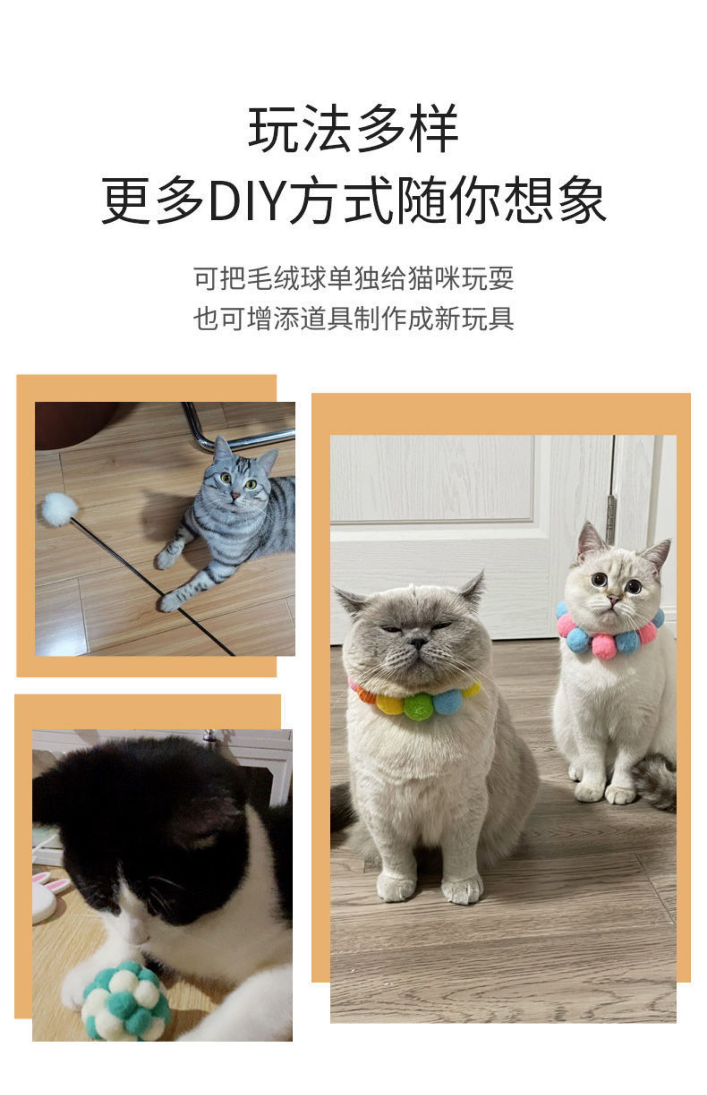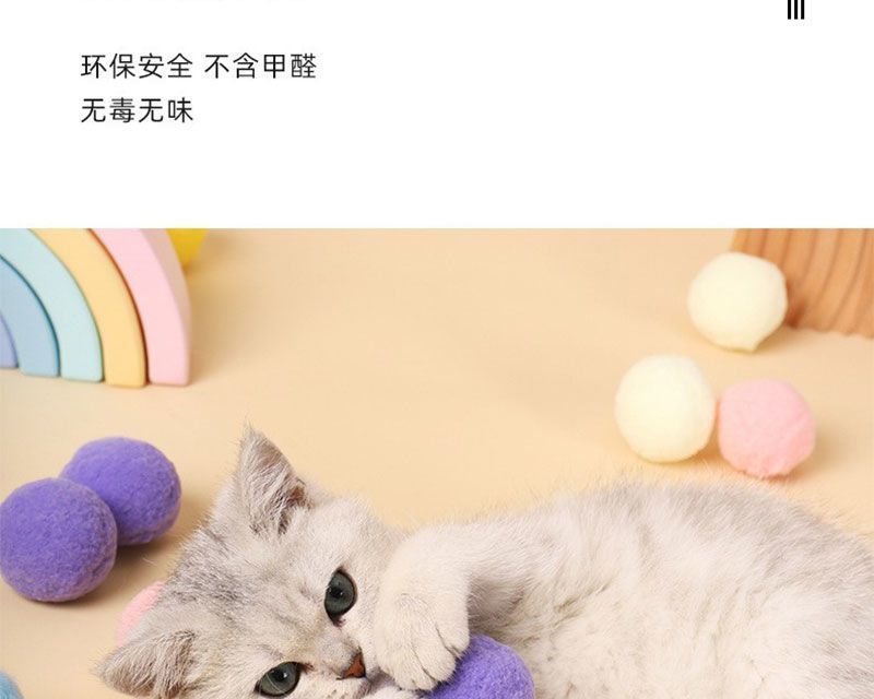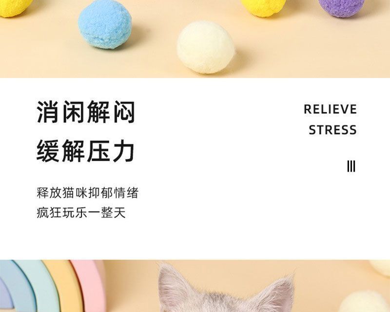 猫咪毛绒球逗猫玩具宠物自嗨解闷静音双色毛绒球大号6CM耐抓耐咬