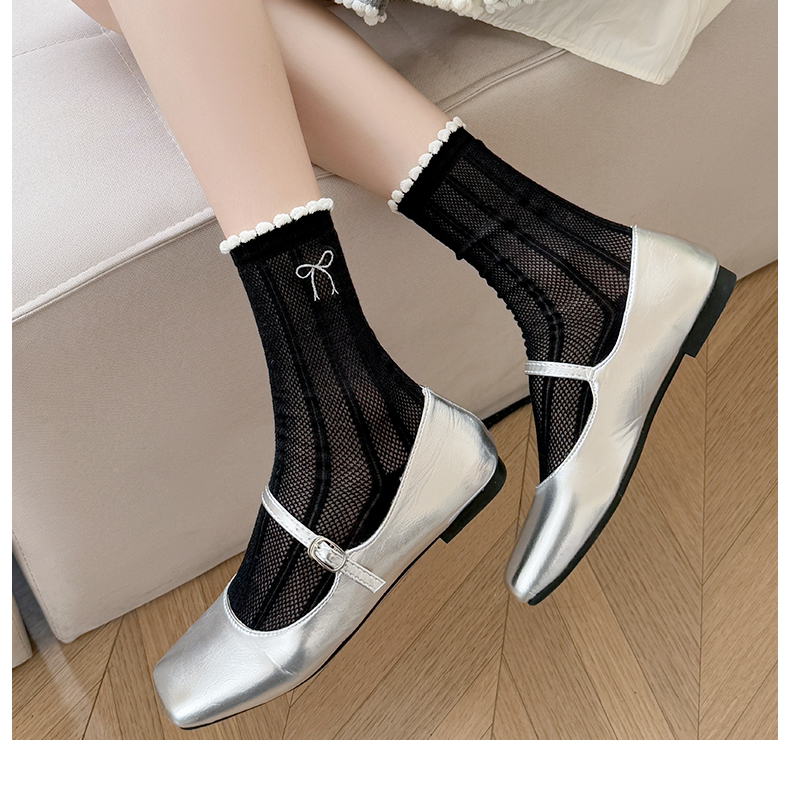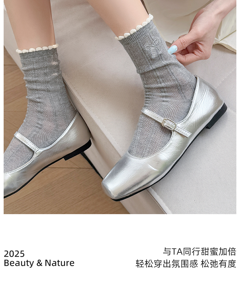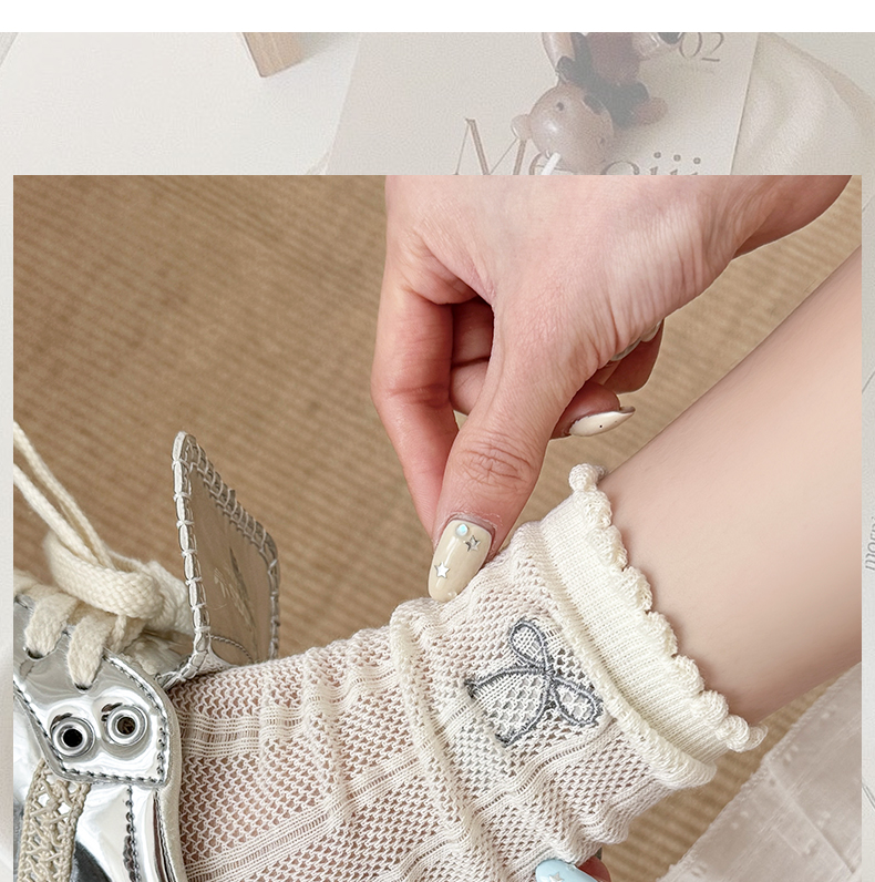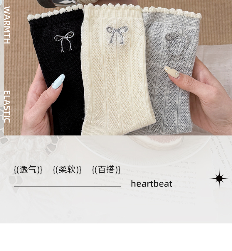 袜子女夏季薄款透气纯棉中筒袜夏天网眼蝴蝶结堆堆袜芭蕾风ins潮