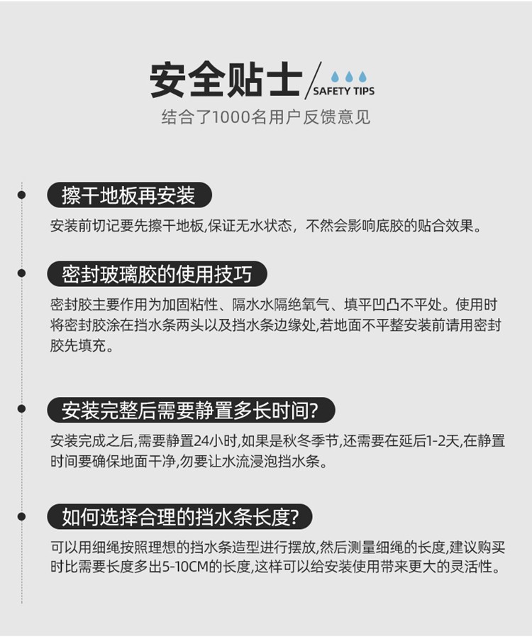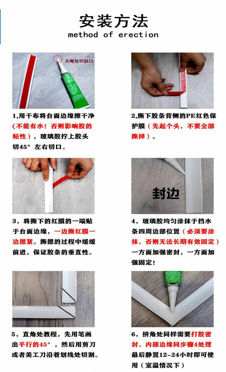 洗手盆挡水条浴室柜台面防水条防霉厨台窗台边缘浴室卫生间挡水条