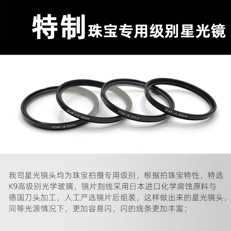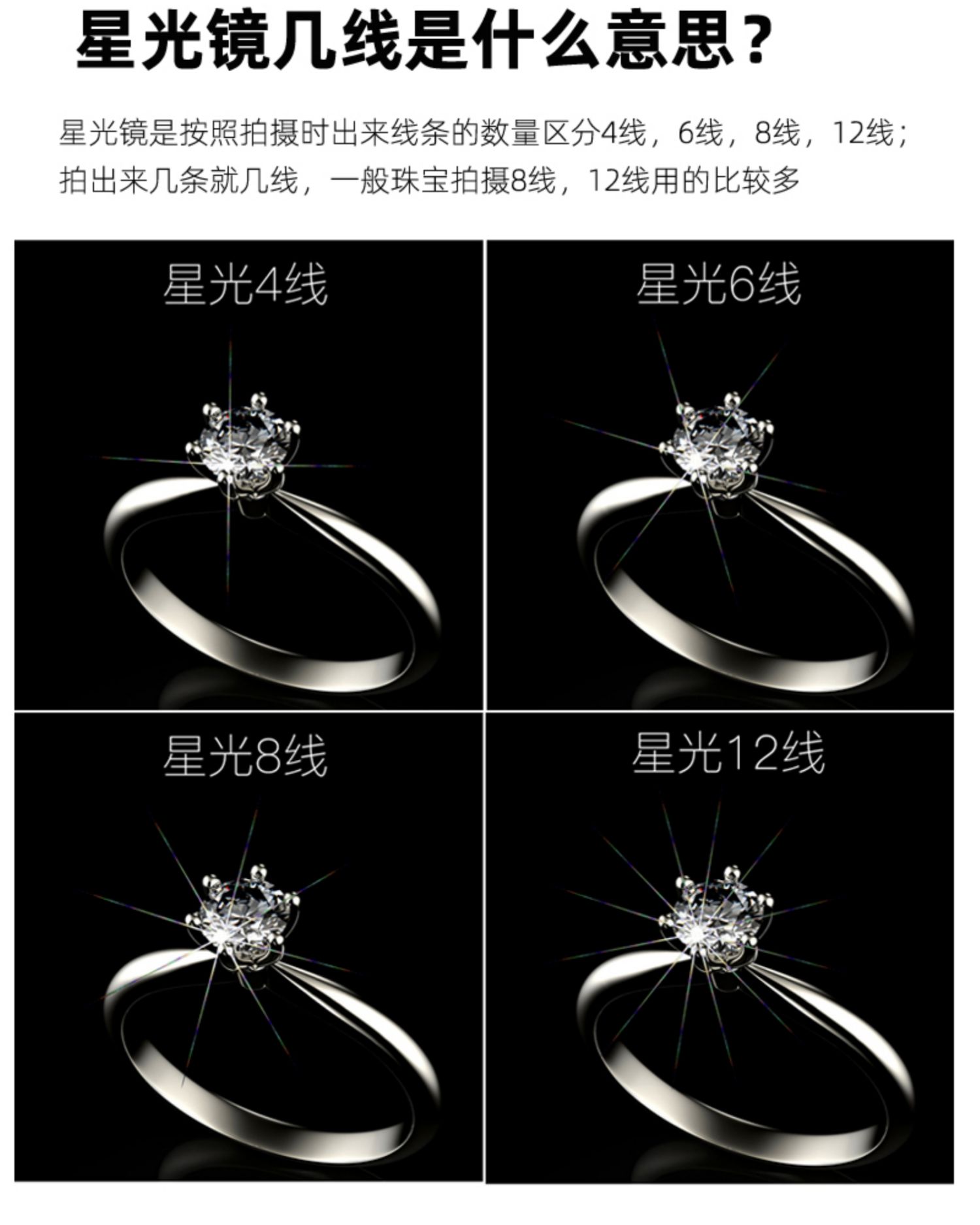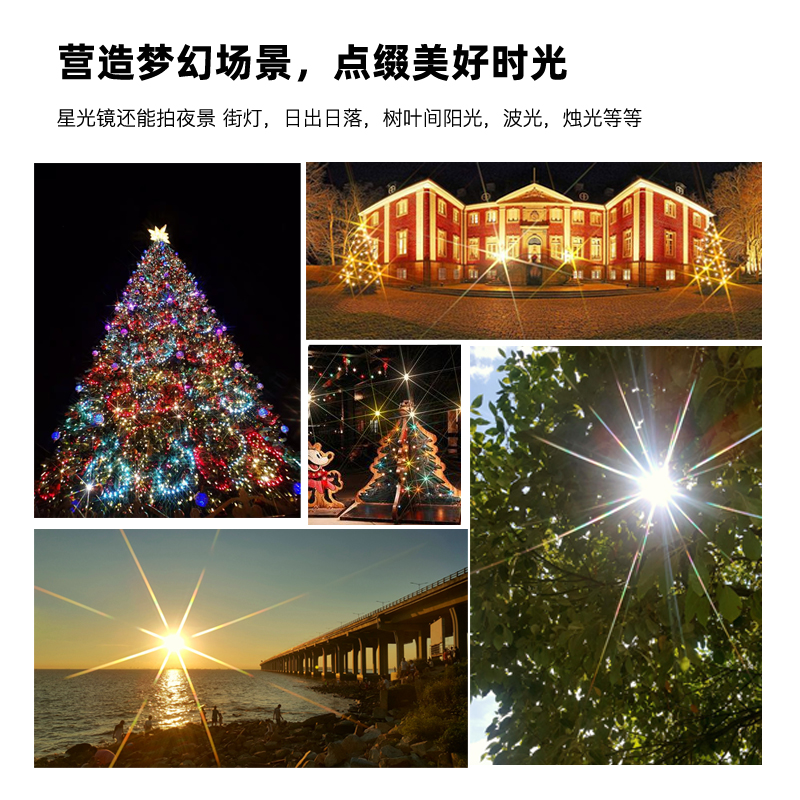 52mm手机星光镜头前置专用星光镜星空镜直播珠宝钻石灯聚光灯火彩婚纱礼服拍照灯首饰带钻手机壳衣服闪光