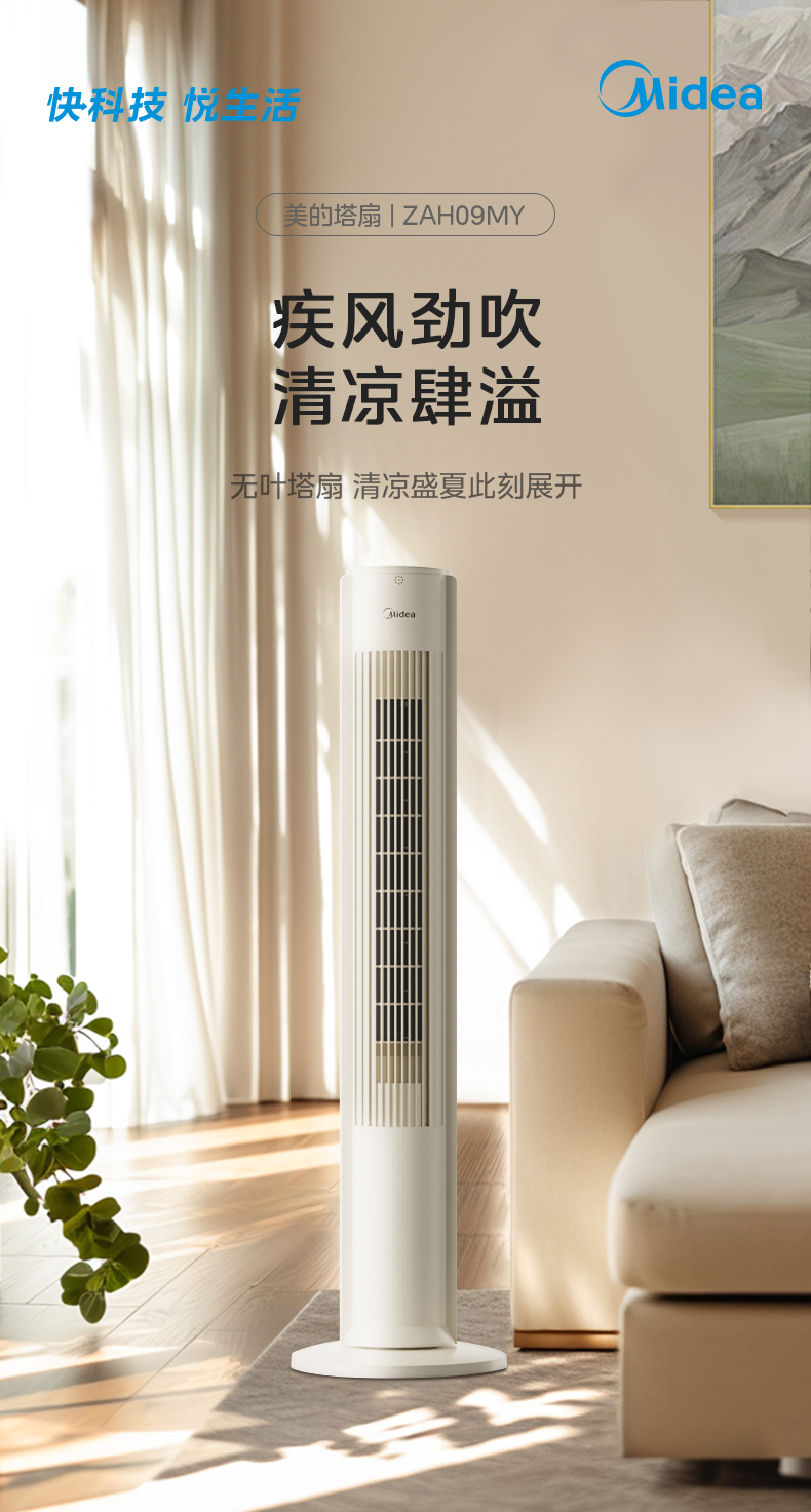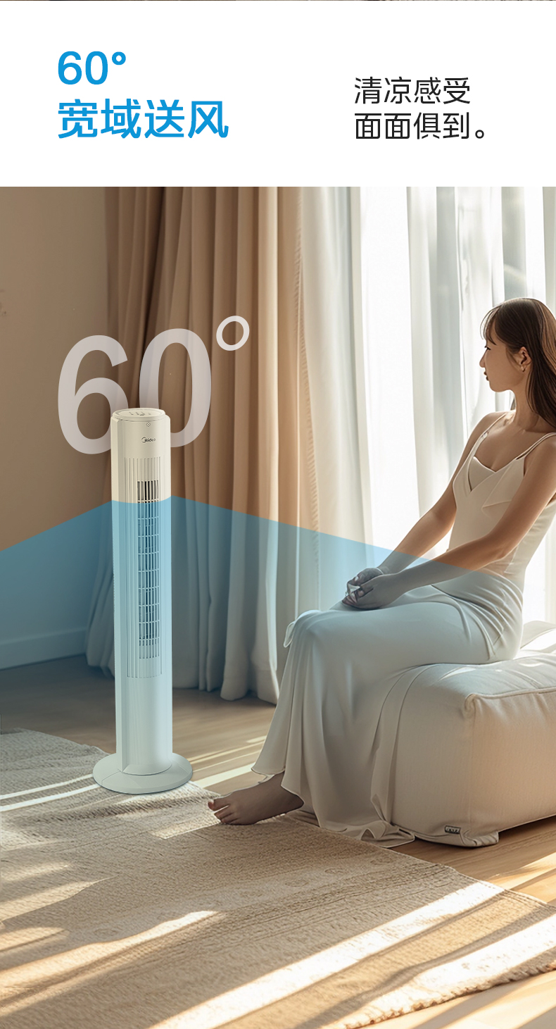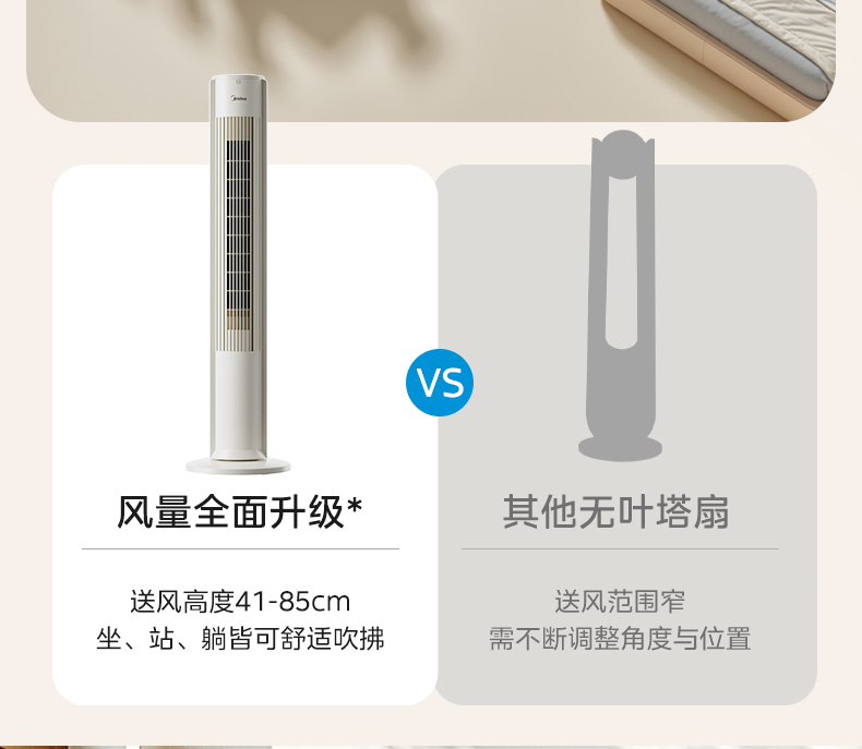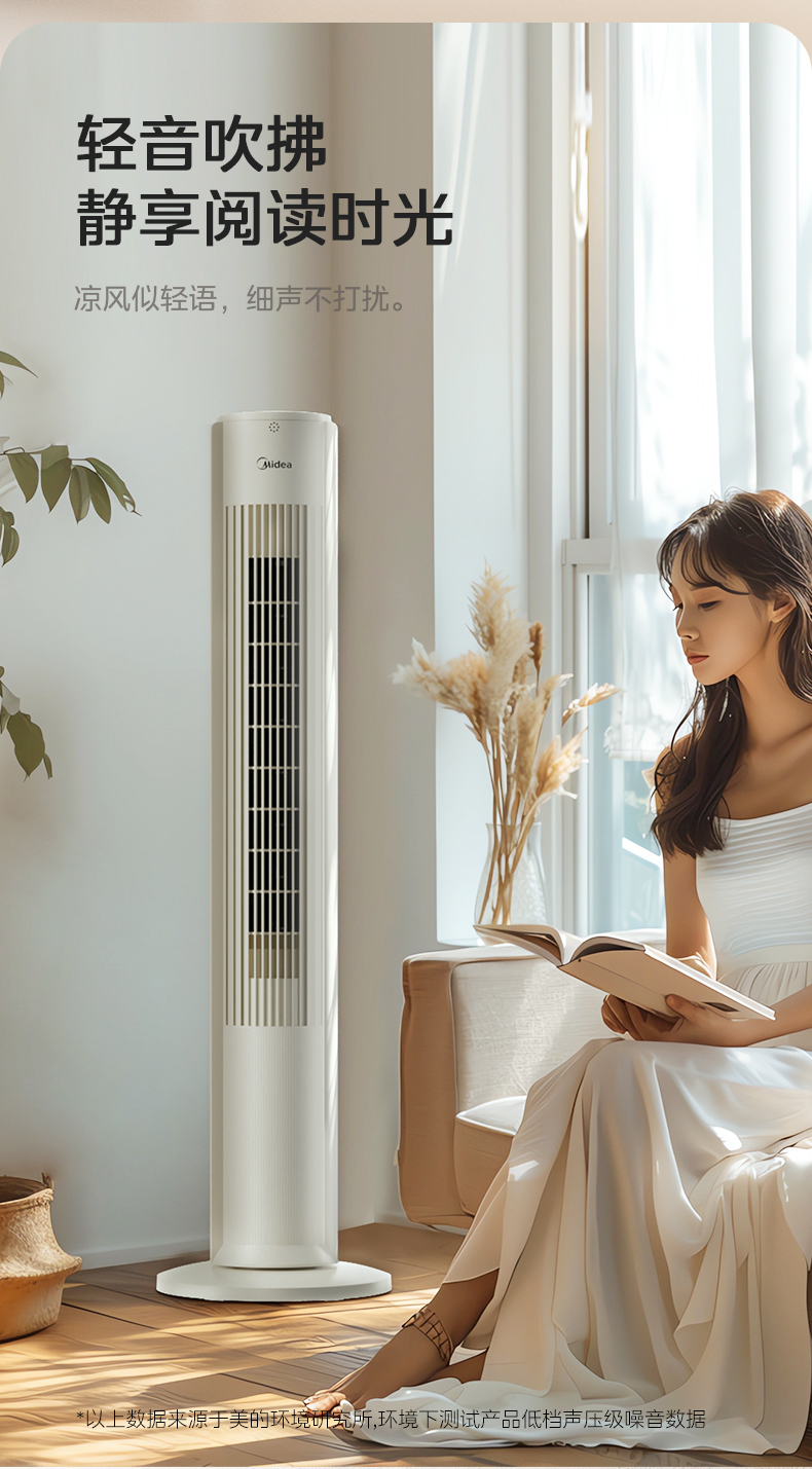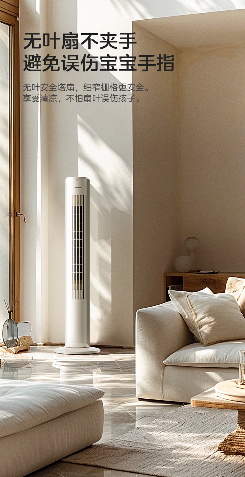 美的塔扇25升级款电风扇家用无叶风扇轻音塔式落地扇